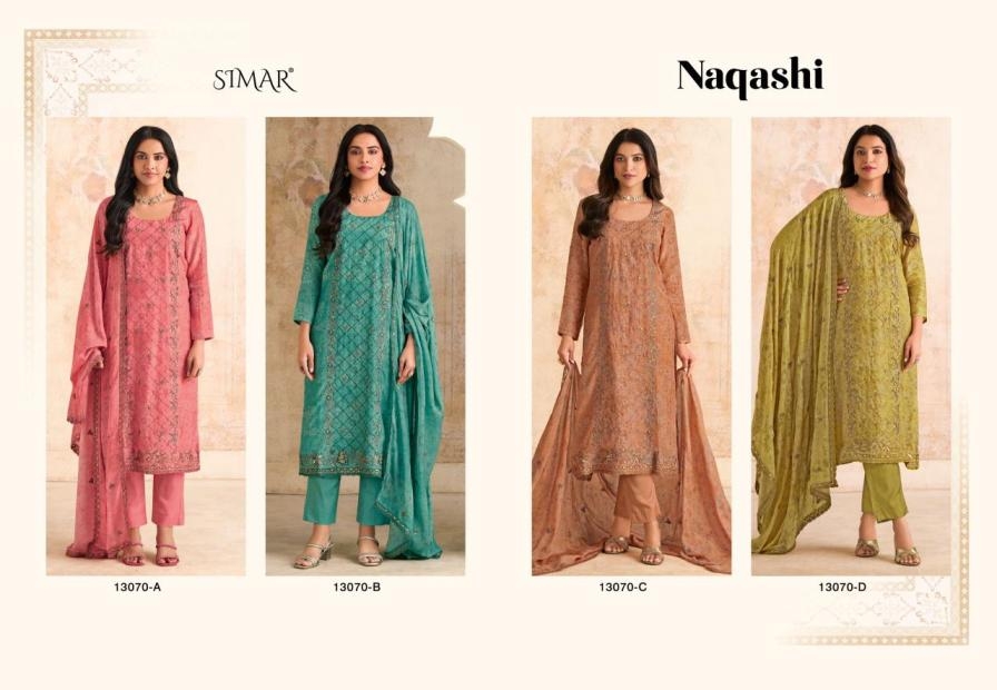 | Name: | Glossy Naqashi Series 13070a To 13070d Simar Pretty Salwar Kameez In Wholesale Surat |