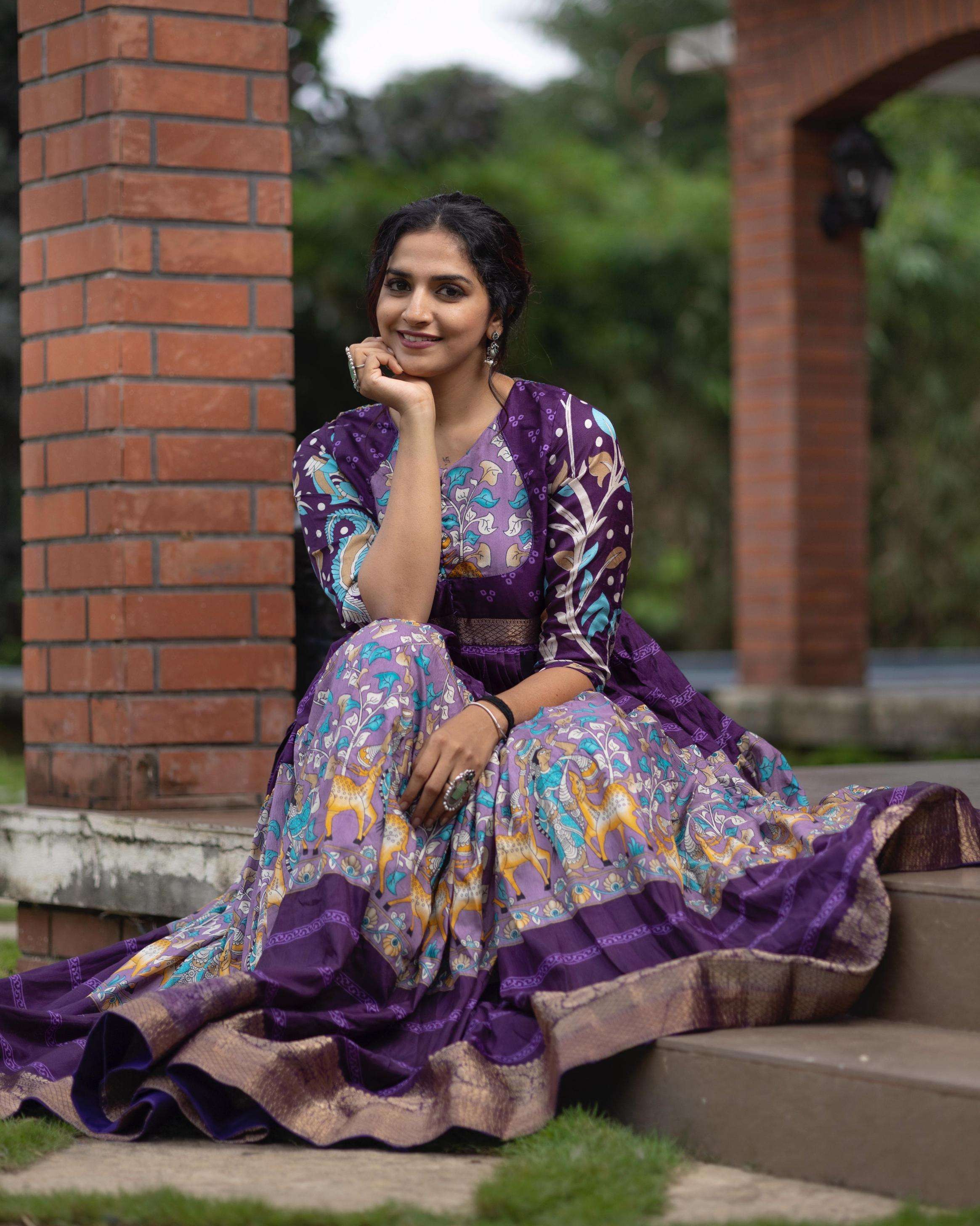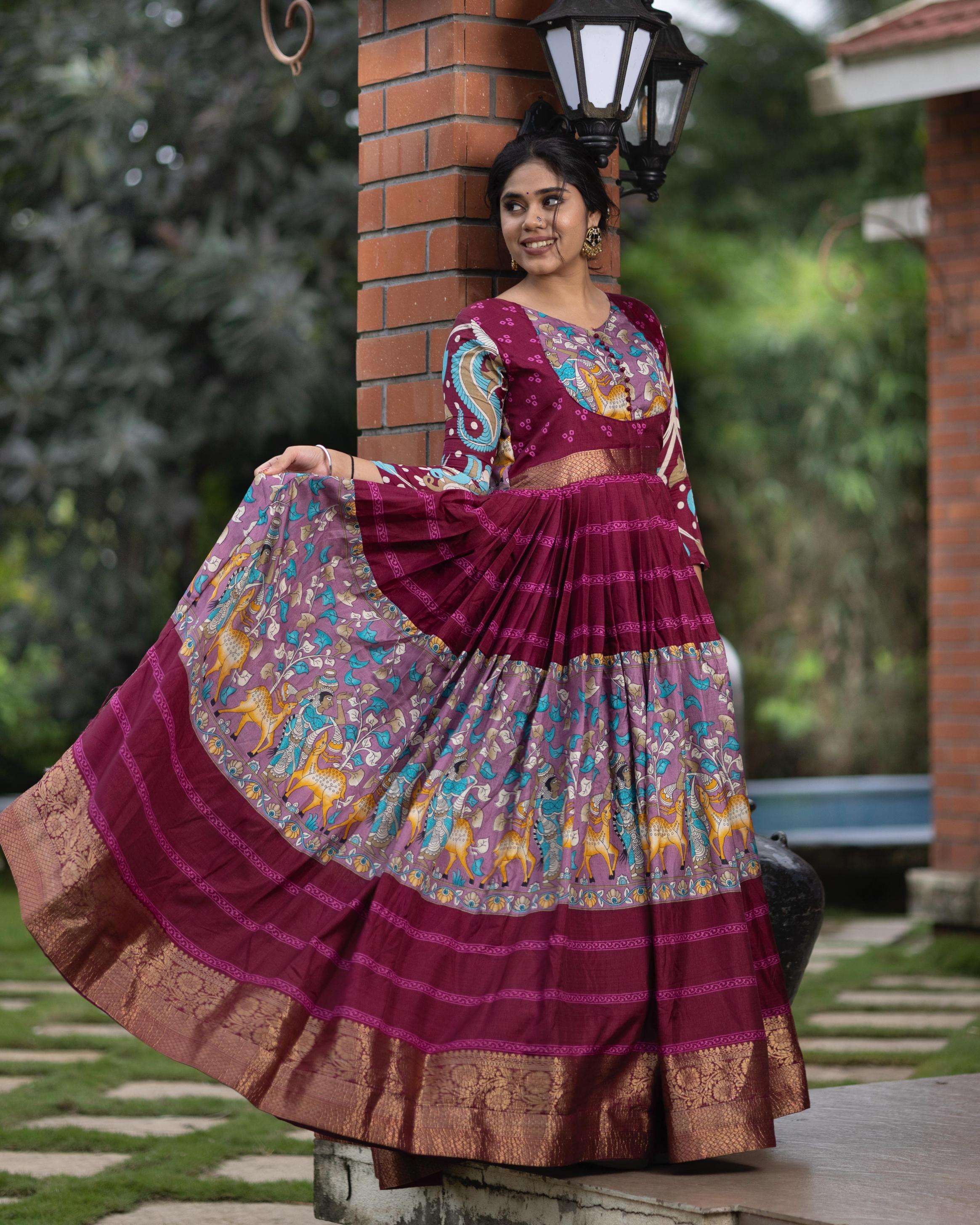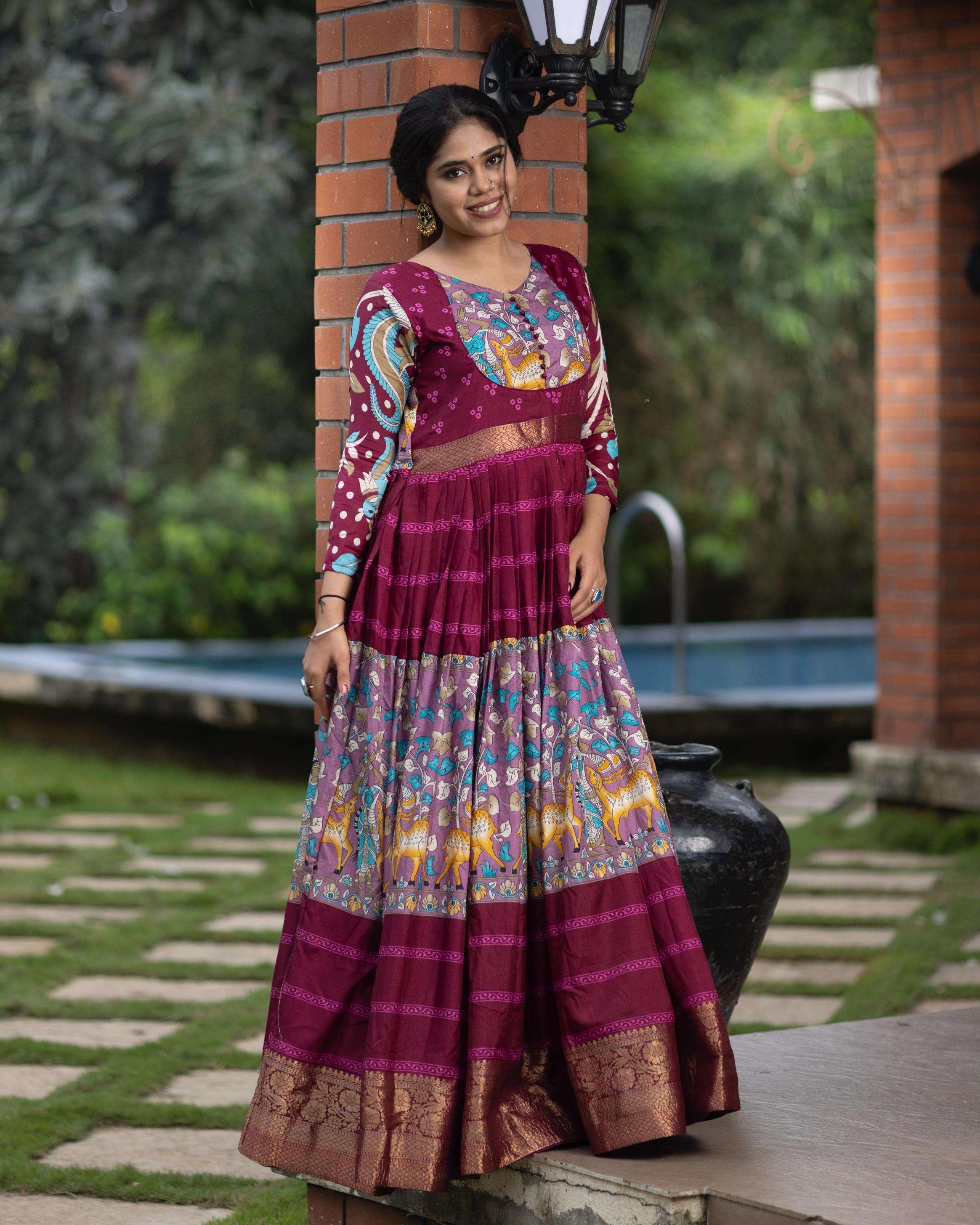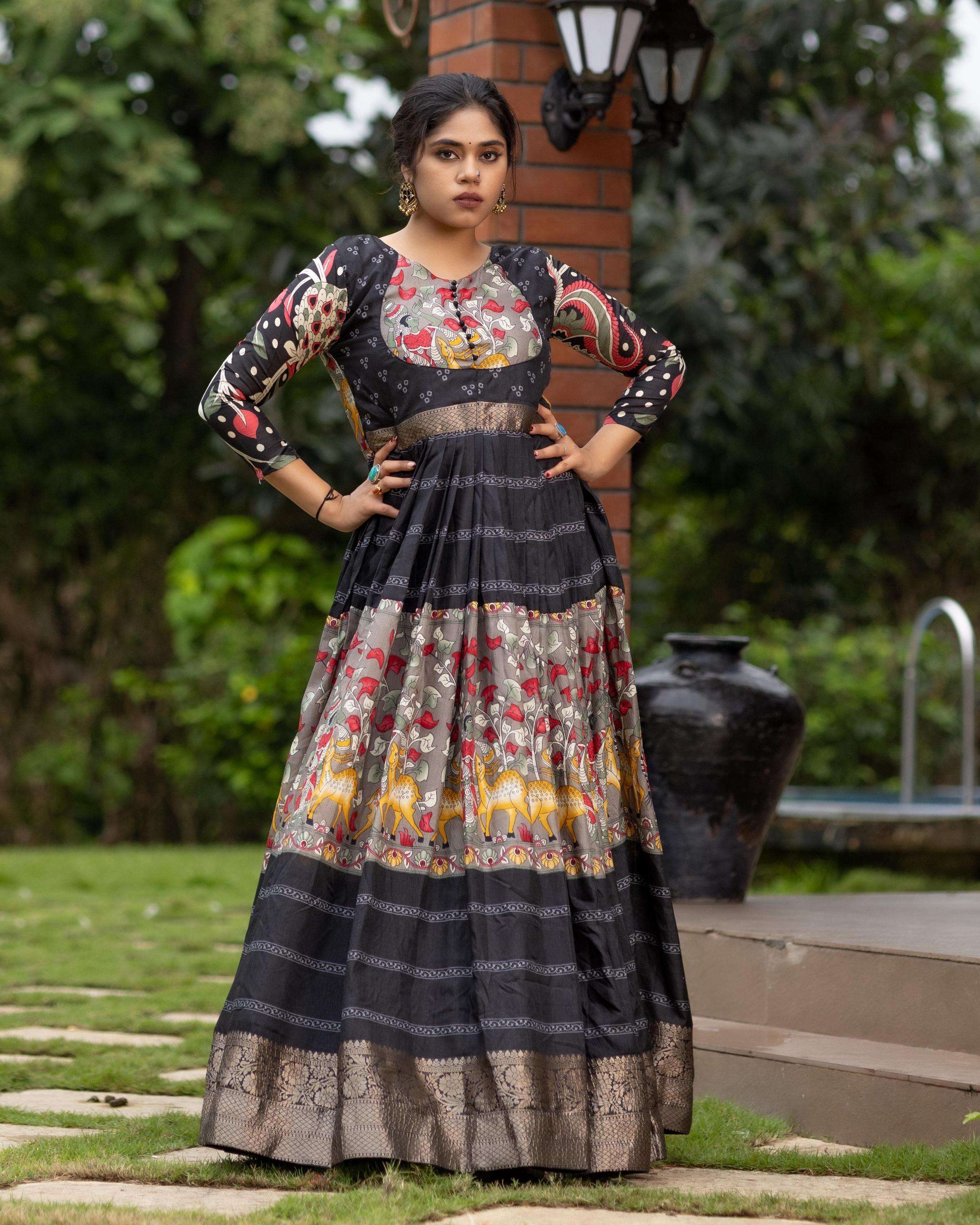 | Name: | Pr Grtn6009 Pretty Readymade Soft Silk Kalamkari Print Gown In Wholesale Surat |