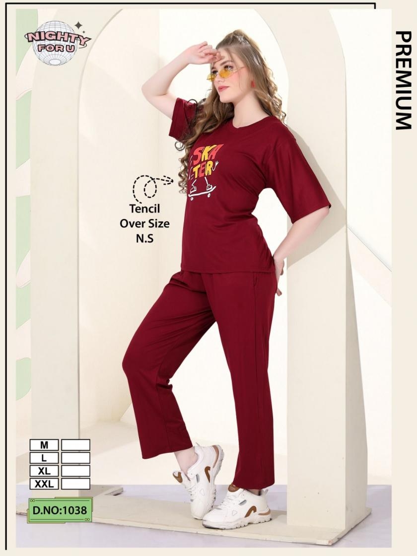 | Other Details: | Nighty for u (catloug no -1038 ) imp Tencil palzo night suit Sizes :- M L XL XXL Rate :- 515/- +GST Pcs 06