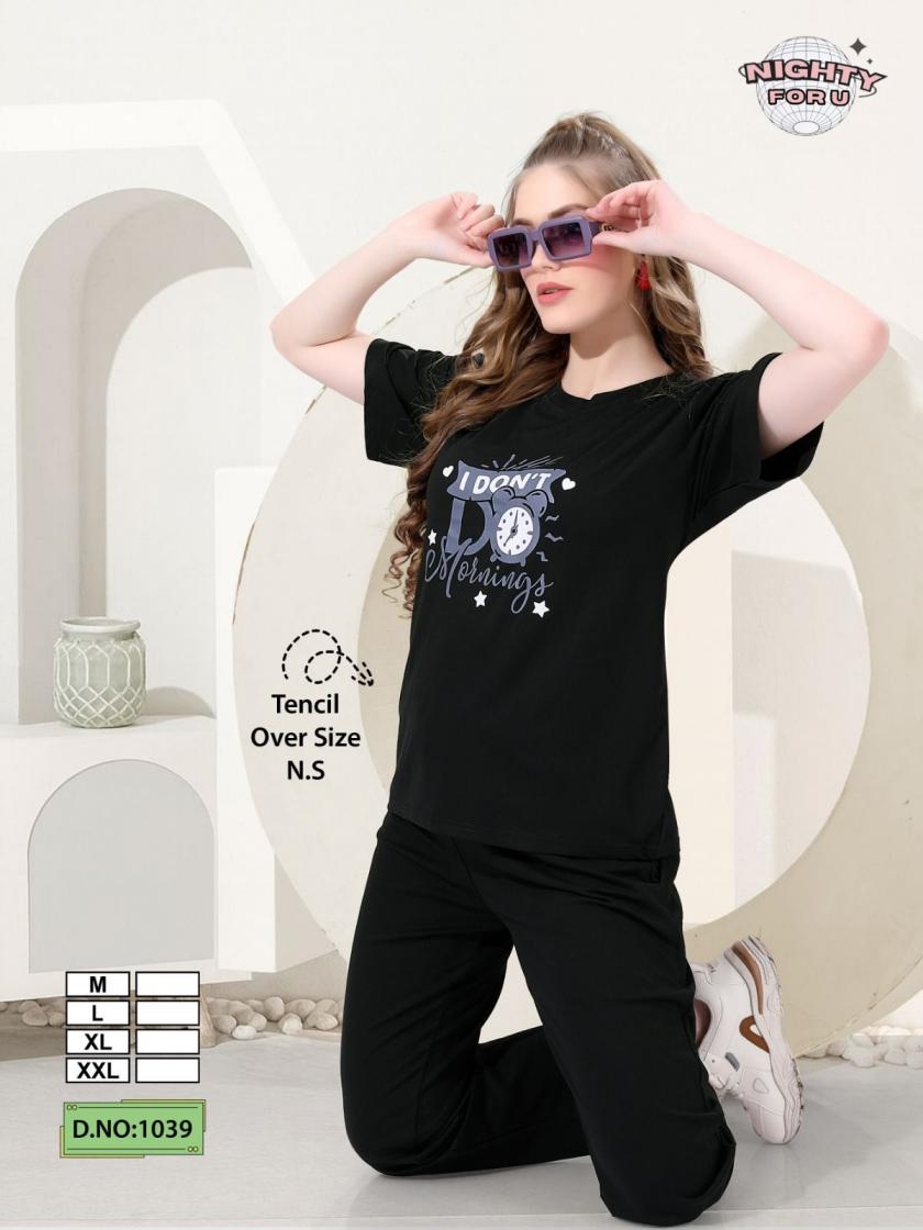| Other Details: | Nighty for u (catloug no -1039) imp Tencil palzo night suit SIZE : M L XL XXL RATE 515 PCS 06
