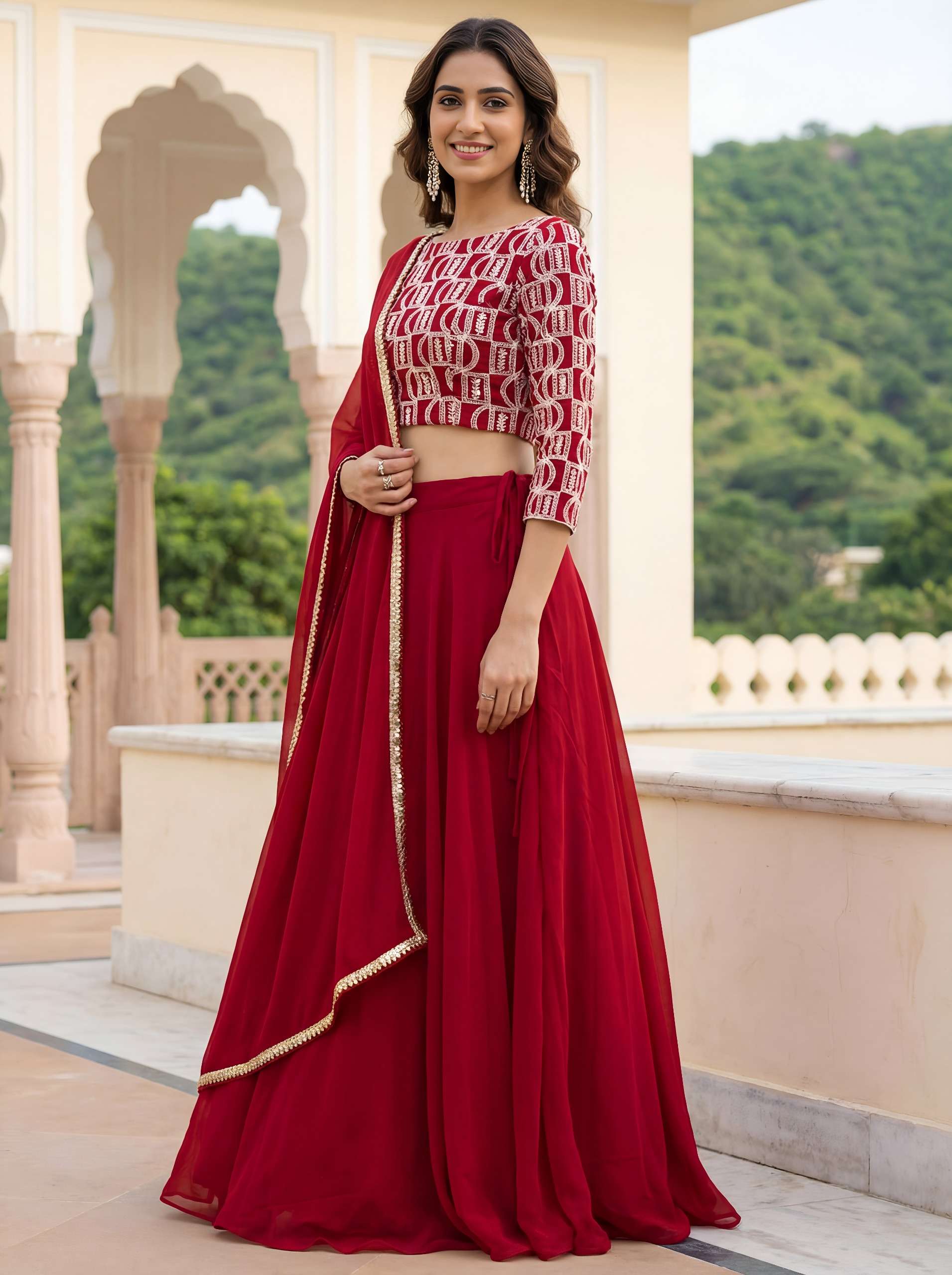 | Name: | 15050-red Deep Embroidered Georgette Lehenga Set |