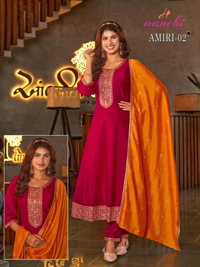 | Name: | Aanchi Amiri Series 01-02 Vichitra Silk Wholesale Suit In Surat |