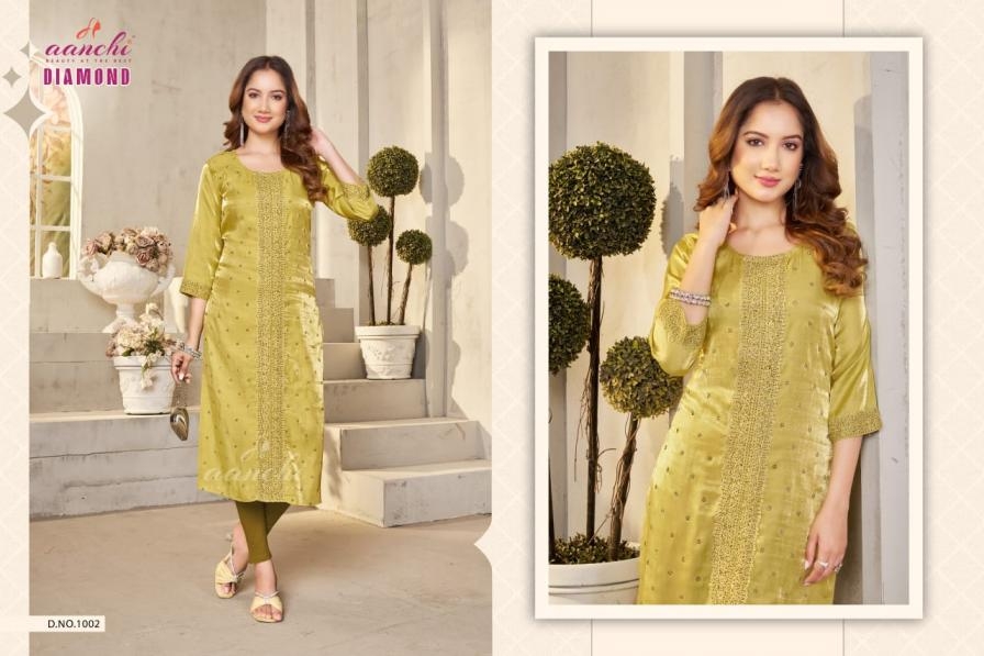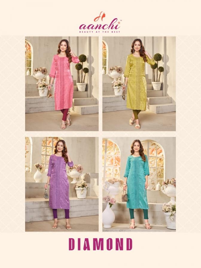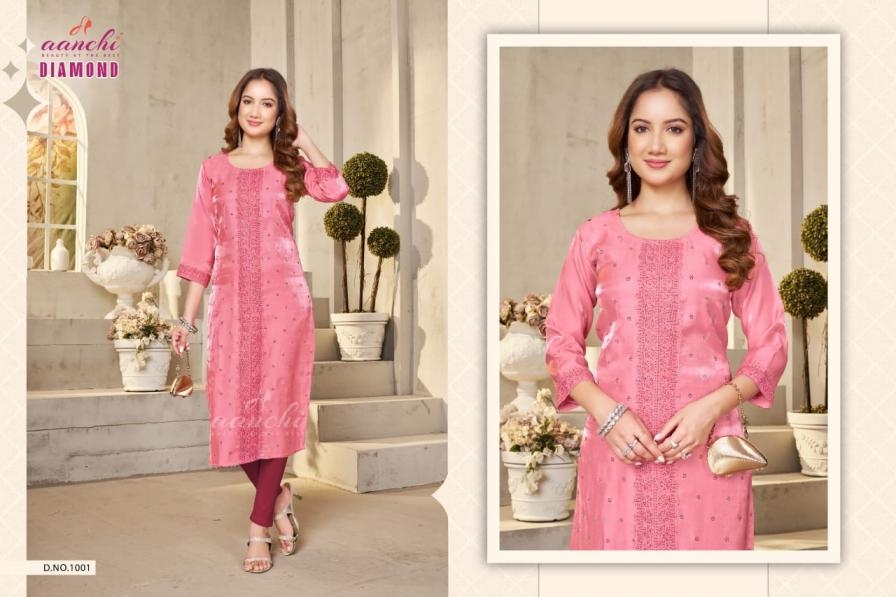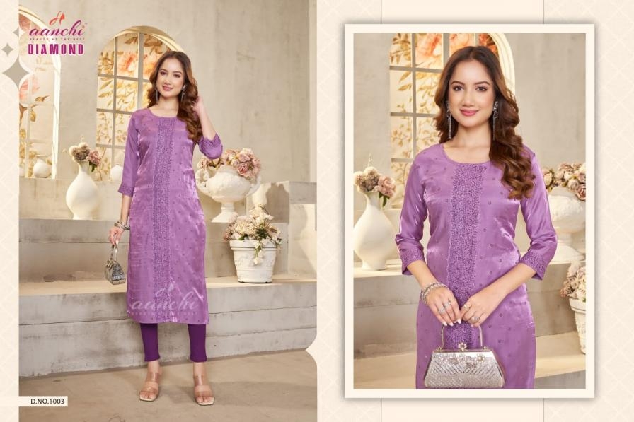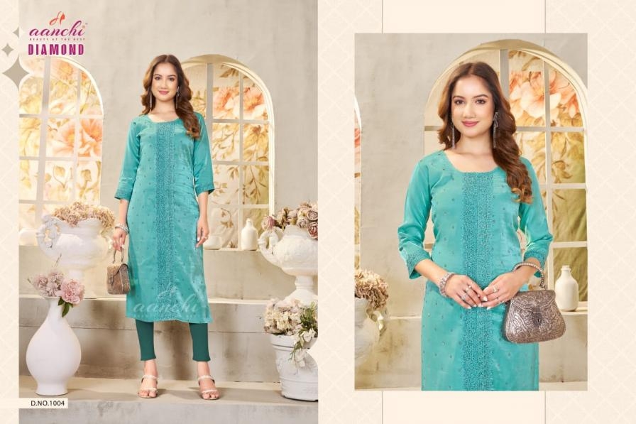 | Name: | Aanchi Diamond Series 1001-1004 Galaxy Satin Embroidery Kurti |