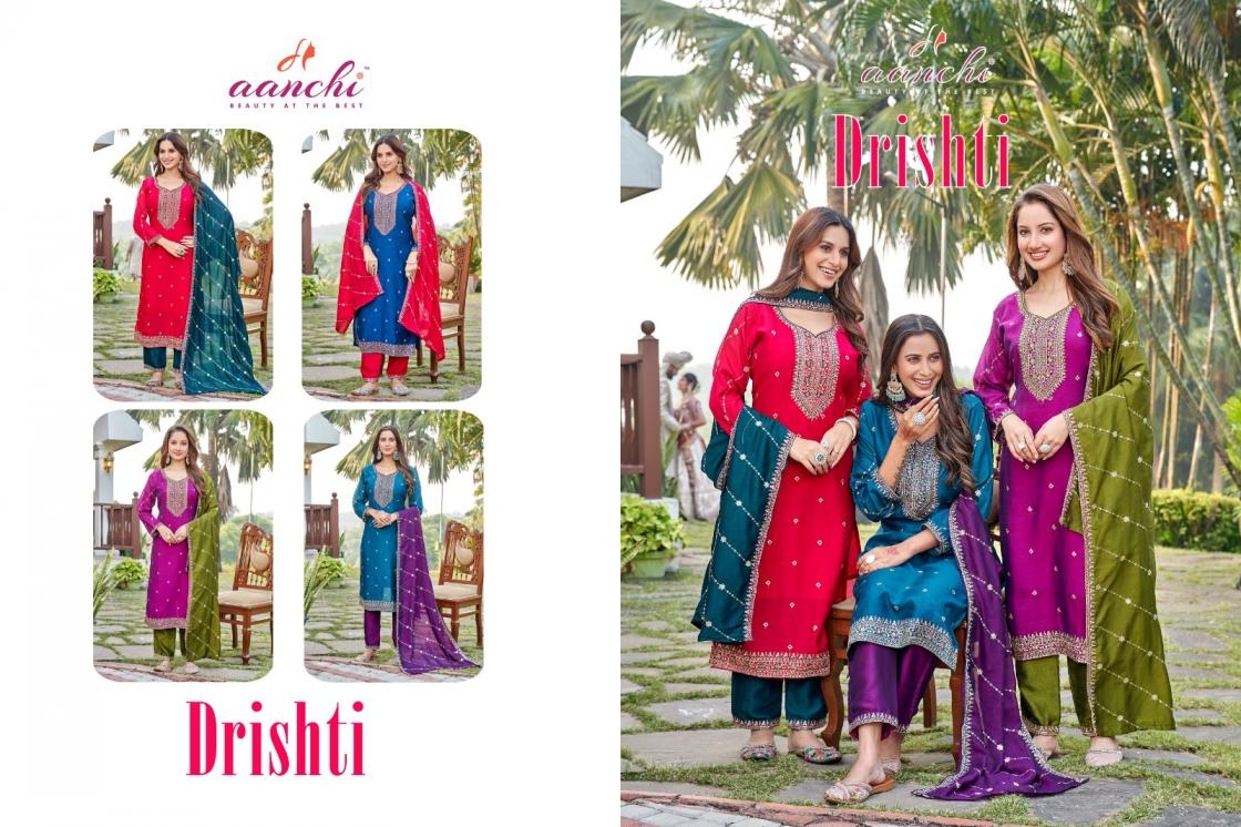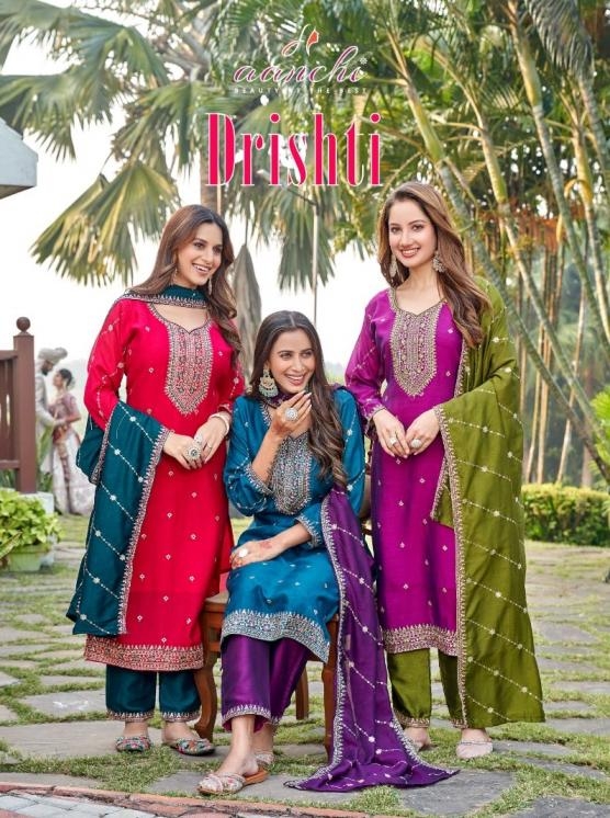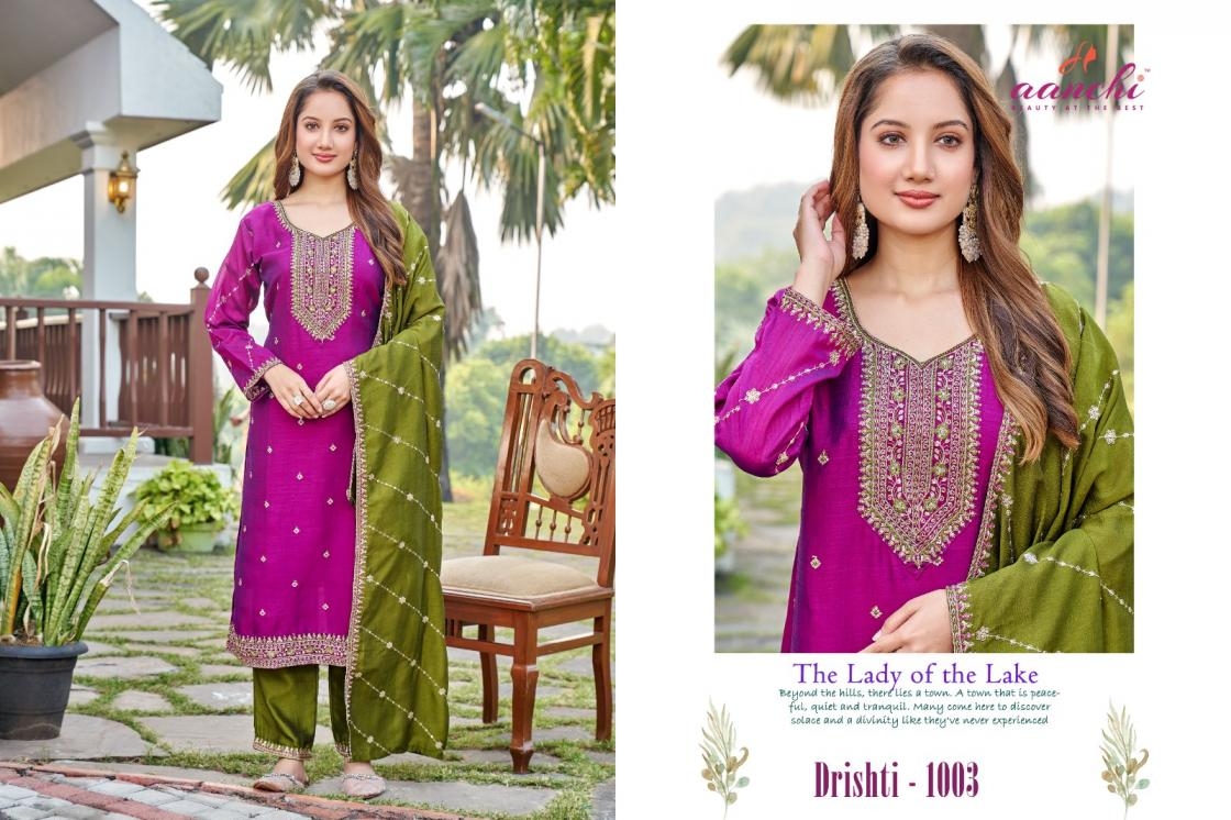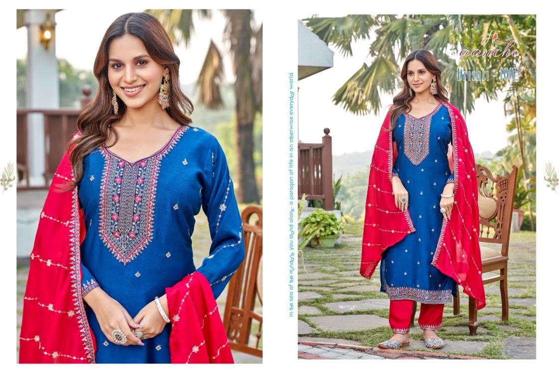 | Name: | Aanchi Drishti Series 1001-1004 Vichitra Silk Readmade Suit |