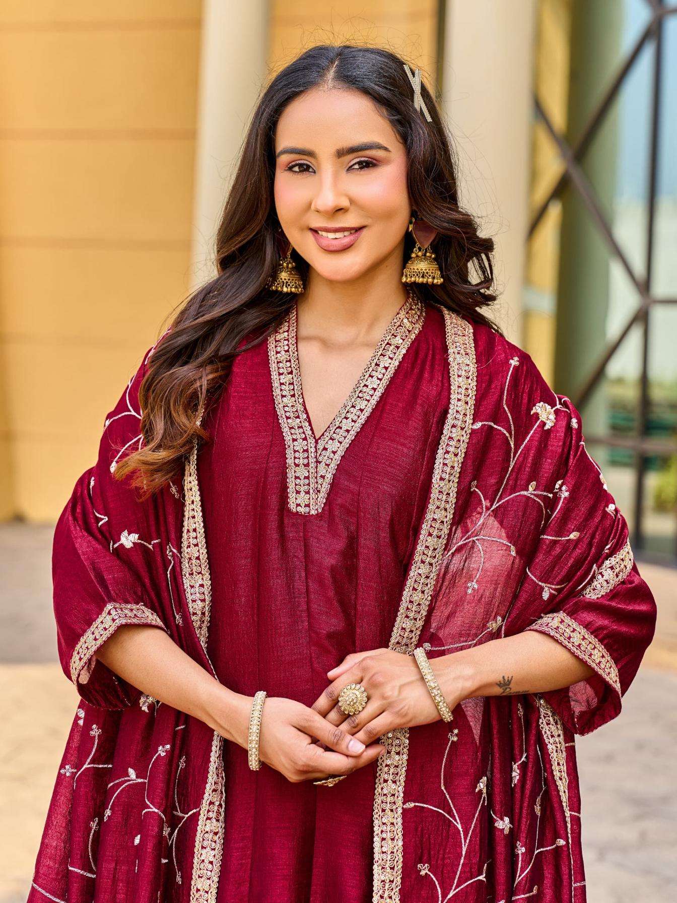 | Name: | Aanchi Kiran Vichitra Silk Readymade Anarkali Suit |