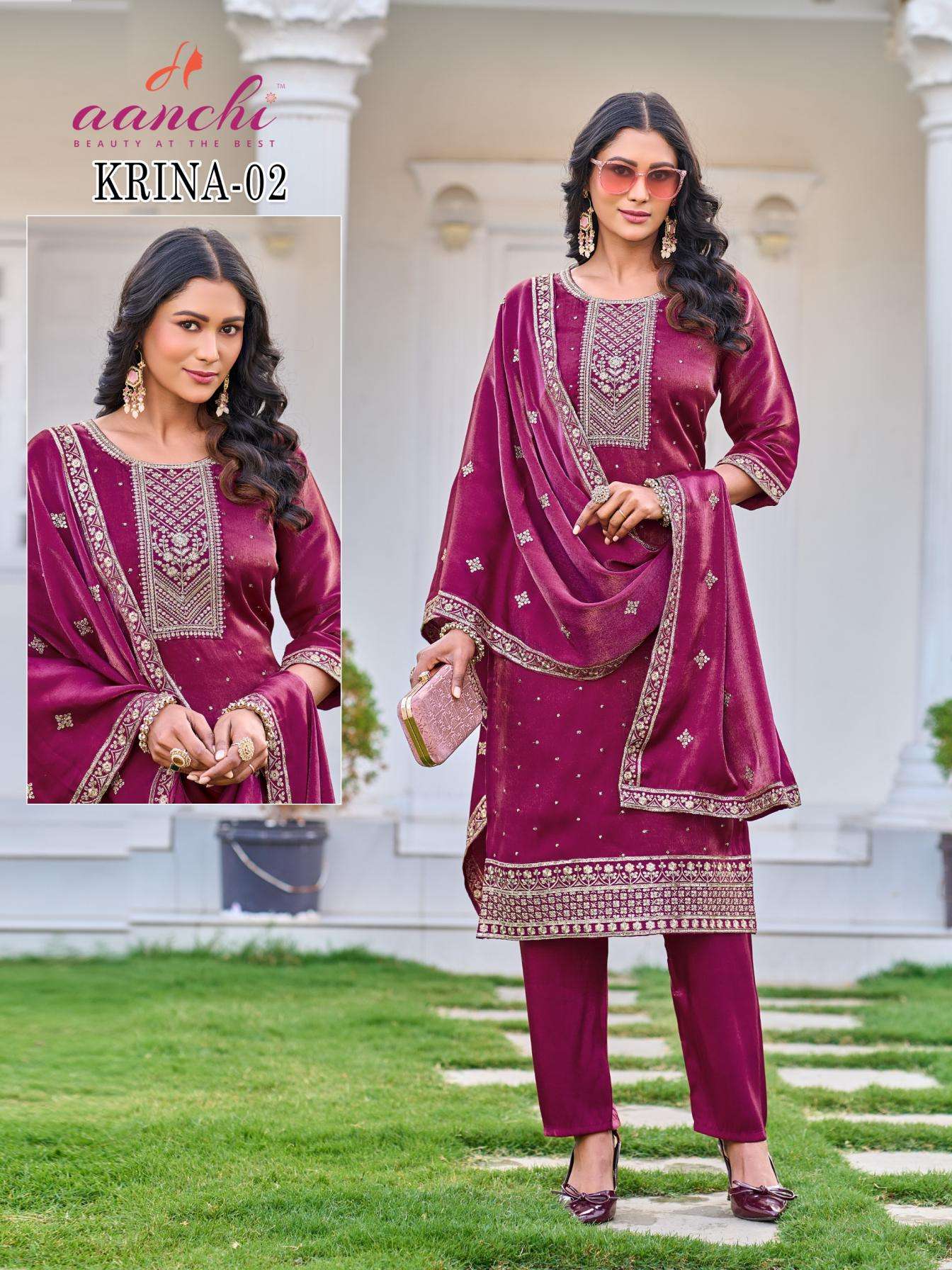 | Name: | Aanchi Krina Series 01& 02 Glass Roman Wholesale Readymade Suit | |