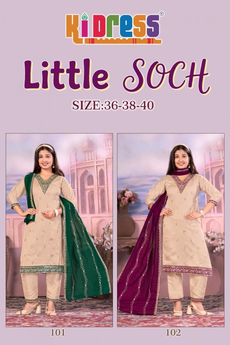 | Name: | Aanchi Little Soch Series 101-102 Vichitra Silk Readymade Suit | |