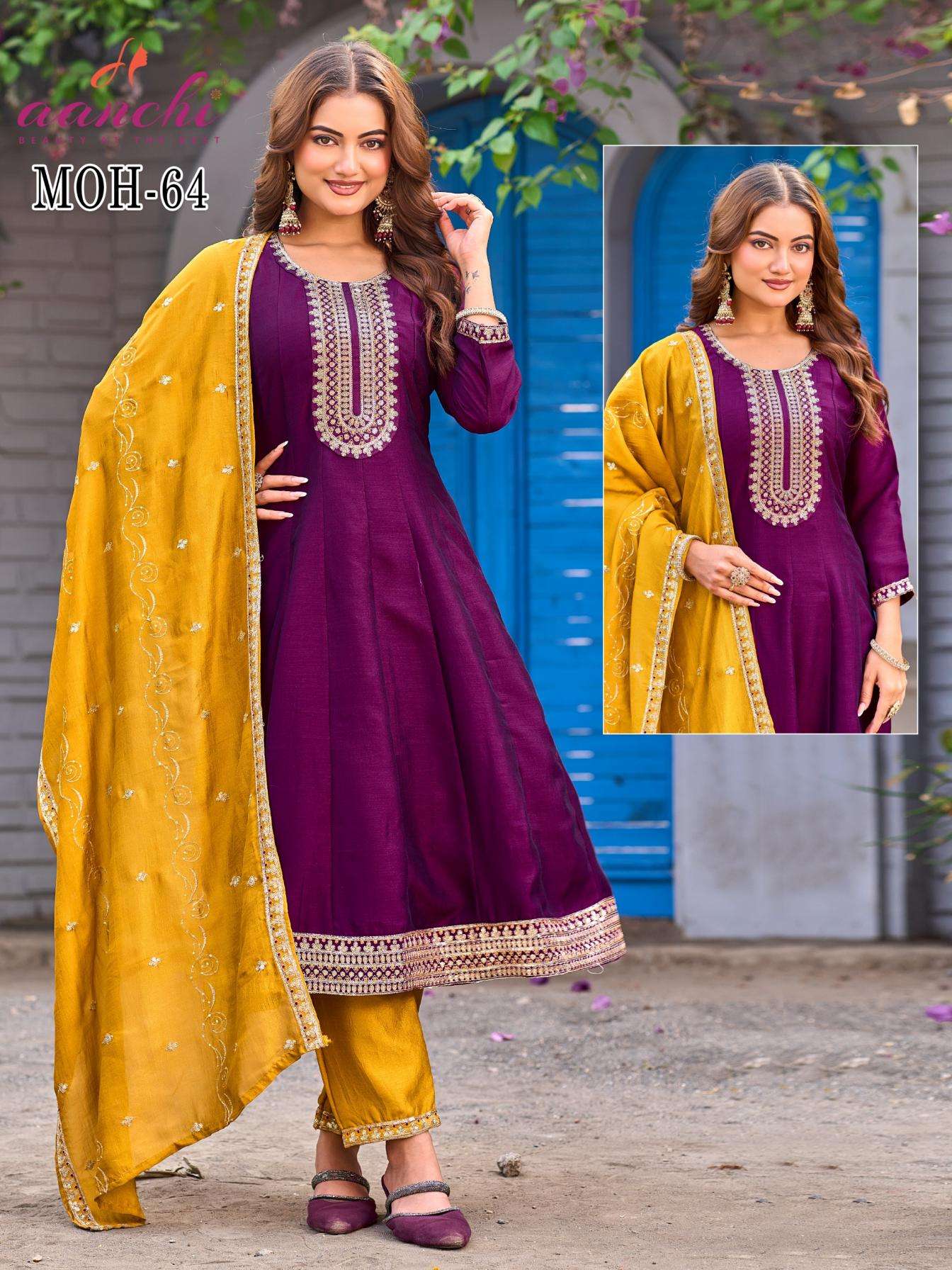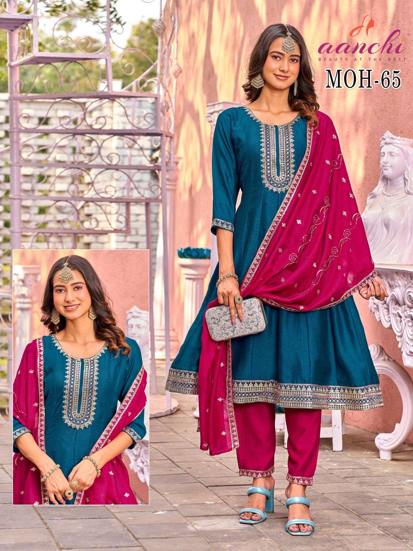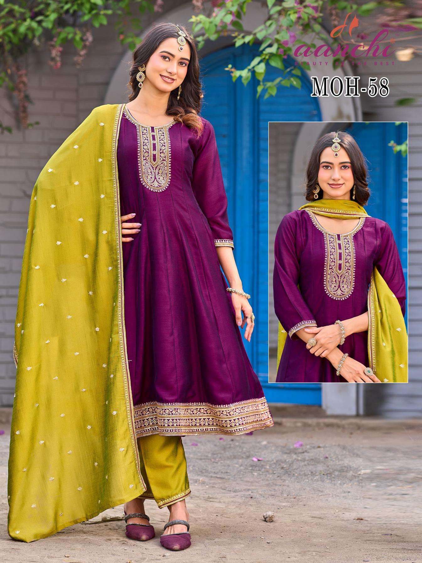 | Name: | Aanchi Moh Series 57-67 Vichitra Silk Wholesale Readymade Suit |
