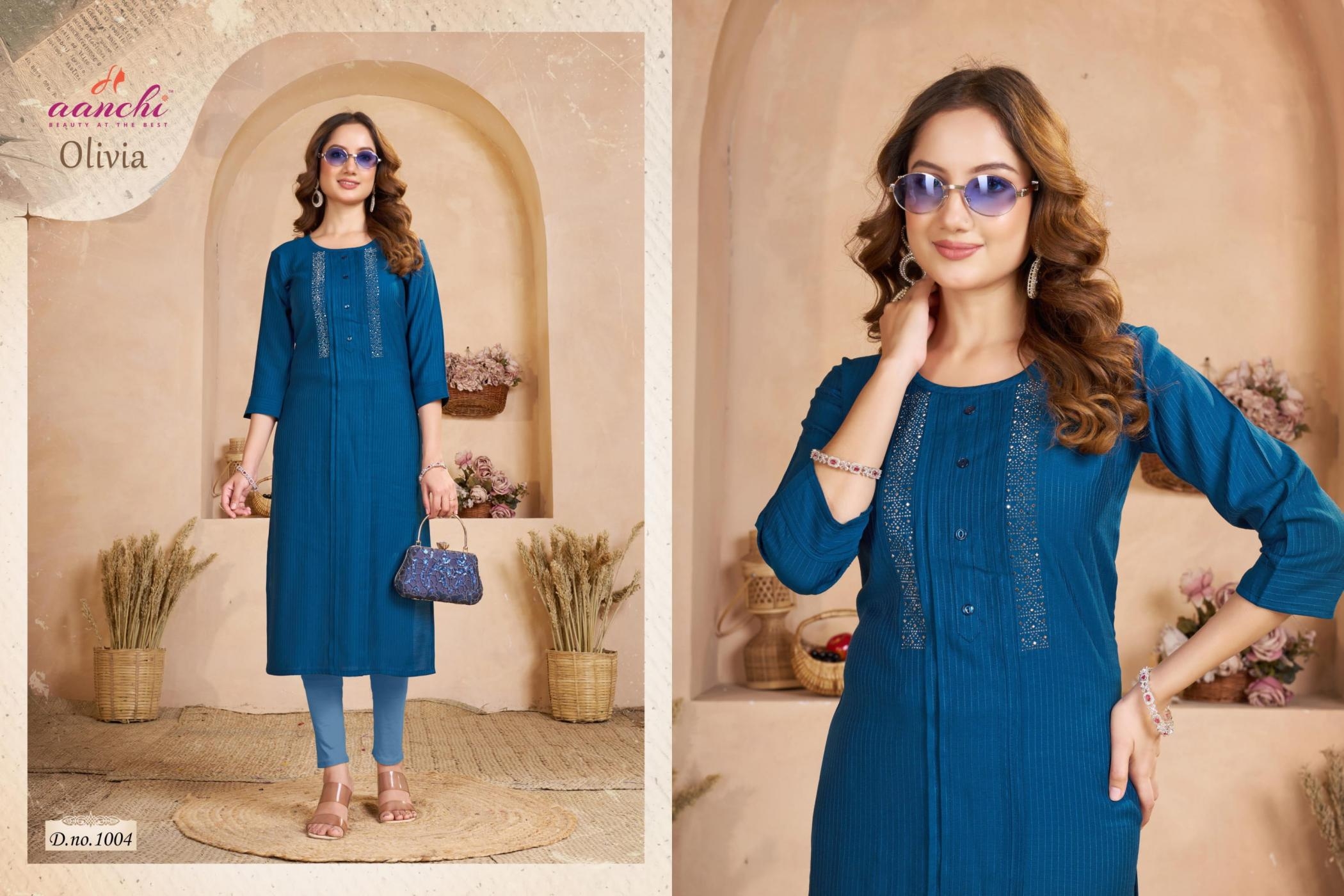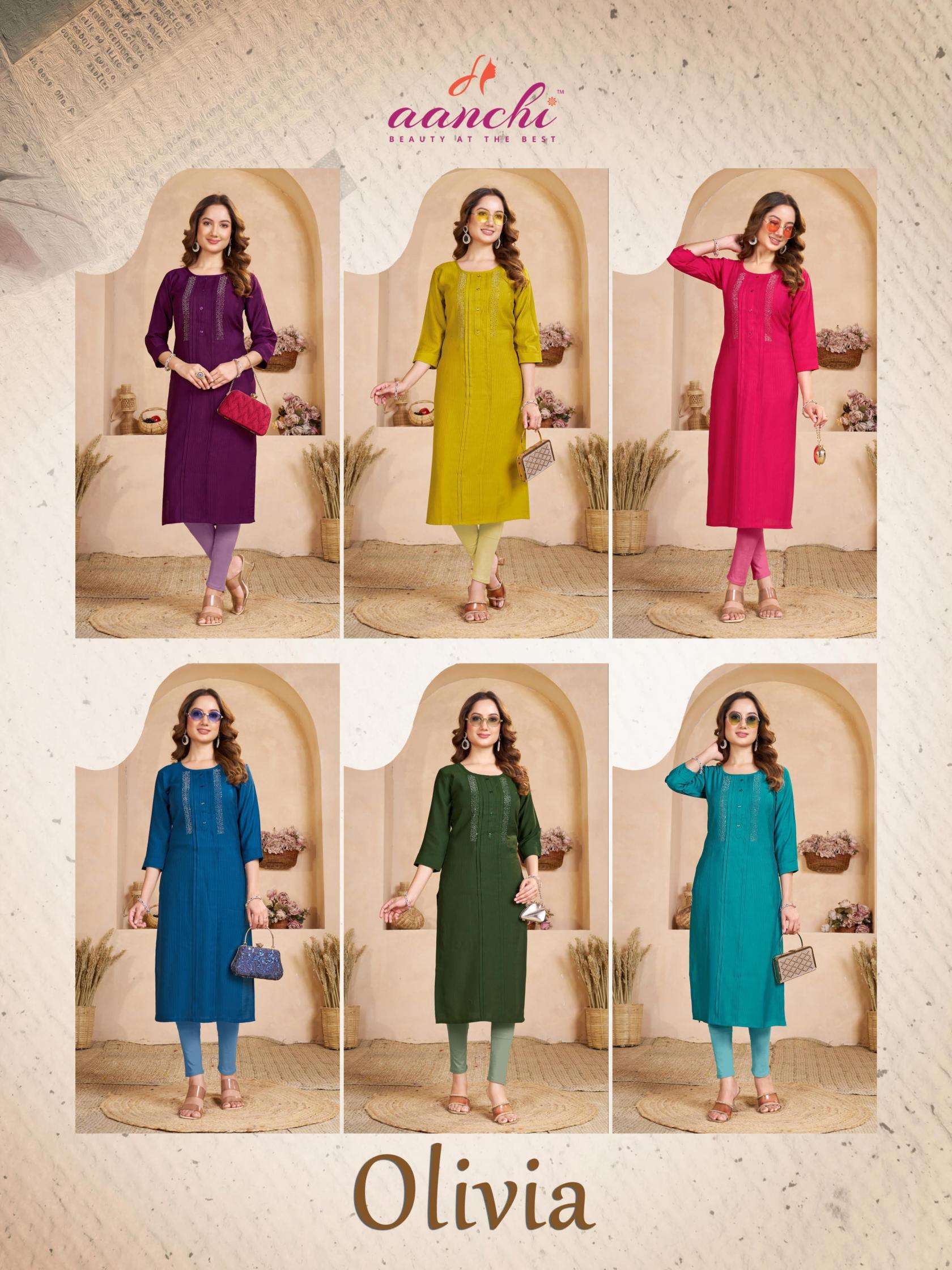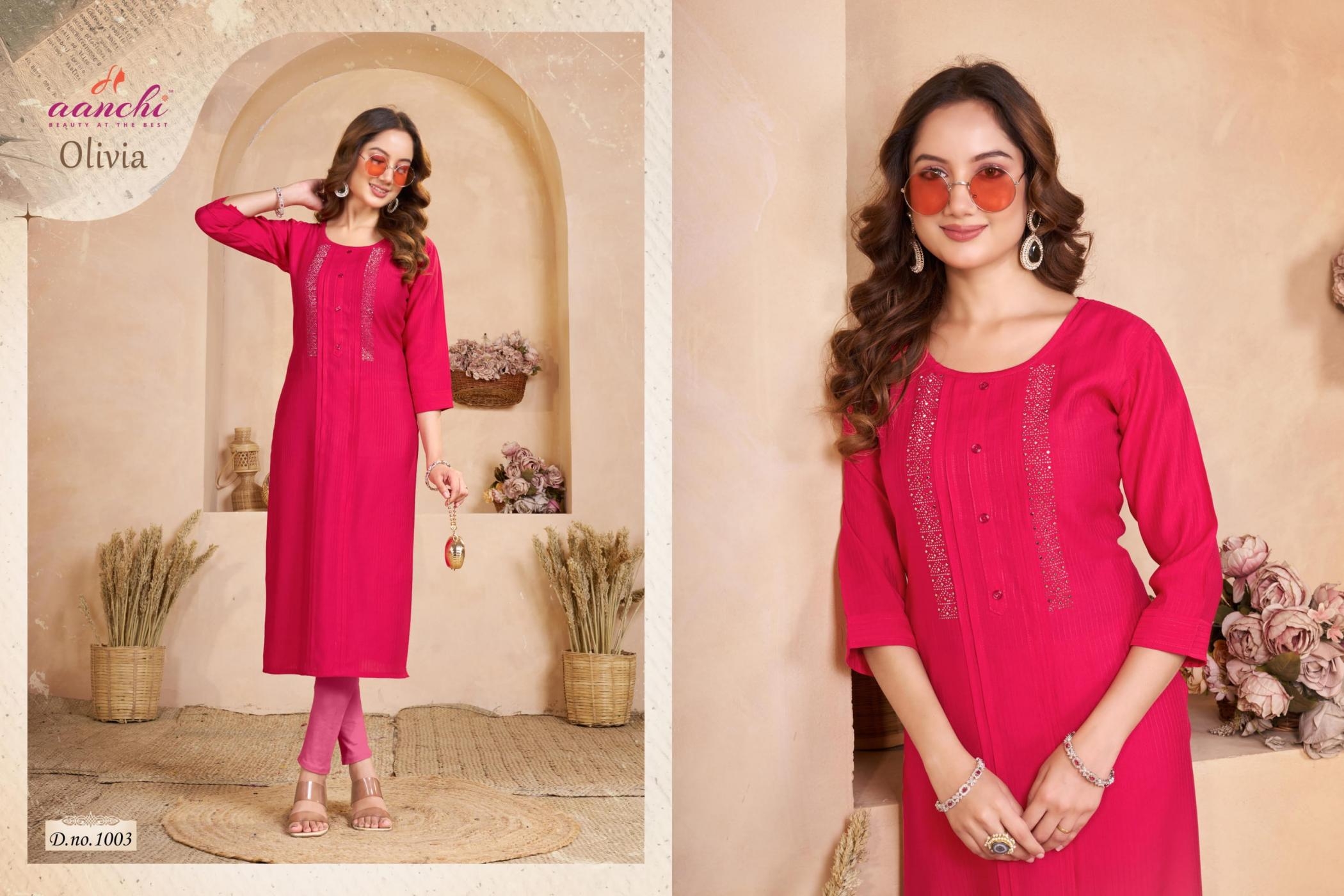 | Name: | Aanchi Olivia Series 1001-1006 Fancy Fabric Wholesale Kurti | |
