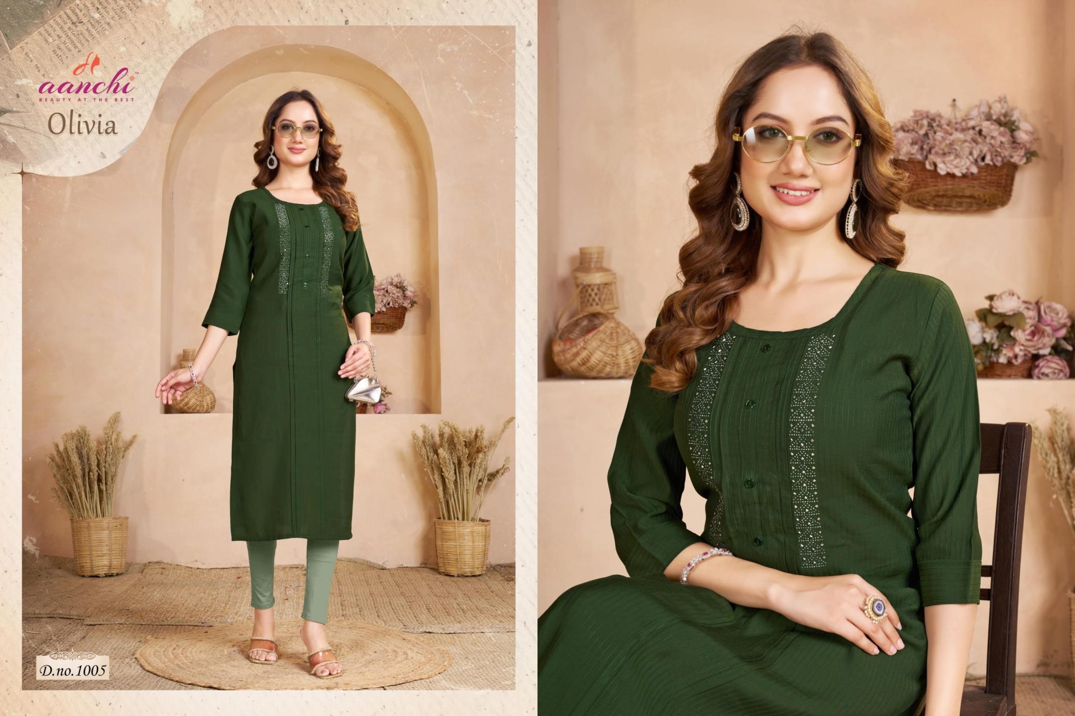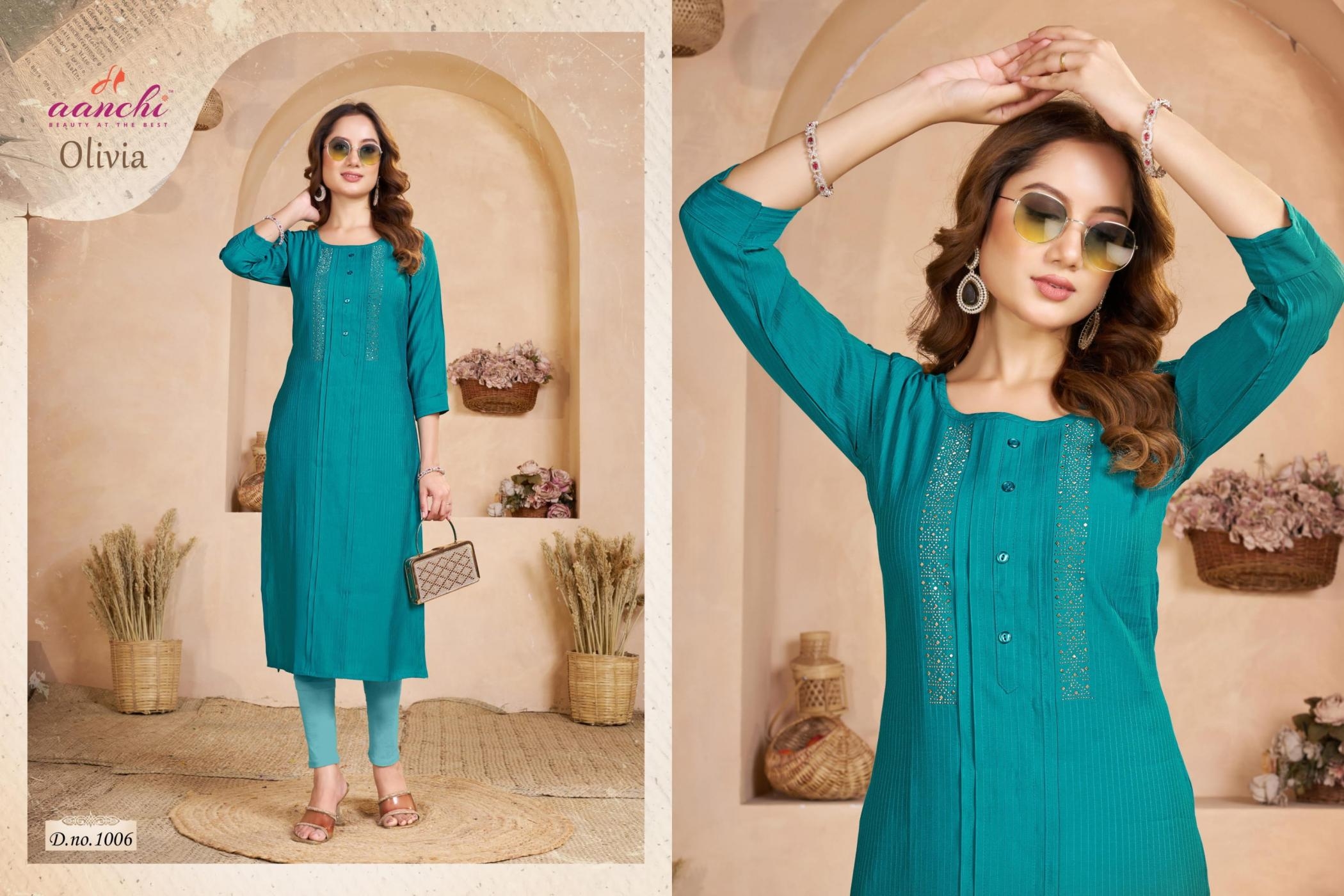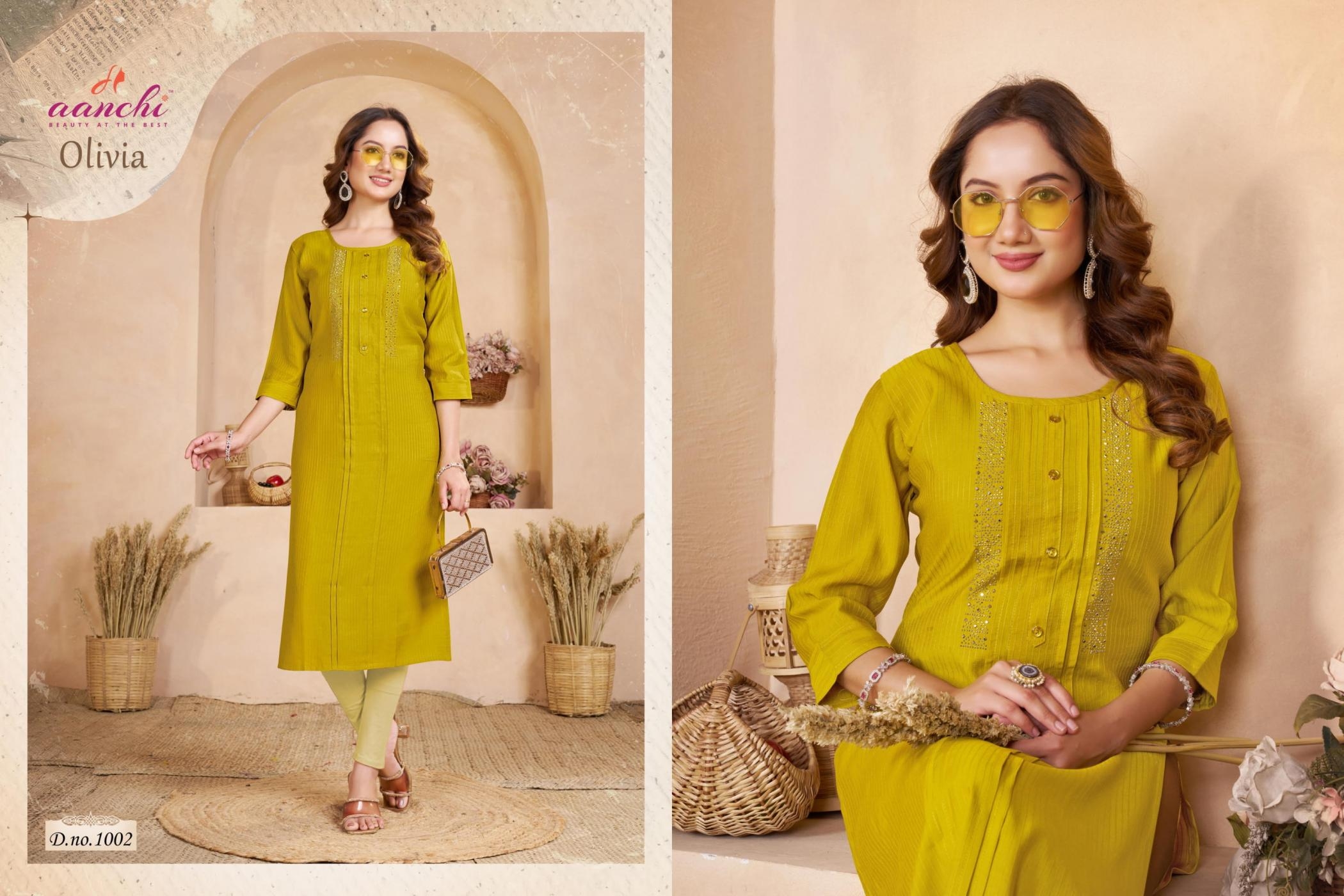 | Name: | Aanchi Olivia Series 1001-1006 Fancy Fabric Wholesale Kurti | |
