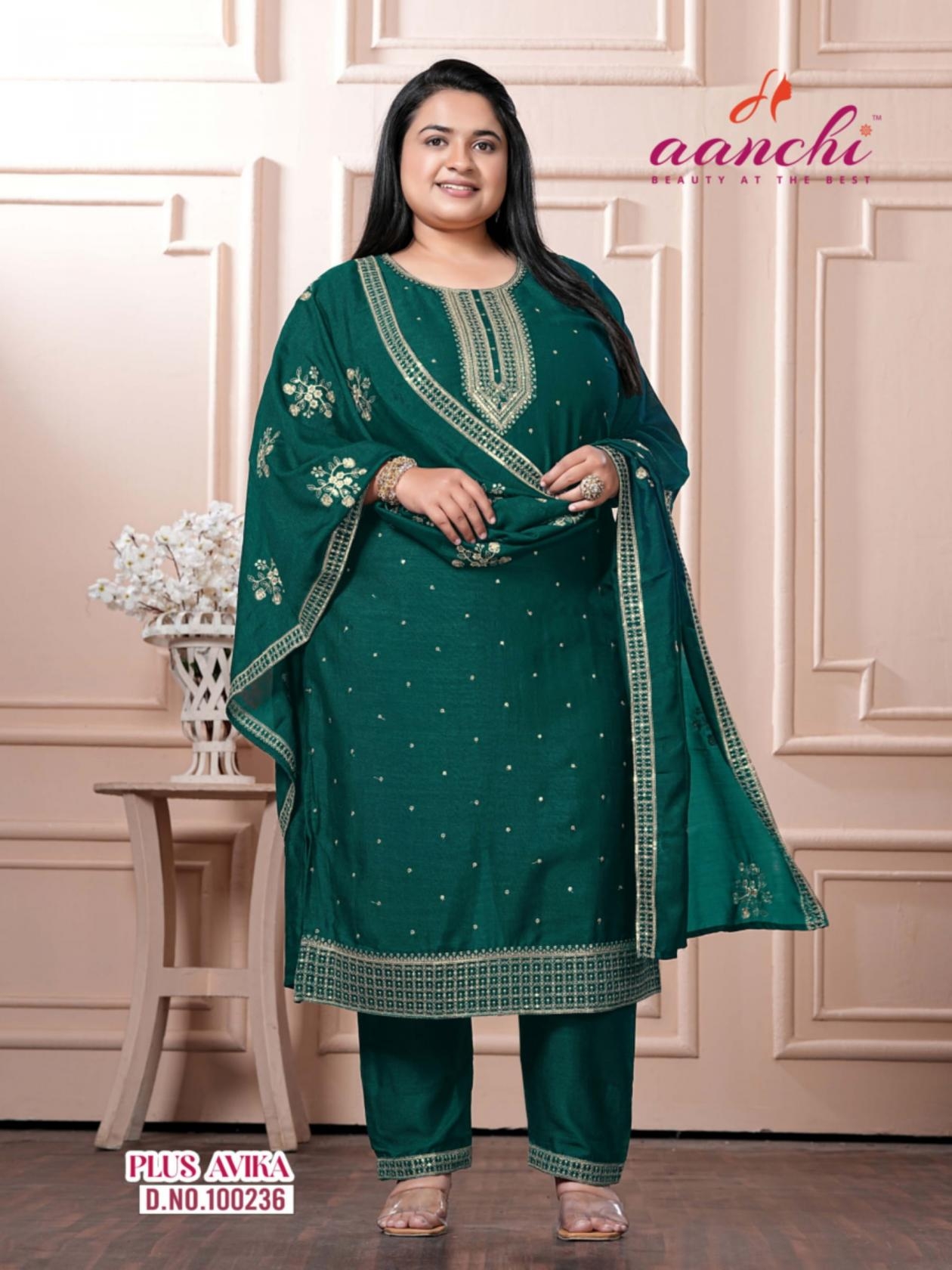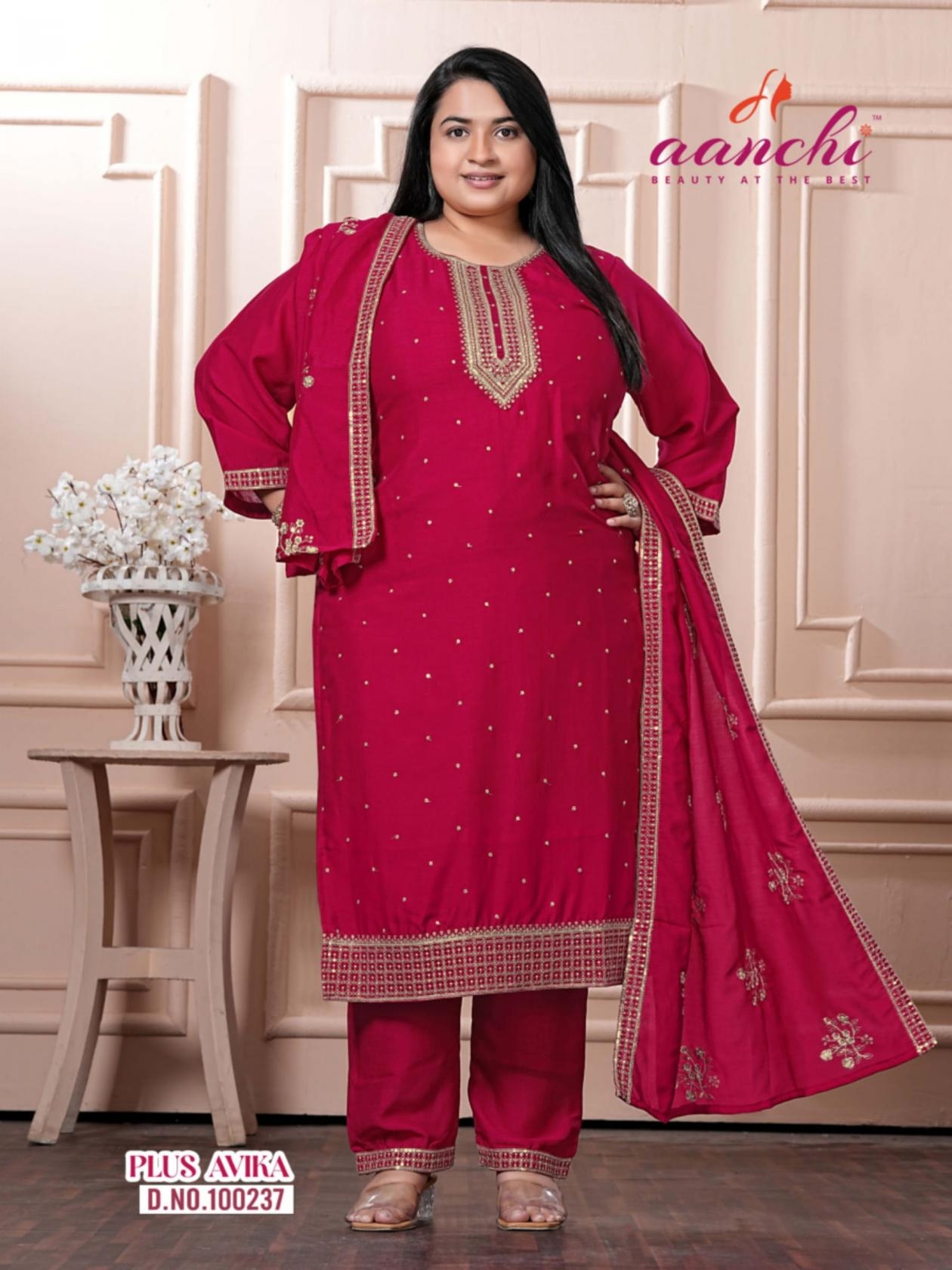 | Name: | Aanchi Plus Avika Series 100234 To 100237 Hit Design Vichitra Silk Readymade Combo Big Size Suit In Wholesale Surat |