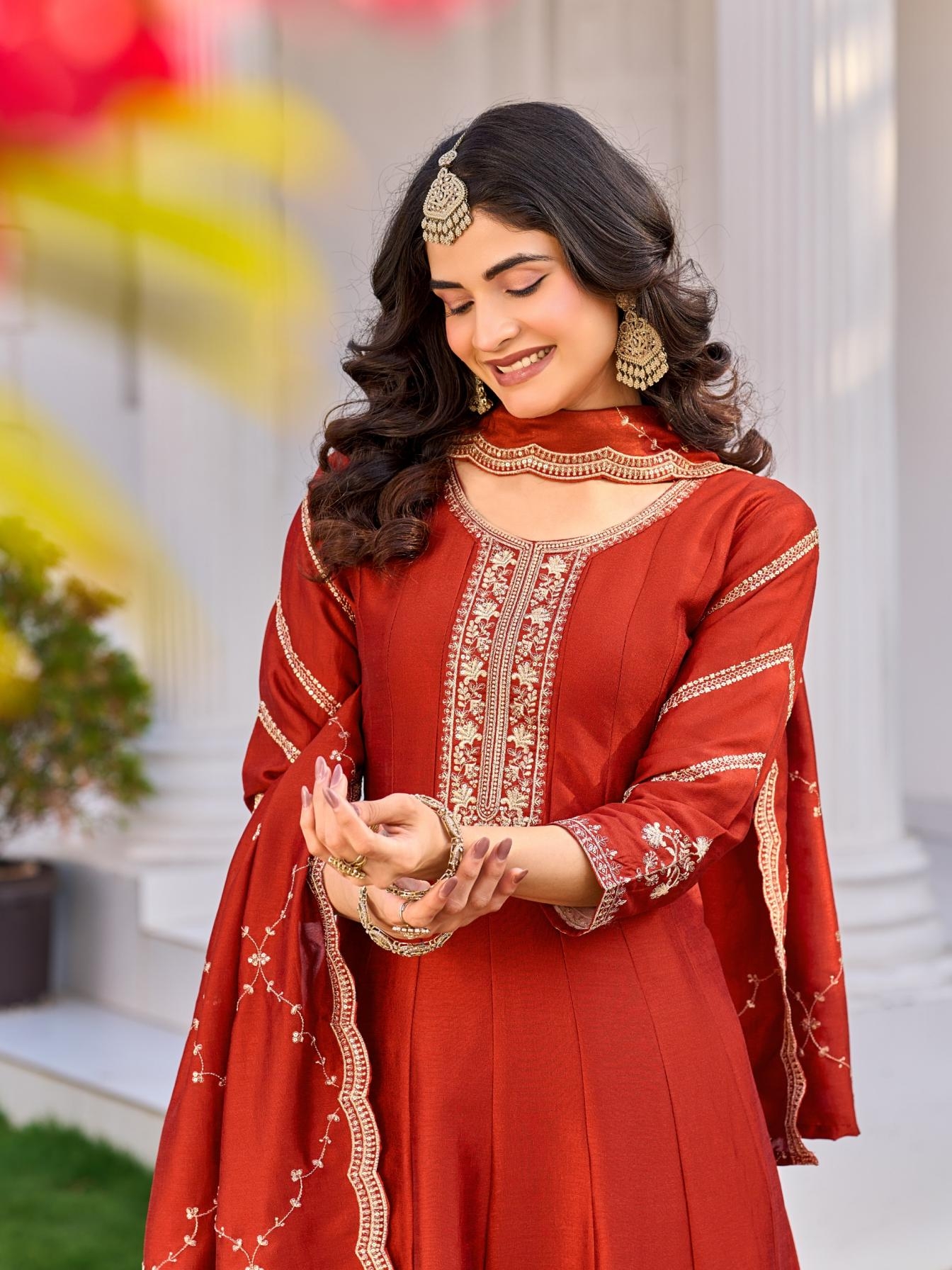 | Name: | Aanchi Plus Ziva Vichitra Silk Anarkali Readymade Suit |