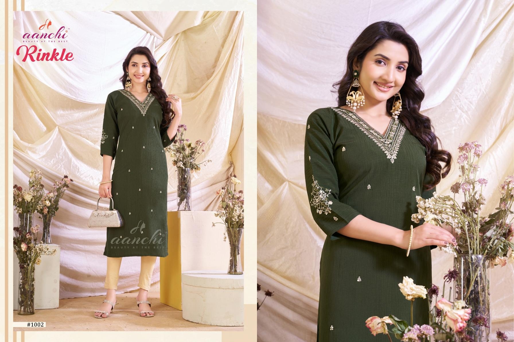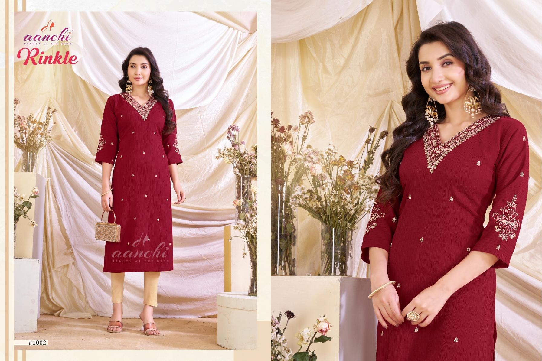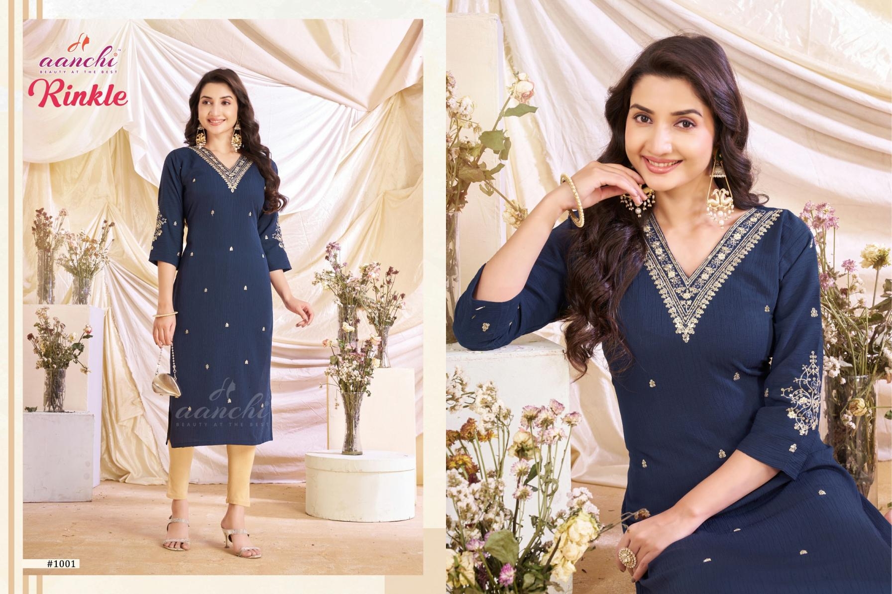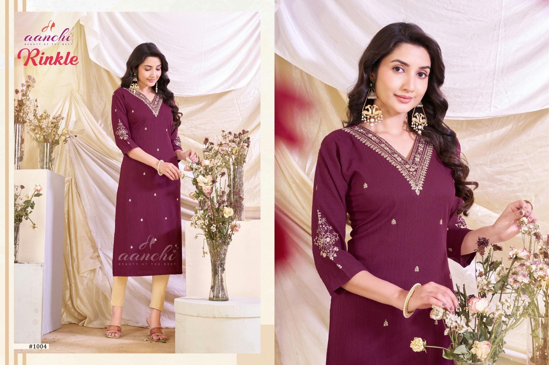 | Name: | Aanchi Rinkle Series 1001-1004 Rinkle Fancy Embroidery Kurti |