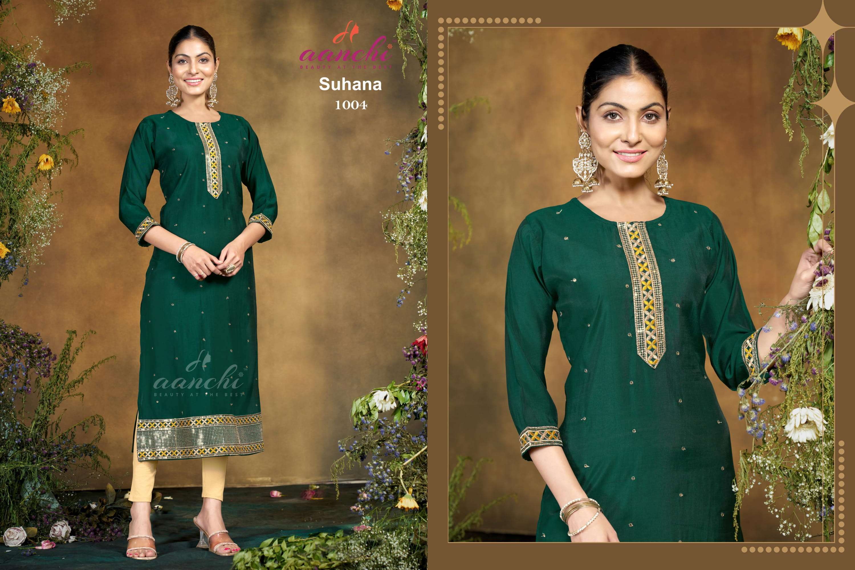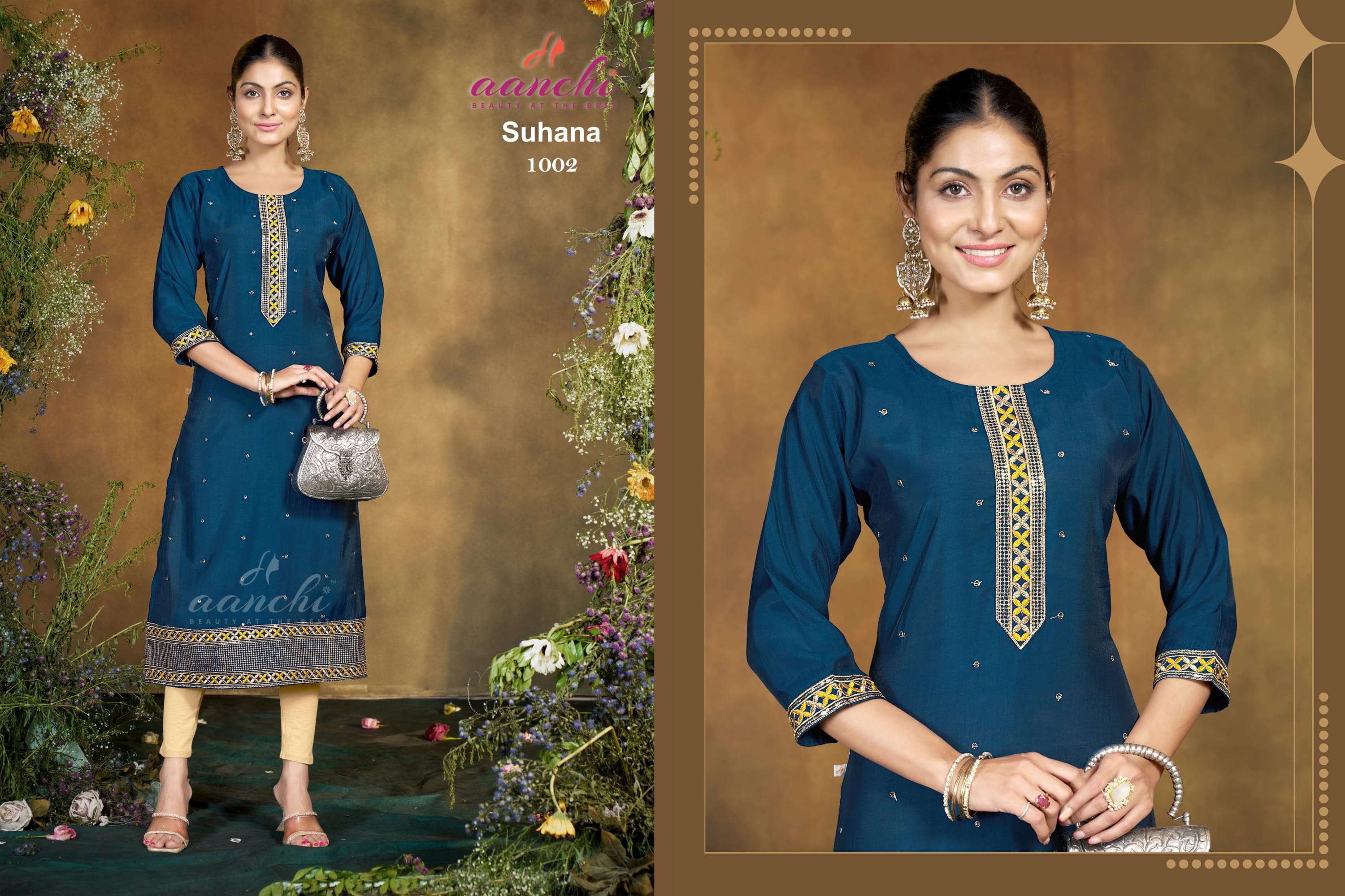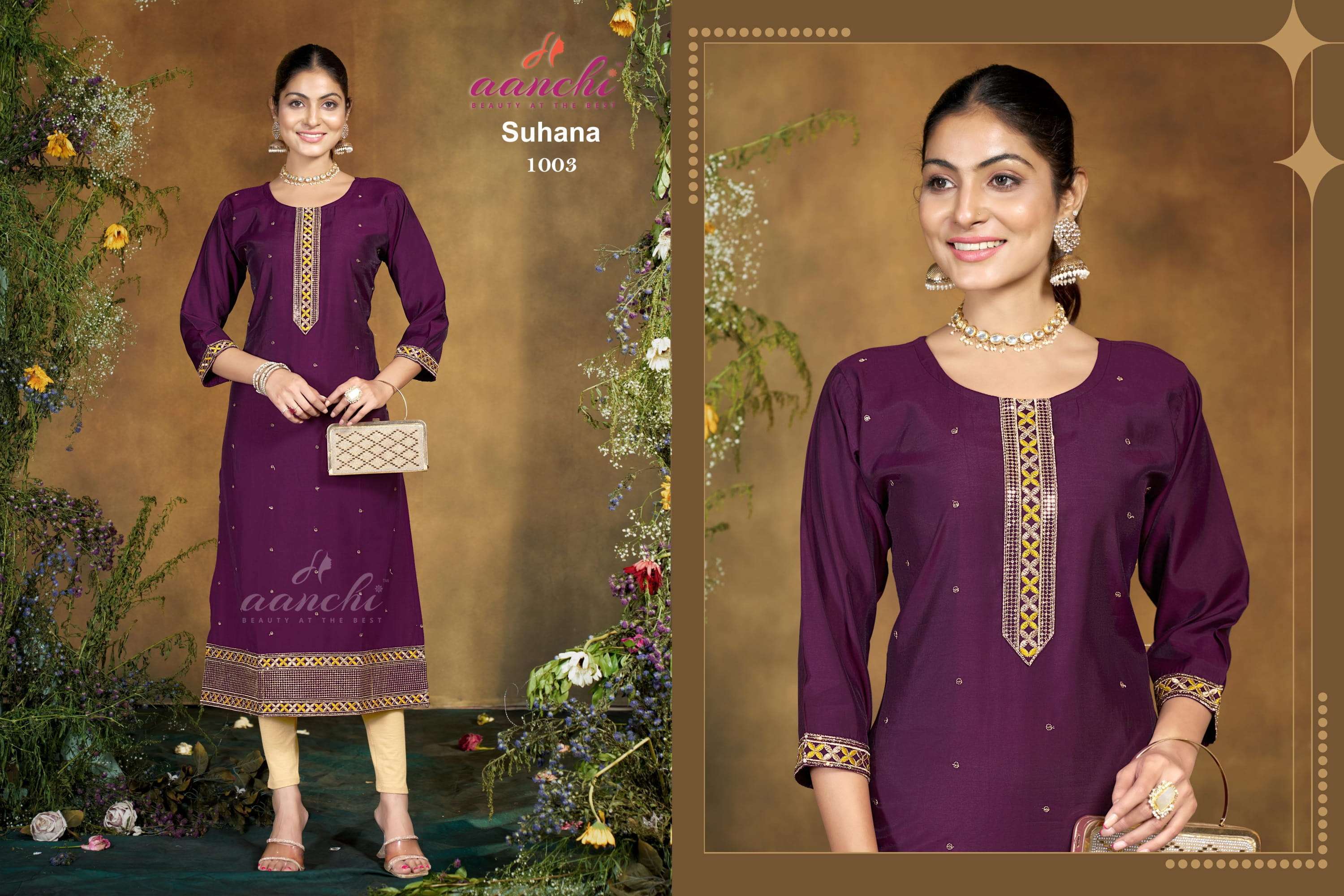 | Name: | Aanchi Suhana Series 1001 To 1004 Roman Silk Fully Stitch Pretty Look Kurti In Wholesale Surat |