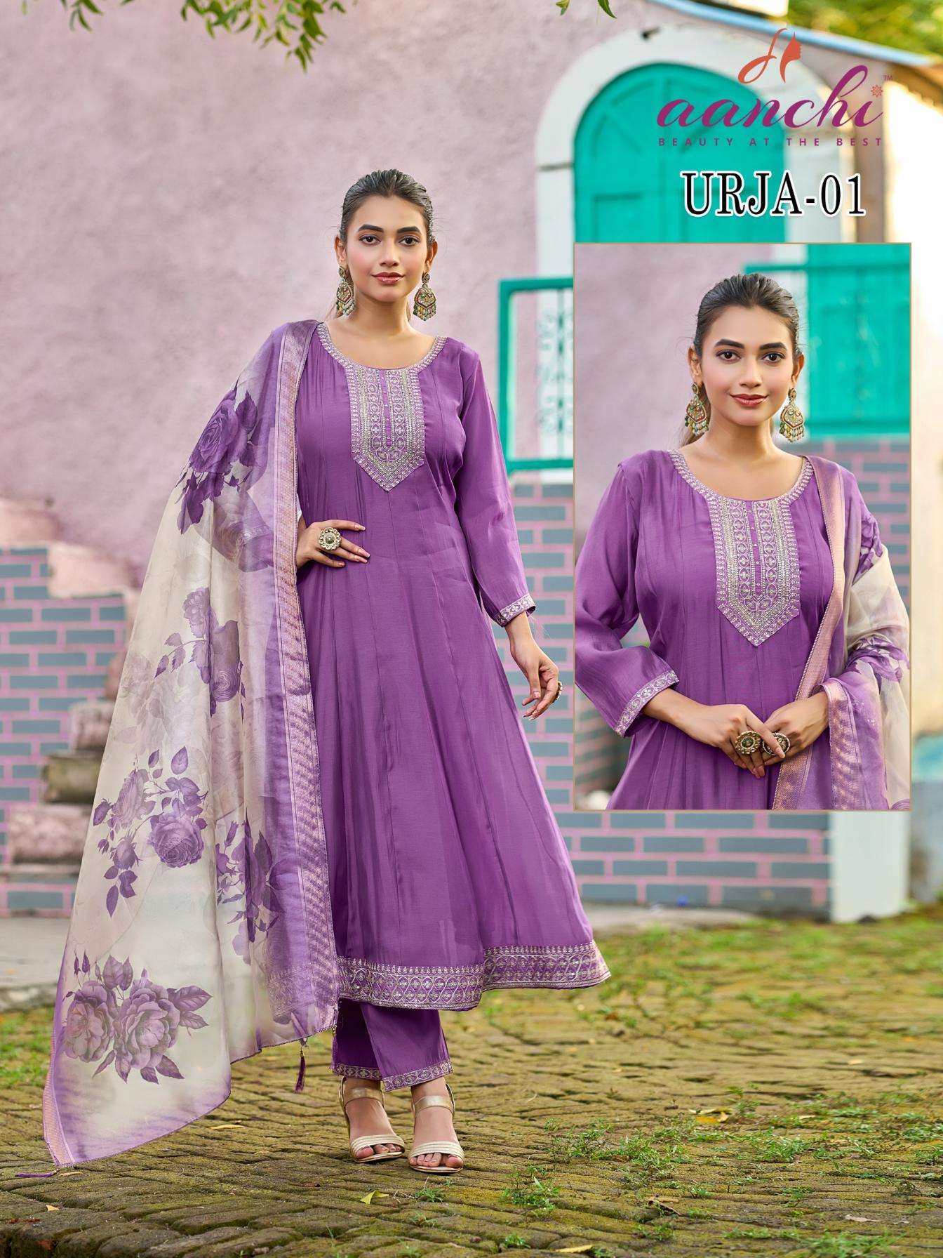 | Name: | Aanchi Urja 1-5 Mul Chanderi Fully Stitch Modern Salwar Kameez In Wholesale Surat |