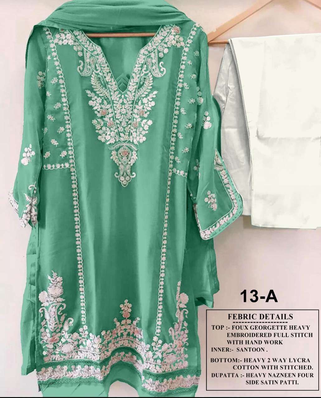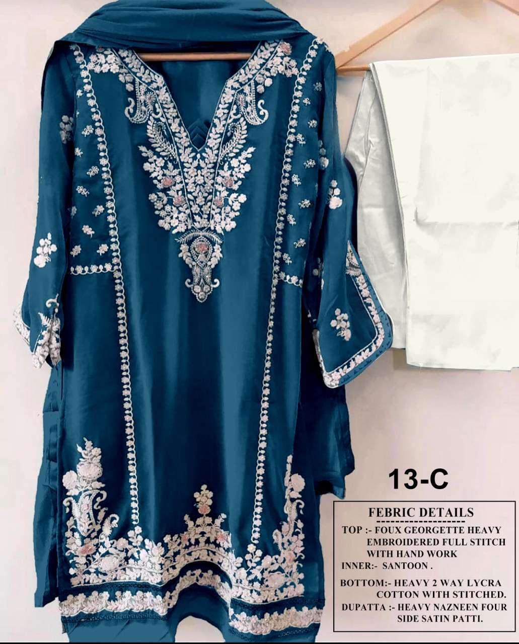 Other Details: | ðŸAARSH™ï¸ðŸ 🌹Design no:- 013🌹 👗Top:- Heavy Georgette with heavy embroidery and hand work 👖Bottom:- heavy 2 way laycra cotton 🧣Duppta:- Heavy Nazmeen with sateen Patti 😠RATE:-:1299 😠👉ðŸ»Size:- Top:- xl size ( chest 42) |