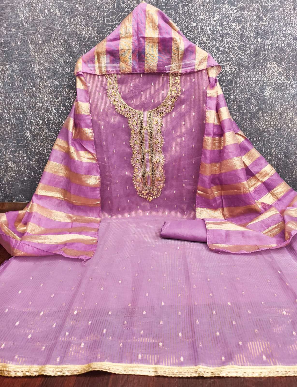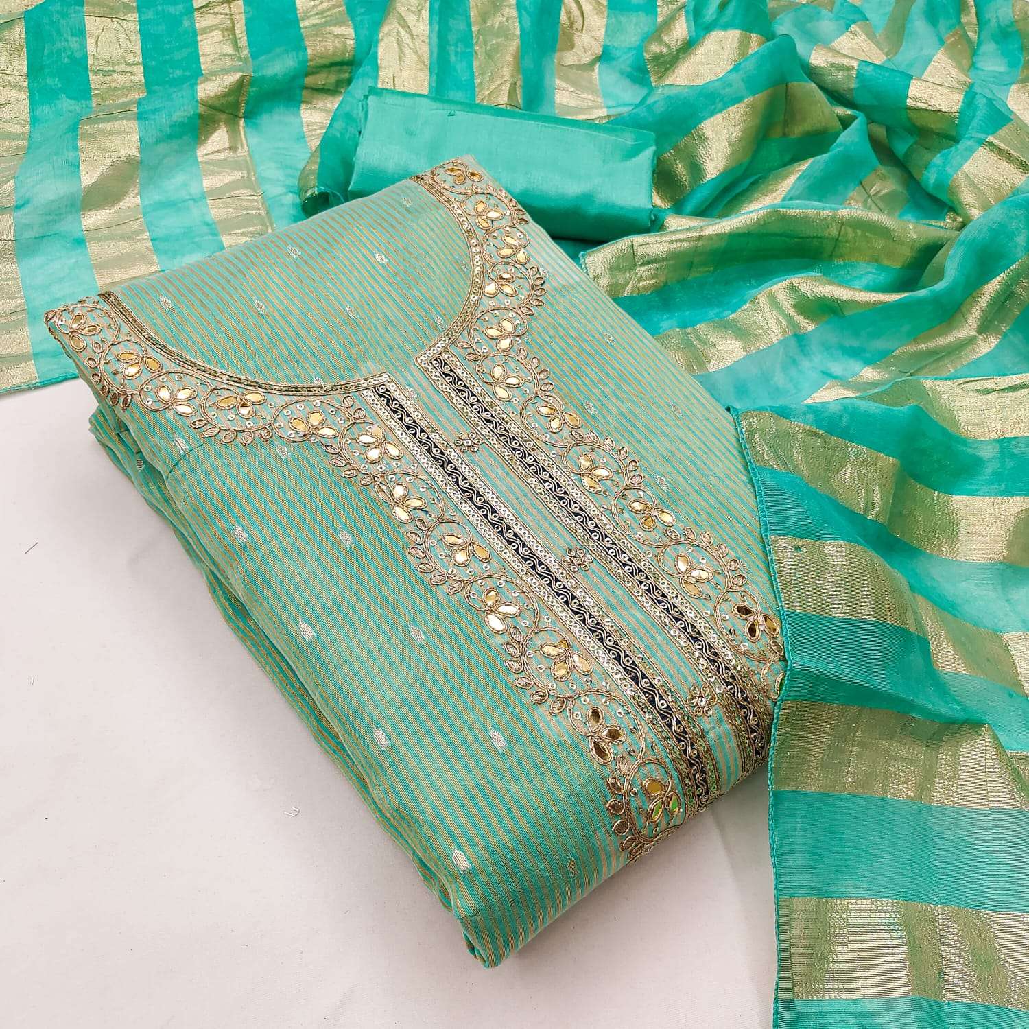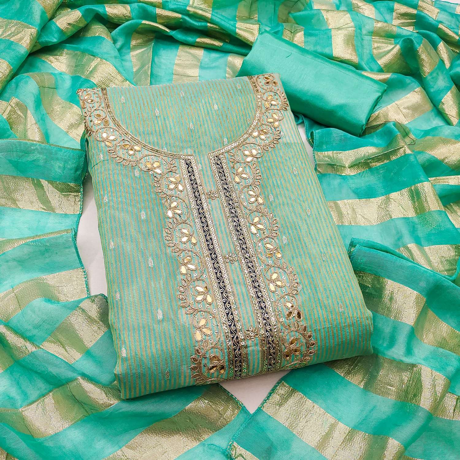 BOTTOM + INNER Fabrics:- Dupatta: CHANDEEI SILK FANCY ZAKARD ▪ Size: MATERIALS