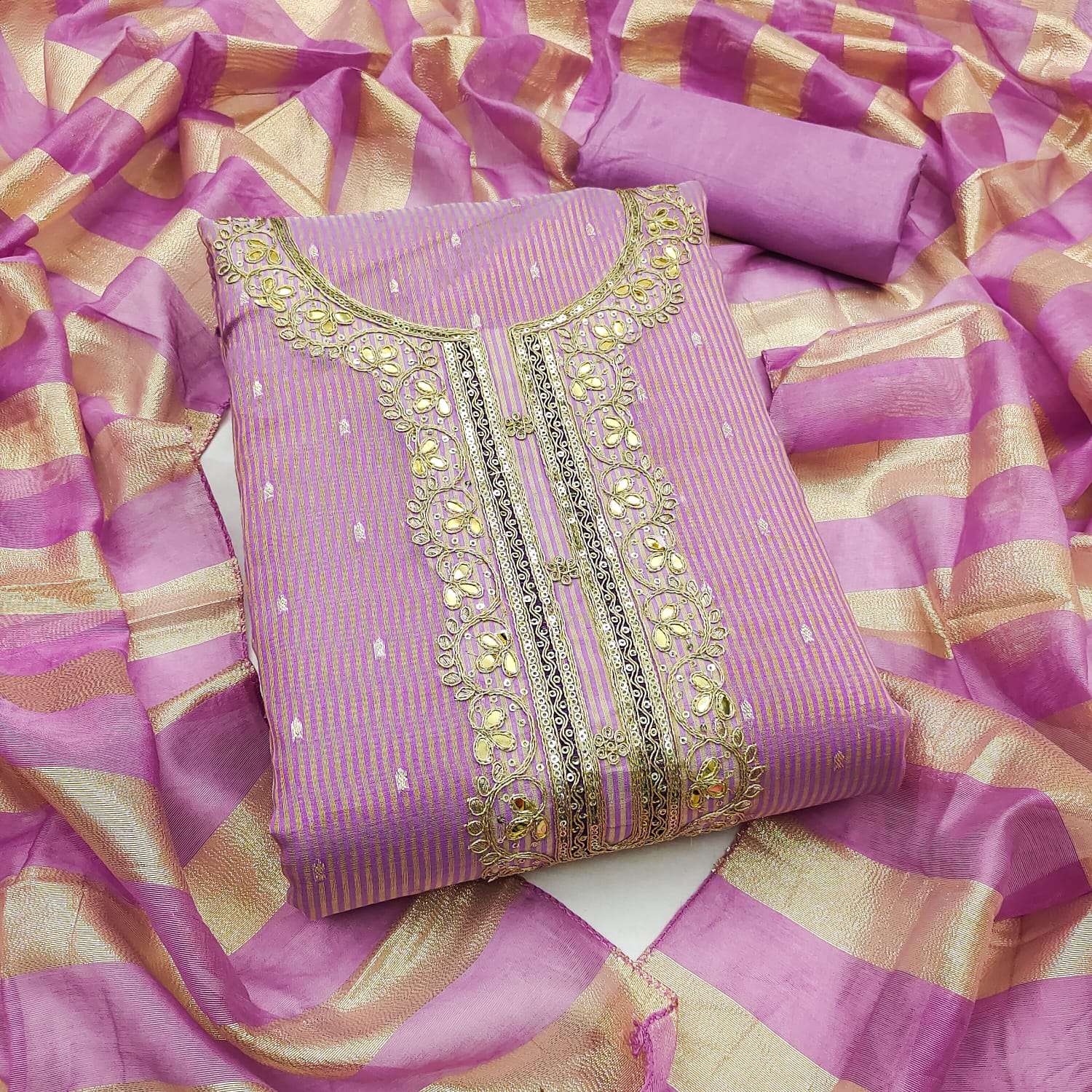 | Name: | Ahana Lining Simmer Silk Booti Kodding Squance Work Wholesale Suit |