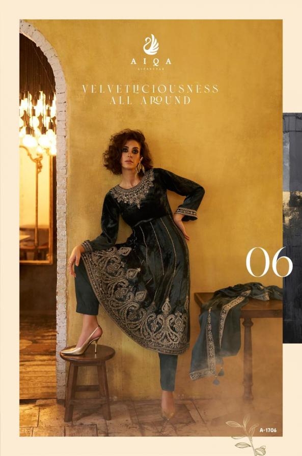 Name: | Aiqa Lifestyle Grey & Gold Series 1701 To 1706 Winter Viscose Velvet Salwar Kameez In Wholesale Surat |