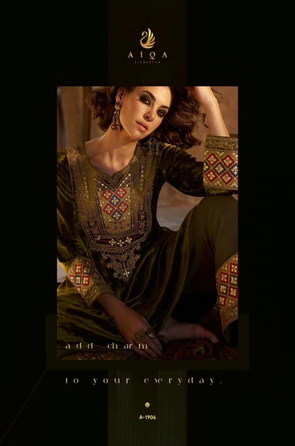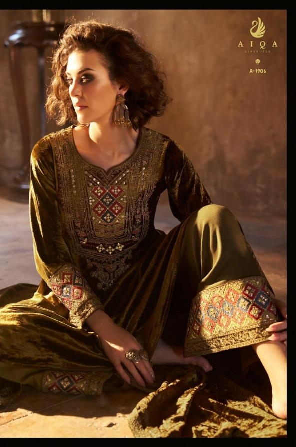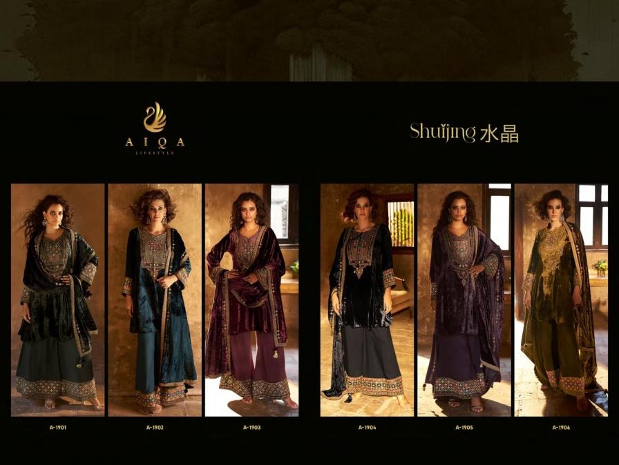| Name: | Aiqa Lifestyle Shuijing Series 1901 To 1906 Viscose Velvet Readymade Winter Suit In Wholesale Surat |