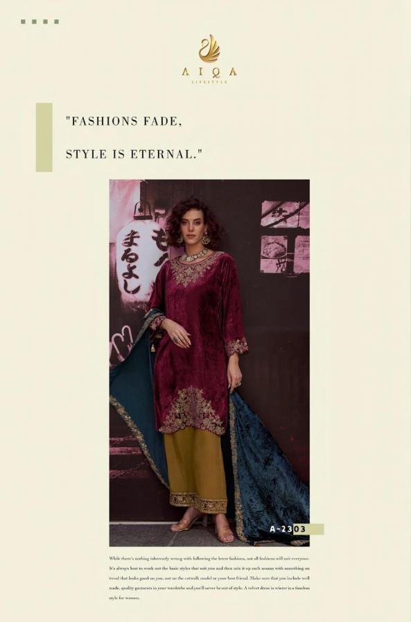 | Name: | Aiqa Lifestyle The Dance Of Love Series 2301 To 2306 Viscose Velvet Fully Stitch Suit In Wholesale Surat |