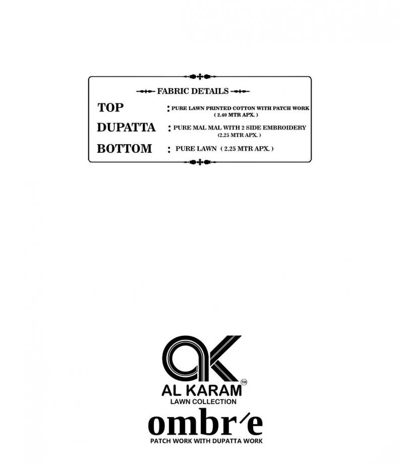 | Name: | Al Karam Ombre Series 01-06 Lawn Cotton Wholesale Suit In Surat | |