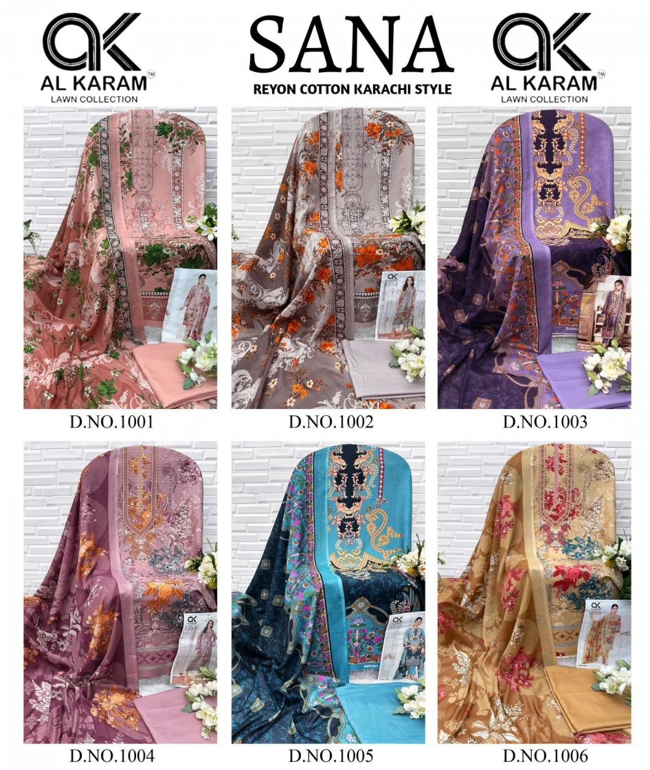 | Name: | Al Karam Sana Series 1001 To 1006 Stylish Rayon Pakistani Suits In Wholesale Surat |