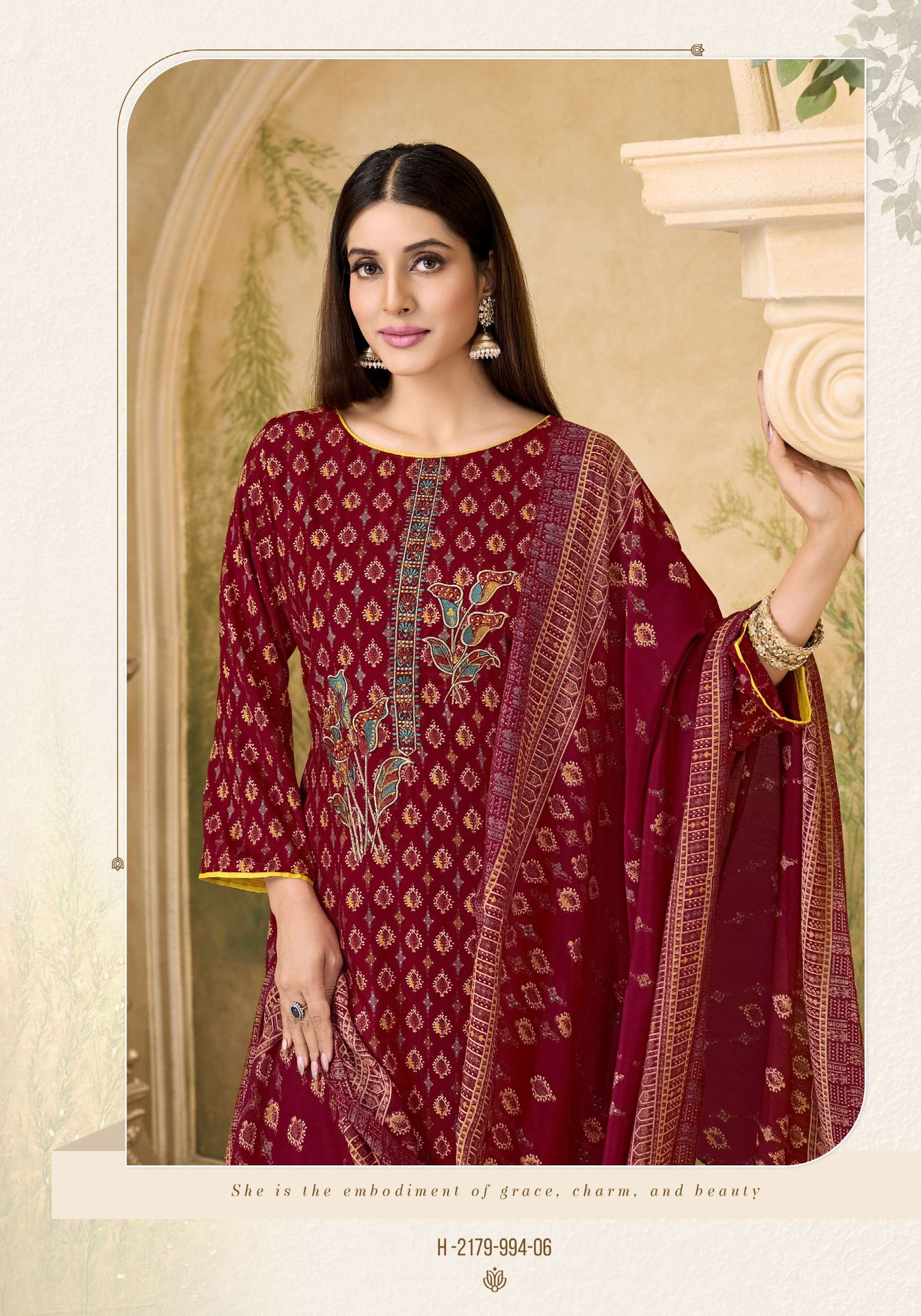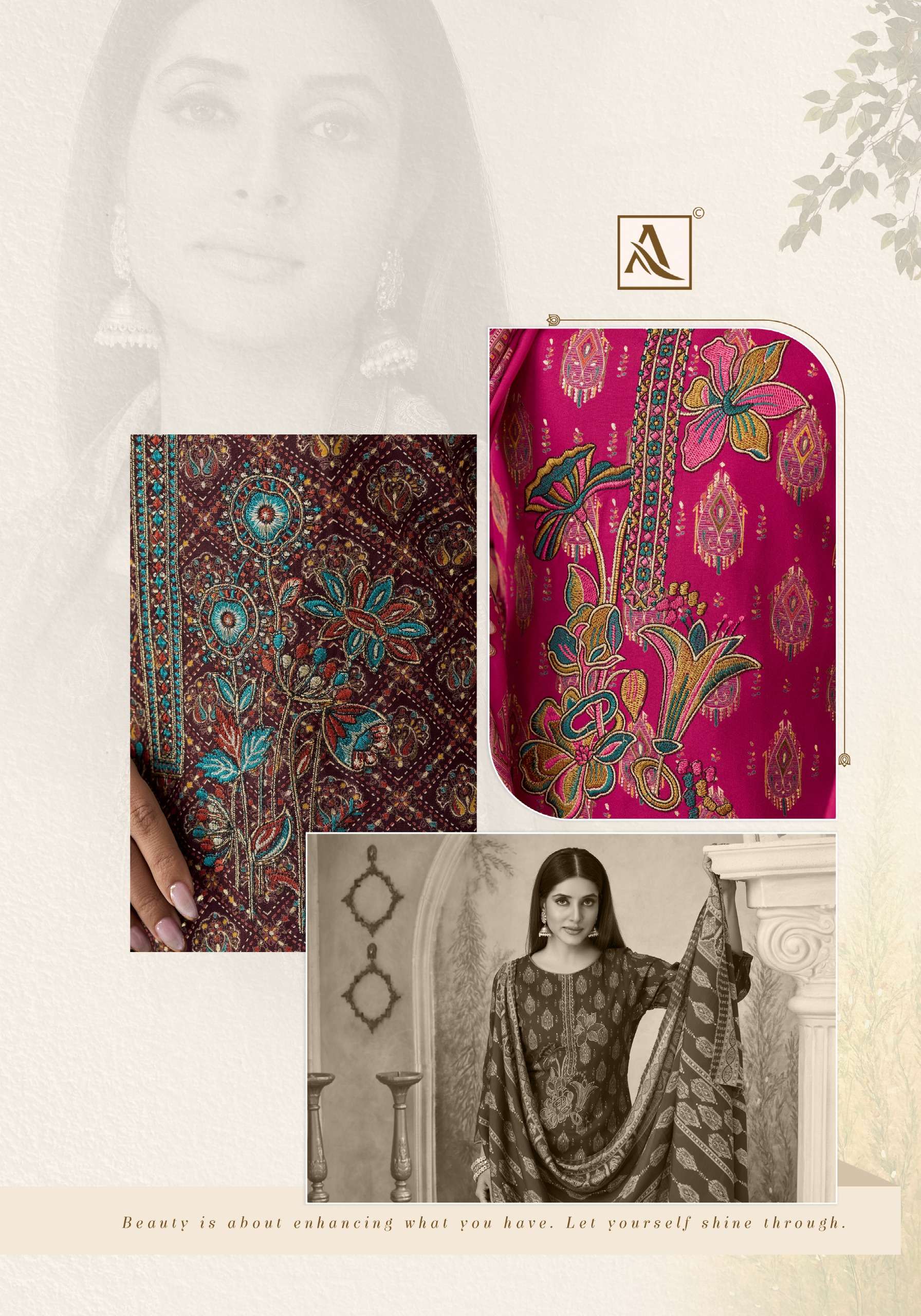 | Other Details: | Catalog Alok Suit Zarina Vol- 15 – Pakistani Dress Material Bottom: Pure Reyon Dyed | Cut:- 2 Mtr Dupatta: Pure Designer Self Weave Jacquard Dupatta With Four Side Printed Lace | Cut:- 2 Mtr |
