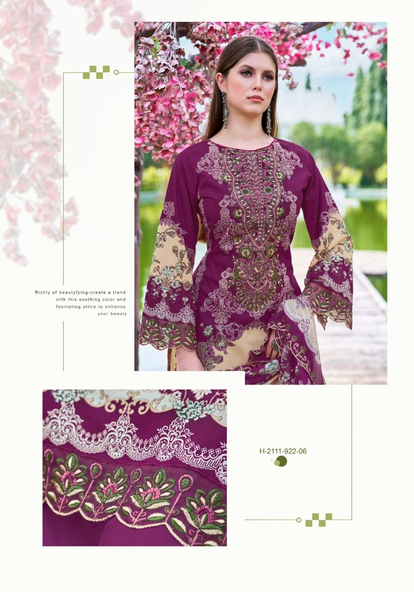 | Other Details: | ALOK SUITS AL ZAROON Top: Pure Cotton Cambric Pakistani Print With Fancy Embroidery With Daman & Sleeves Work Bottom: PURE 100% CAMBRIC COTTON Dup: Pure Cotton Mal Mal Print With Fancy Embroidery Work |
