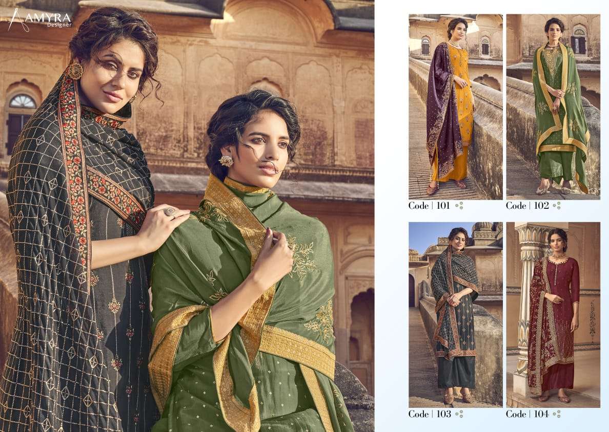 Name: | Amyra Magic Series 101-104 Chinon Silk Salwar Kameez |