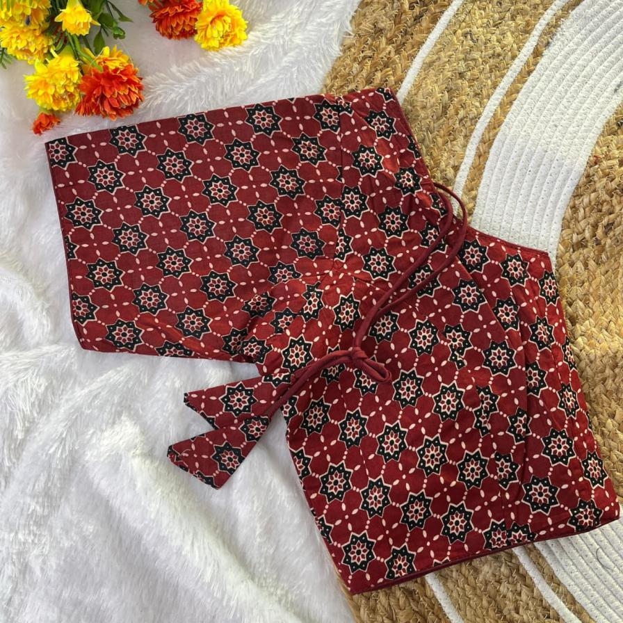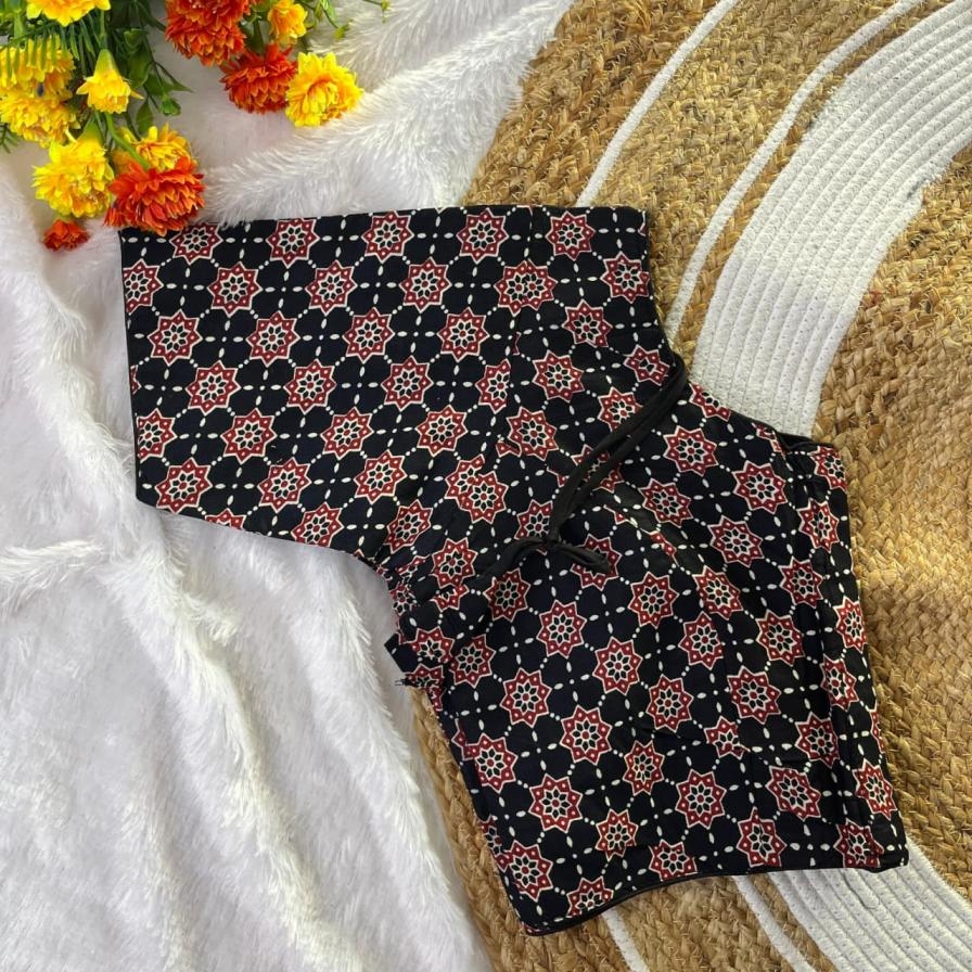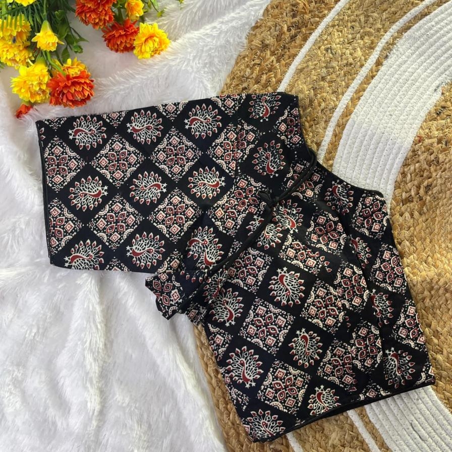 | Other Details: | ➡️ EXCLUSIVE ORIGINAL PURE COTTON AJRAKH PRINT NON PADDED FRONT HOOK OPEN BLOUSE ➡️Design- ANP ➡️Fabric- PURE COTTON ➡️Inner- Heavy Indo Cotton ➡️Work- Original Pure Cottan Ajrakh Print ➡️Pattern- ROUND NEACK ➡️Quality- A1 ➡️Padded- Non Padded ➡️Size- Free Size 40-42 Ready ➡️Length- 14-15 Inch ➡️Open Type- Front Hook Open ➡️Sleev- Elbow Sleeves Atteched ➡️Colour:- (63 Designs/Colours Available) 🖤💛🧡❤️🩷️💙💜🤍🤎 ➡️Price- 240/- ➡️SHIPPING EXTRA ➡️ BOOK FAST READY STOCK |