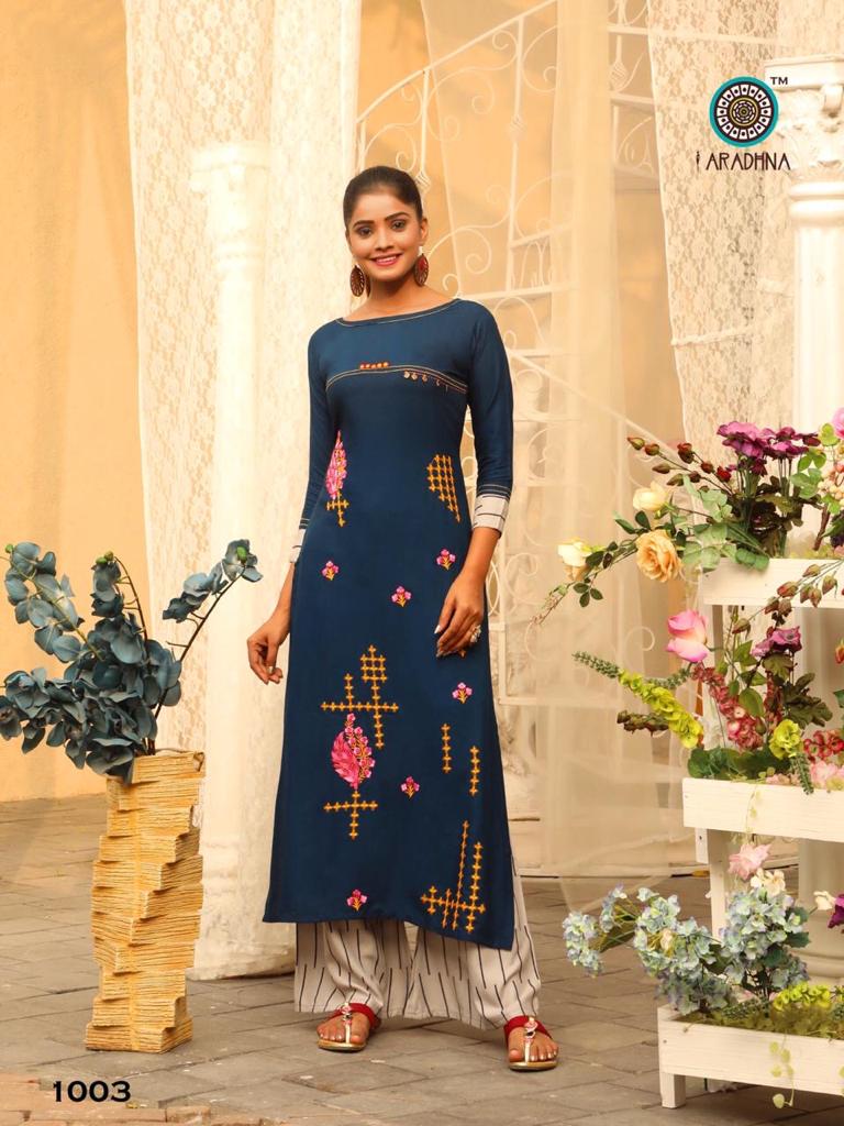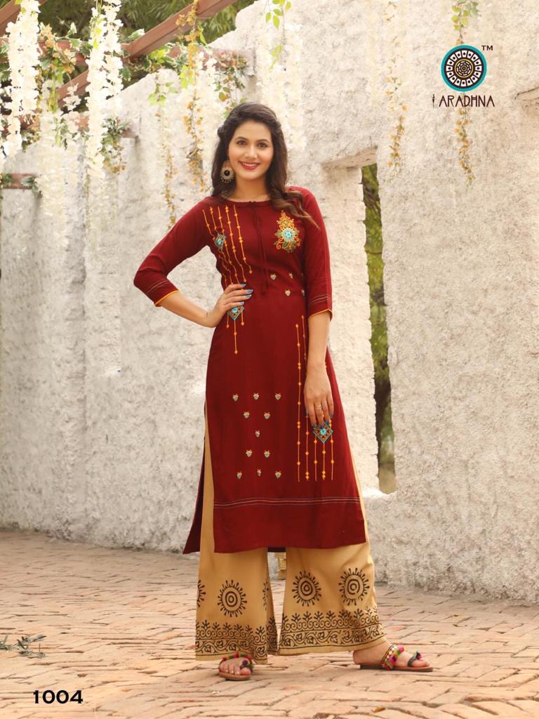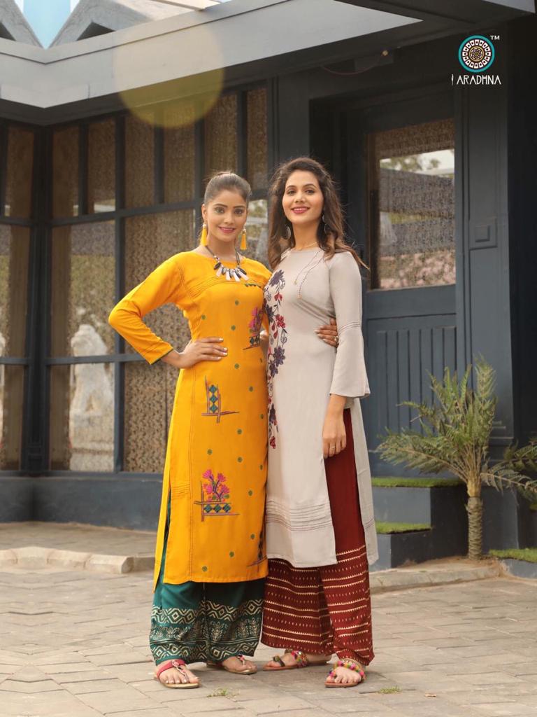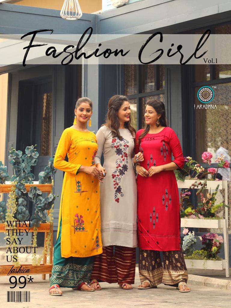 | Name: | Aradhna Fashion Girl Vol 1 Rayon Embroidery Designer Kurti With Palazzo |