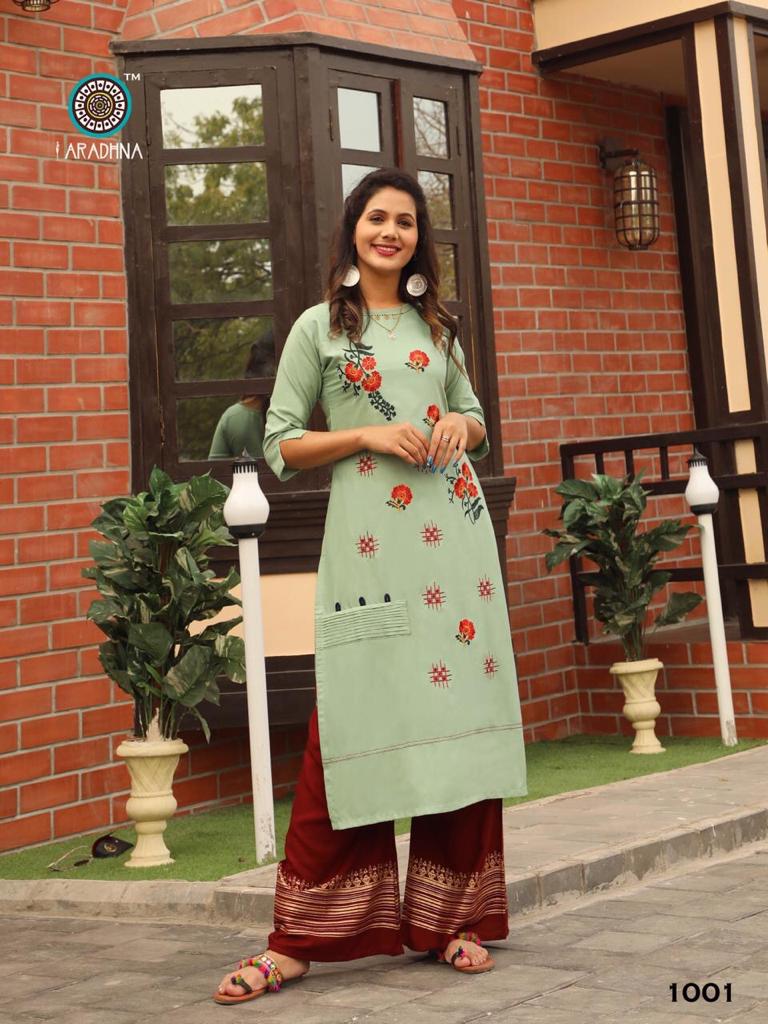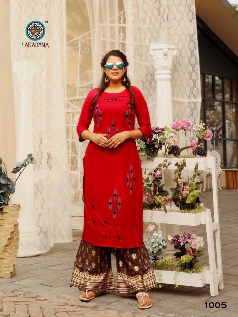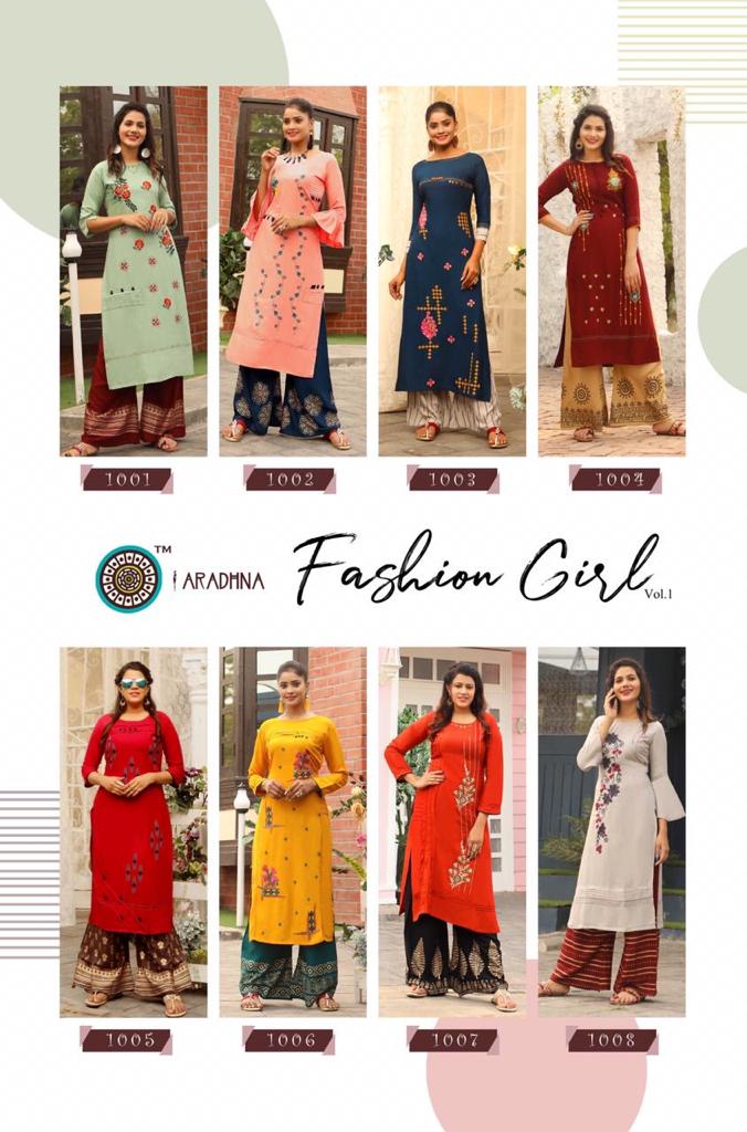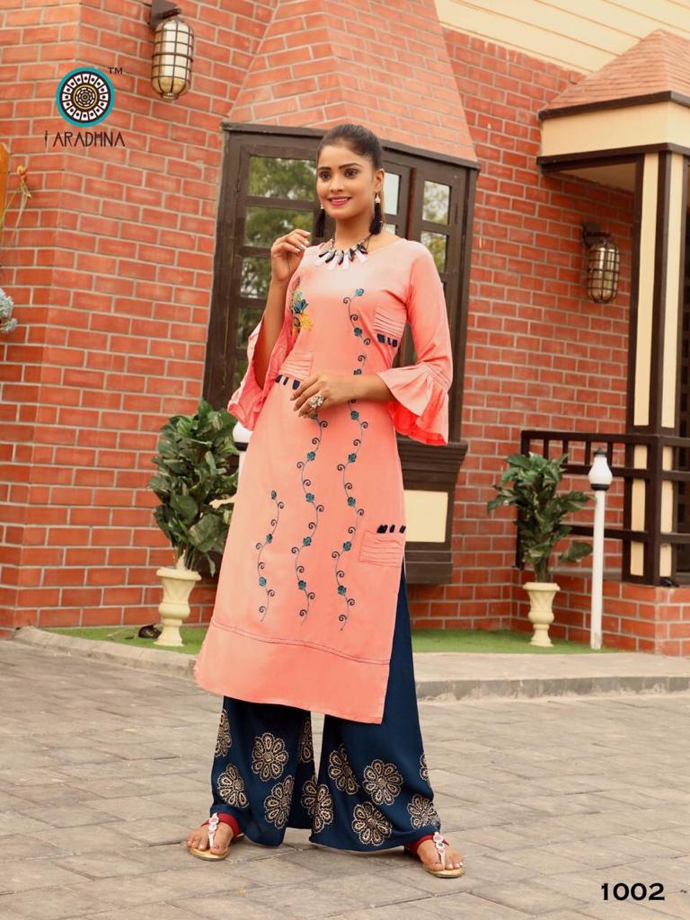 | Name: | Aradhna Fashion Girl Vol 1 Rayon Embroidery Designer Kurti With Palazzo |