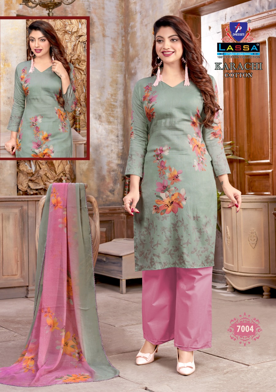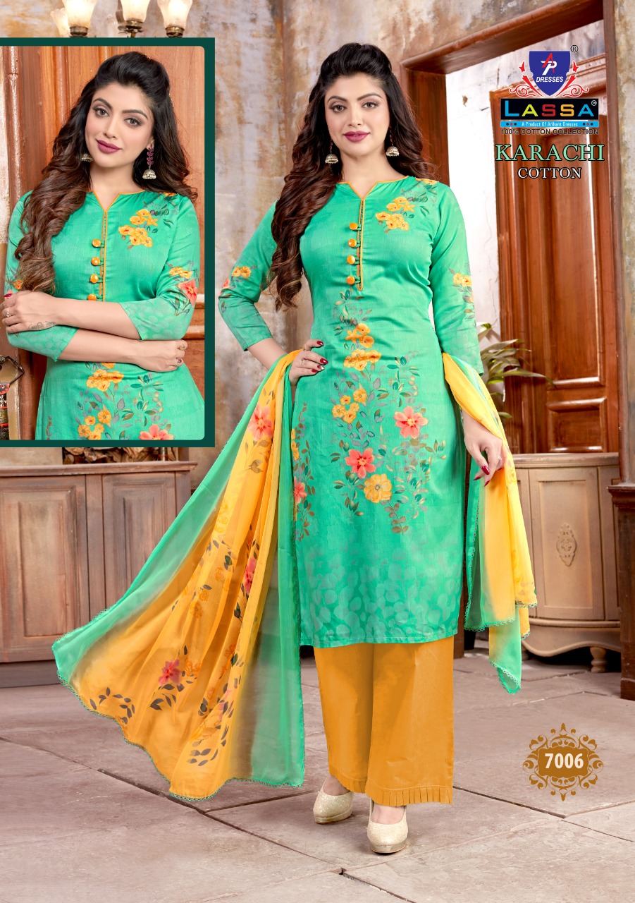| Other Details: | Brand AP Lassa Dresses Catalog Arihant Lassa Karachi Cotton Vol-7 Piece 10 Rate of 1 pc 265 Price 2650 Tax 5% GST Size Unstitched Fabric Karachi Cotton Top Karachi Cotton Printed | 2.0 Mtrs Bottom Karachi Cotton Printed | 2.0 Mtrs Dupatta Karachi CottonPrinted | 2.0 Mtrs Shipping Depending on Quantity |