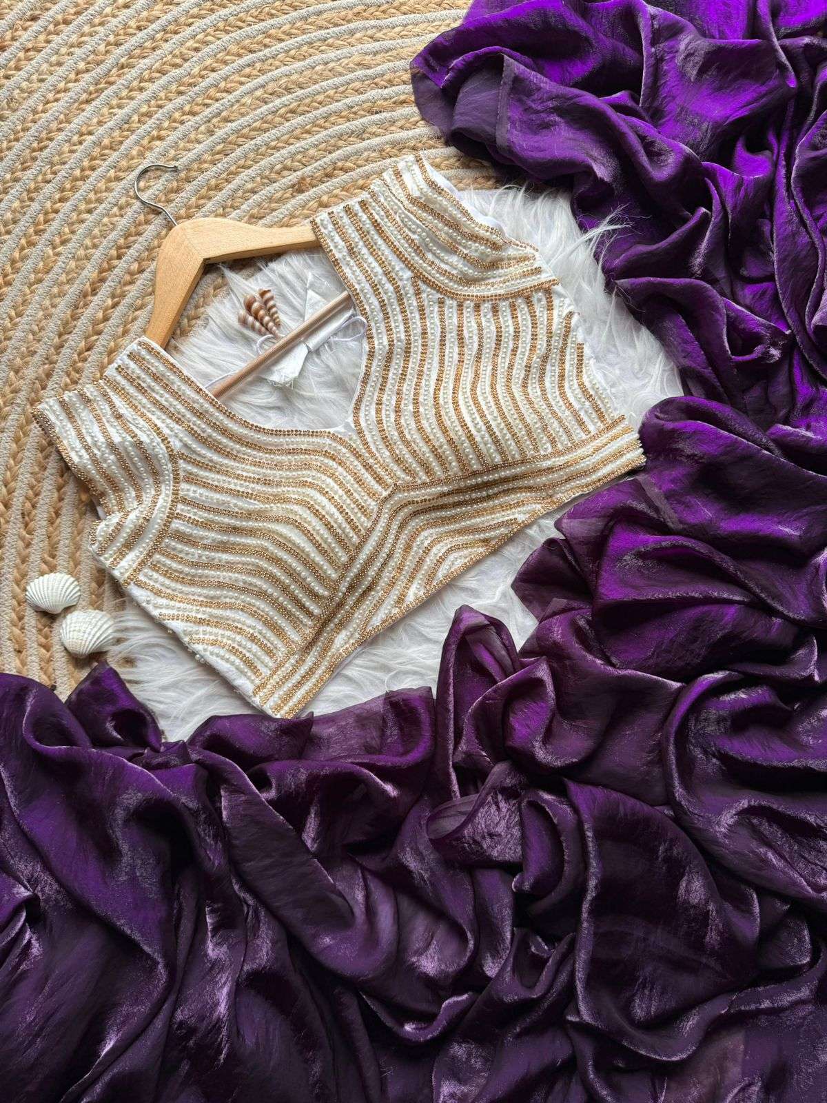 blouse - pearl work heavy with diamond lace as per picture stitched blouse 38 size ready max 42 size Dont compare our quality with others |