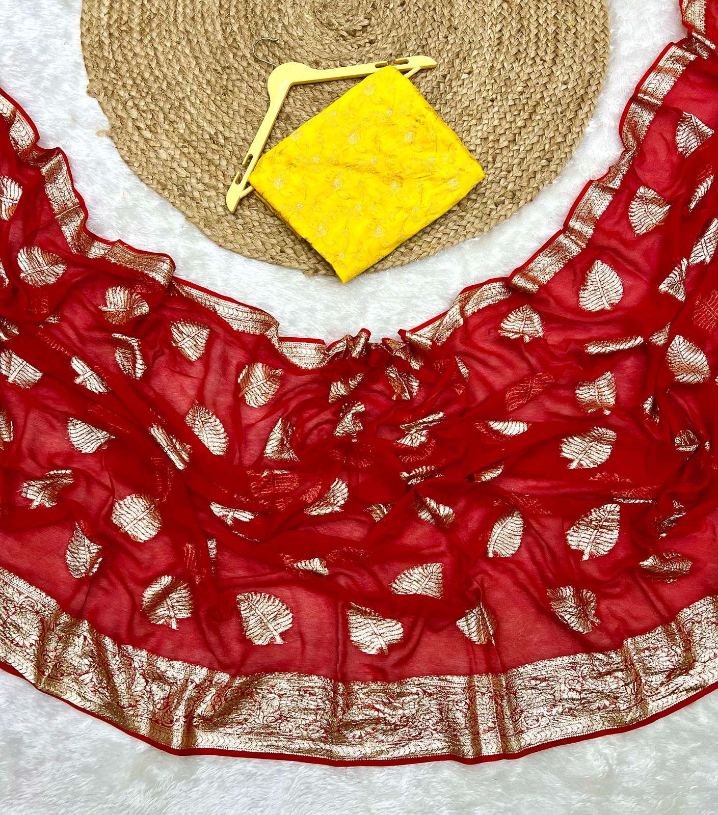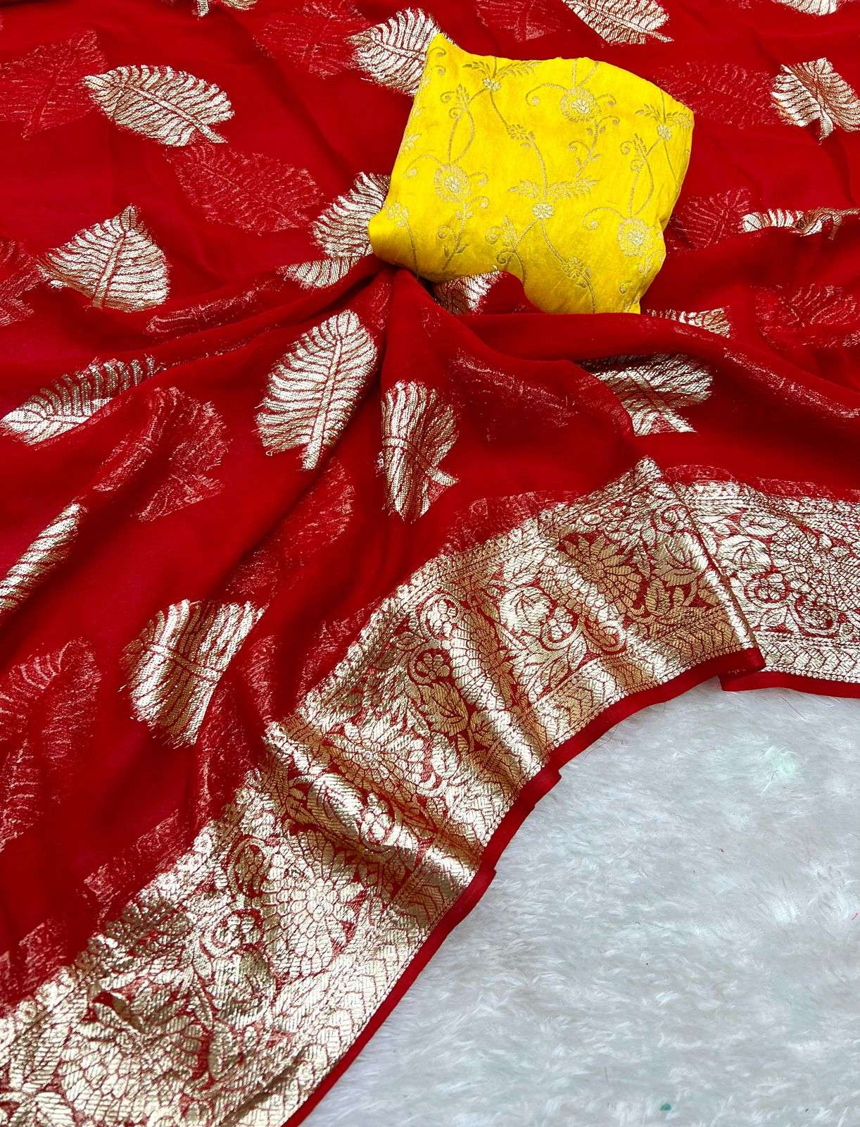 | Other Details: | Arpita New Arrival🥳🥳 Best Selling Product Viscose Georgette Saree With banarashi Contrast Blouse ! Price 799/- fix rate Ready Stock Available |