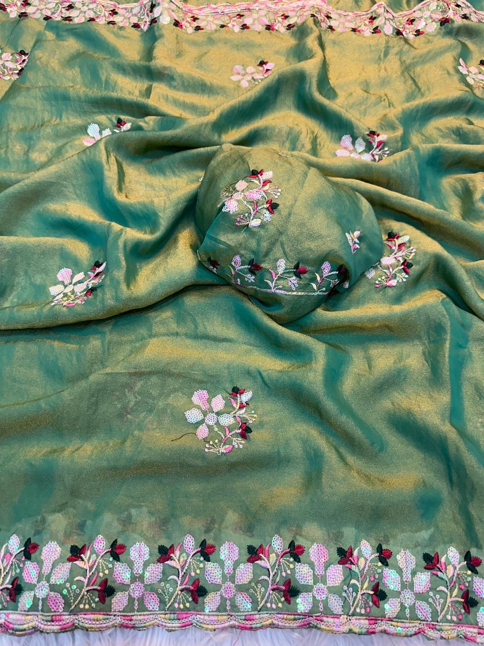 | Name: | Asp Nc Moss Silk Saree With Fancy Sequince Embroderiy Work |