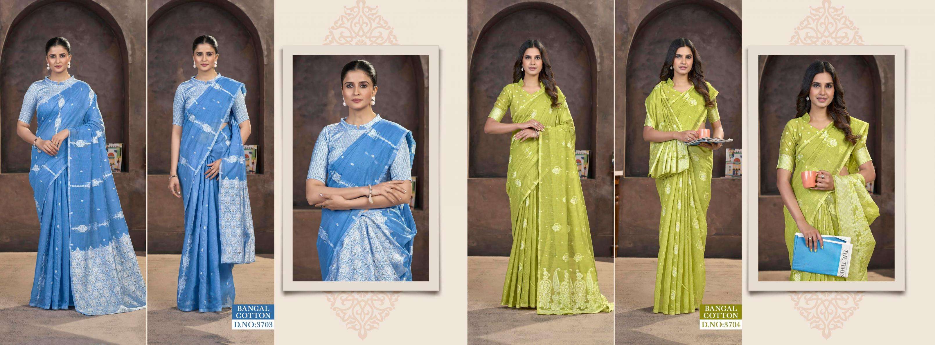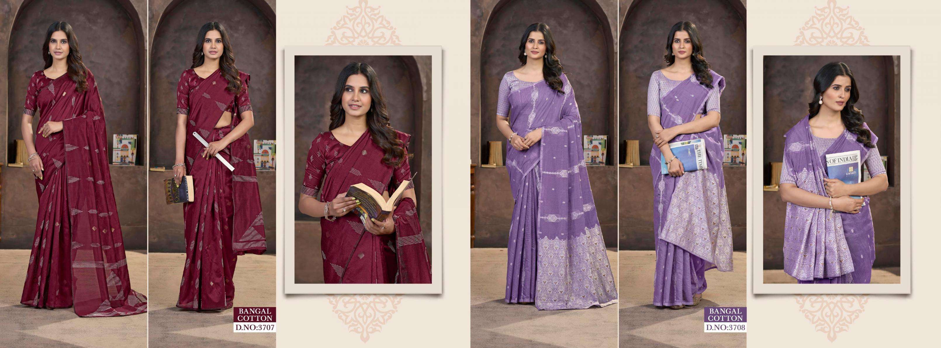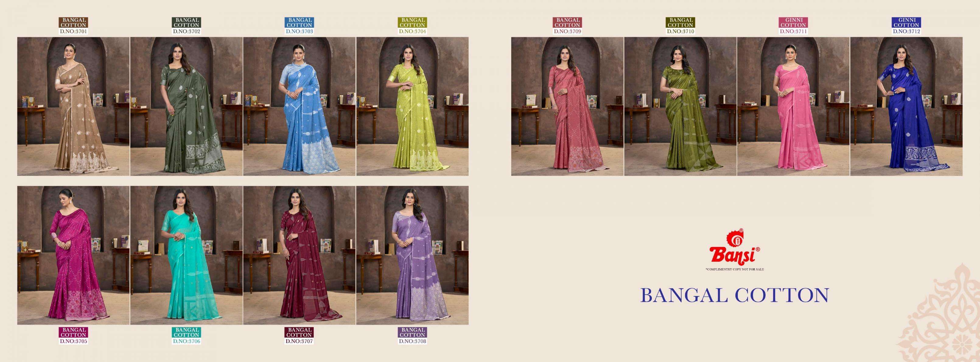 | Name: | Bansi Bengal Cotton Series 3701 To 3712 Jari Weaving Pallu & Weaving Border Sarees In Wholesale Surat |