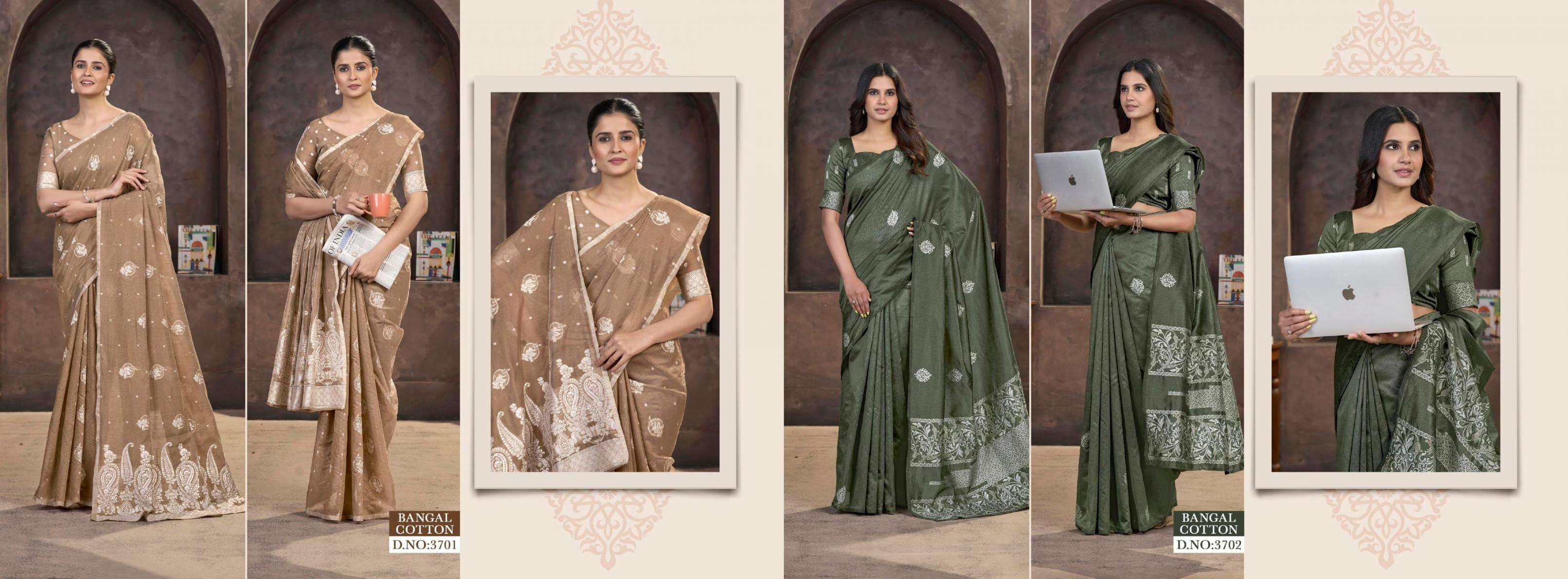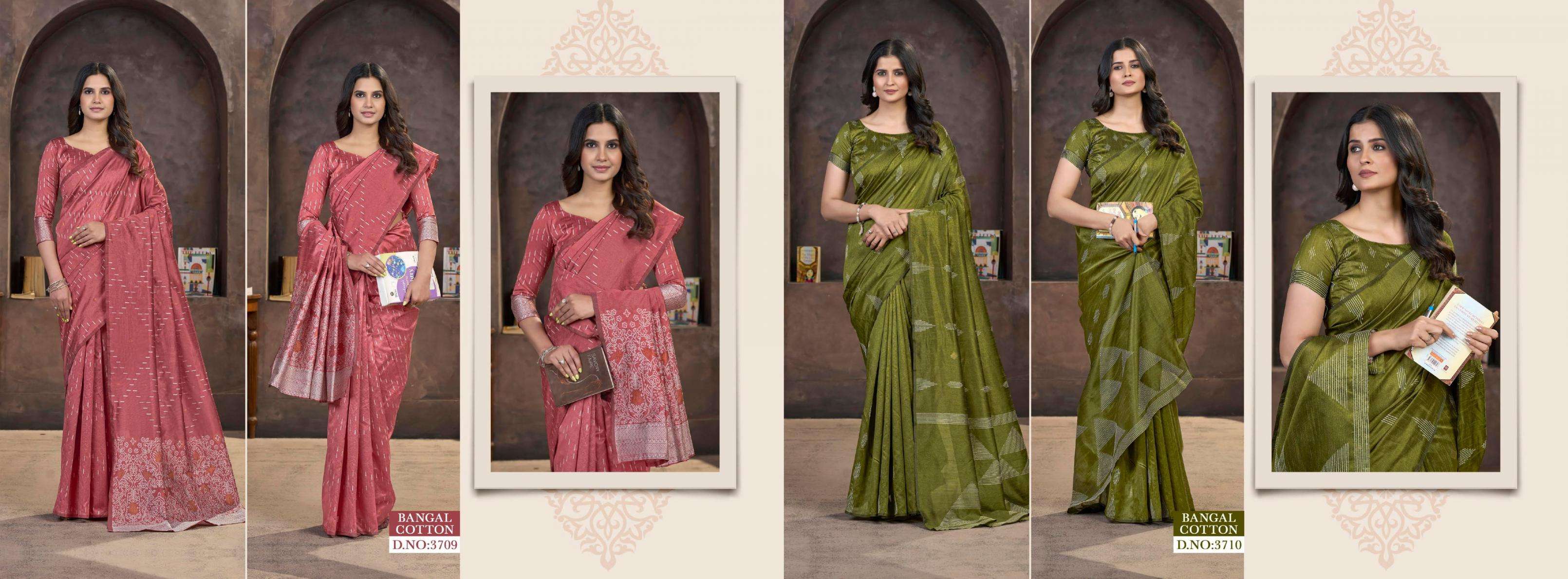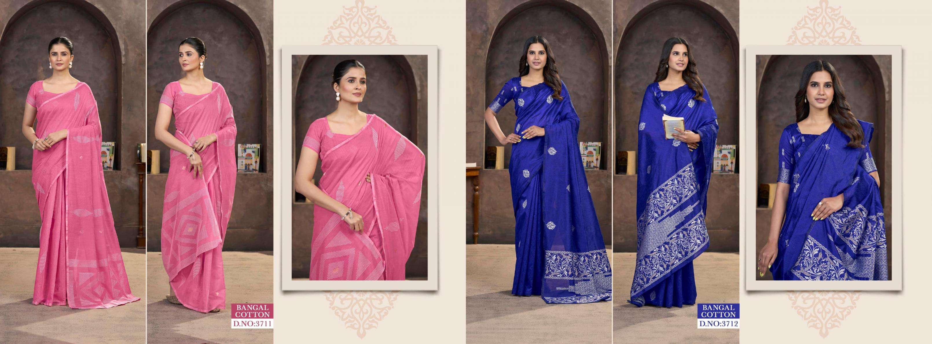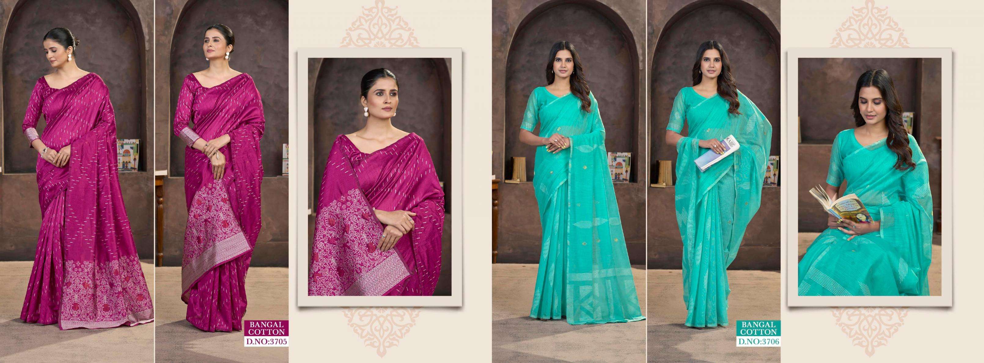 | Name: | Bansi Bengal Cotton Series 3701 To 3712 Jari Weaving Pallu & Weaving Border Sarees In Wholesale Surat |