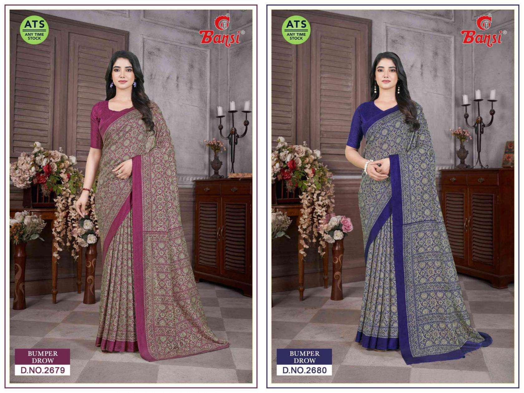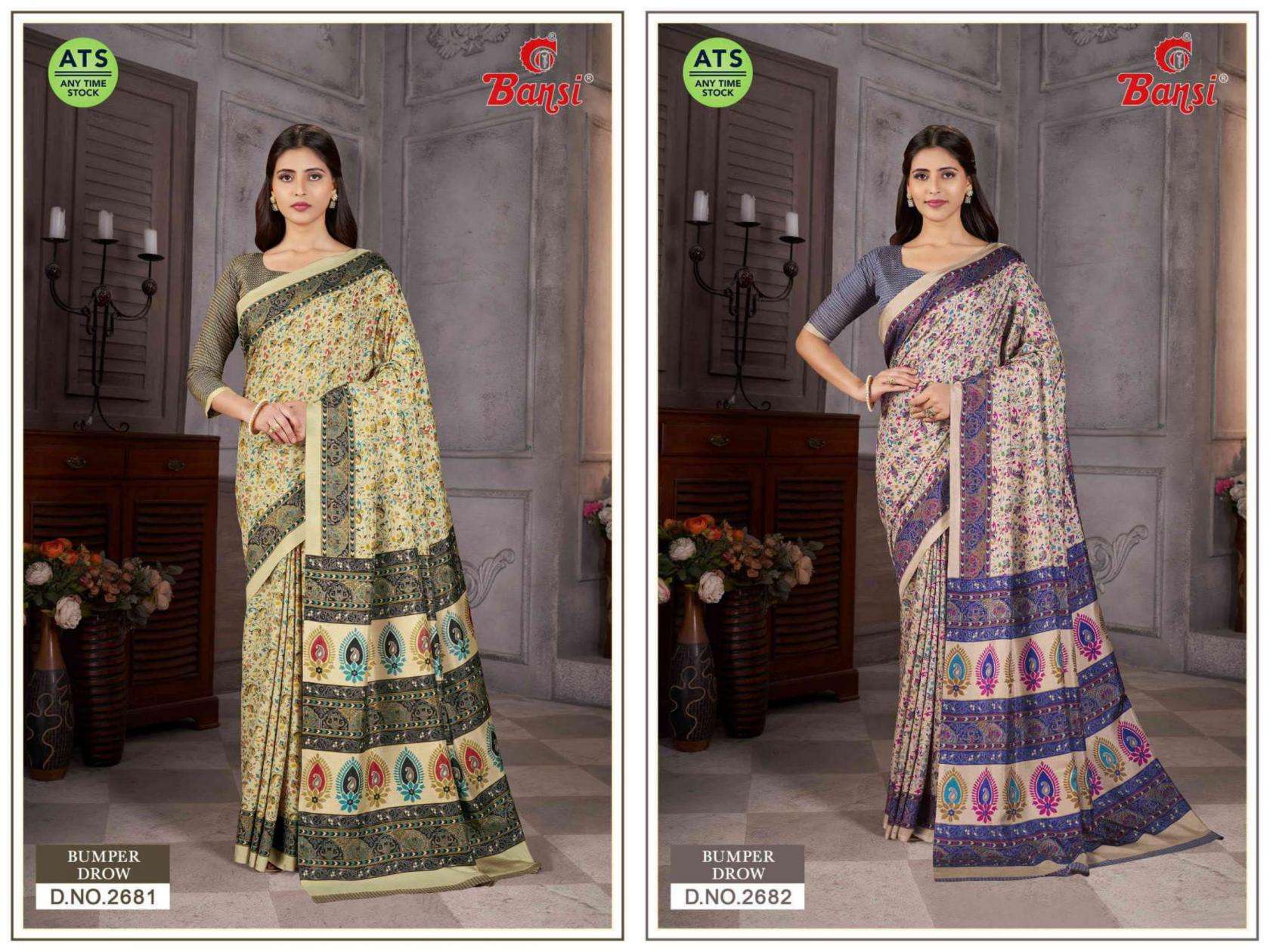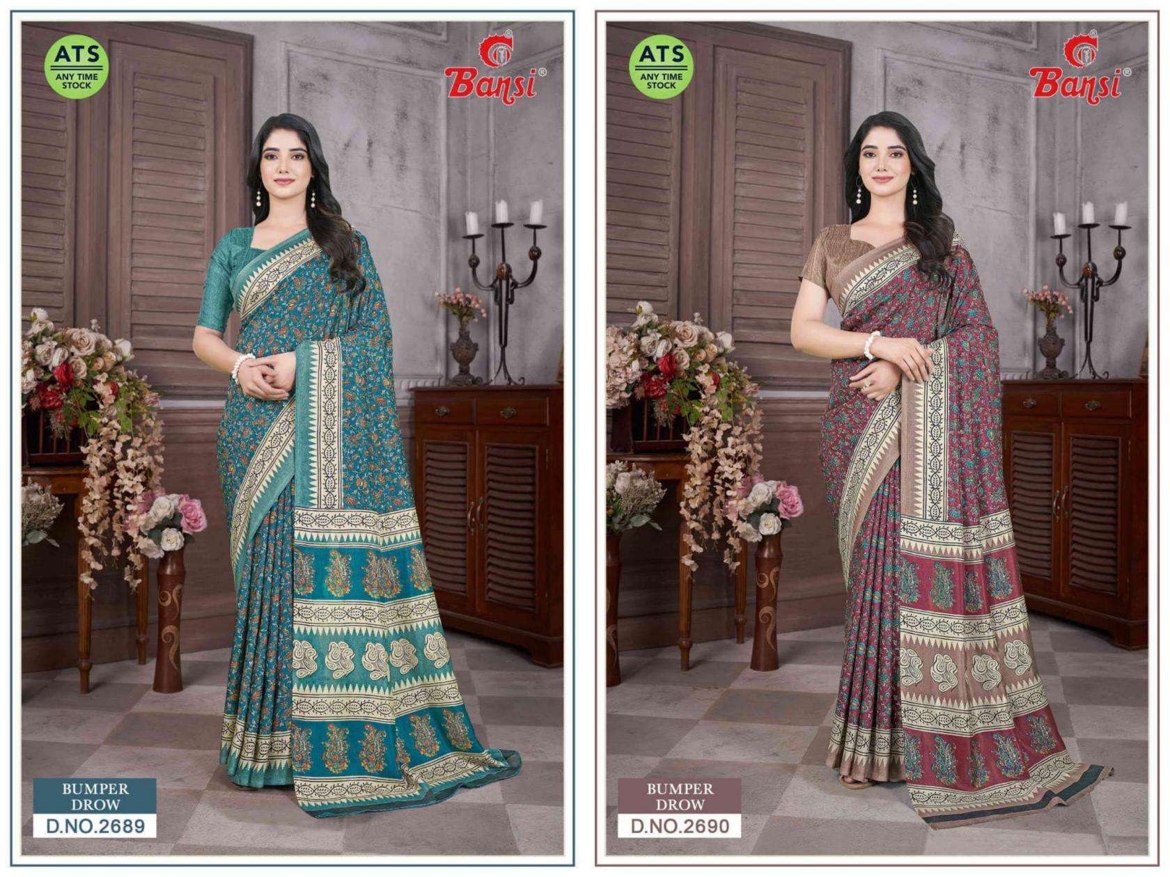 | Name: | Bansi Bumper Drow Series 2675 To 2690 Crackle Amazing Saree In Wholesale Surat |