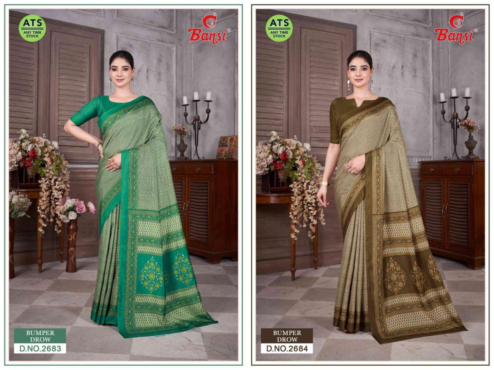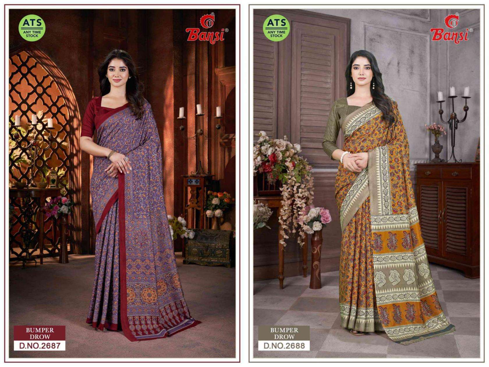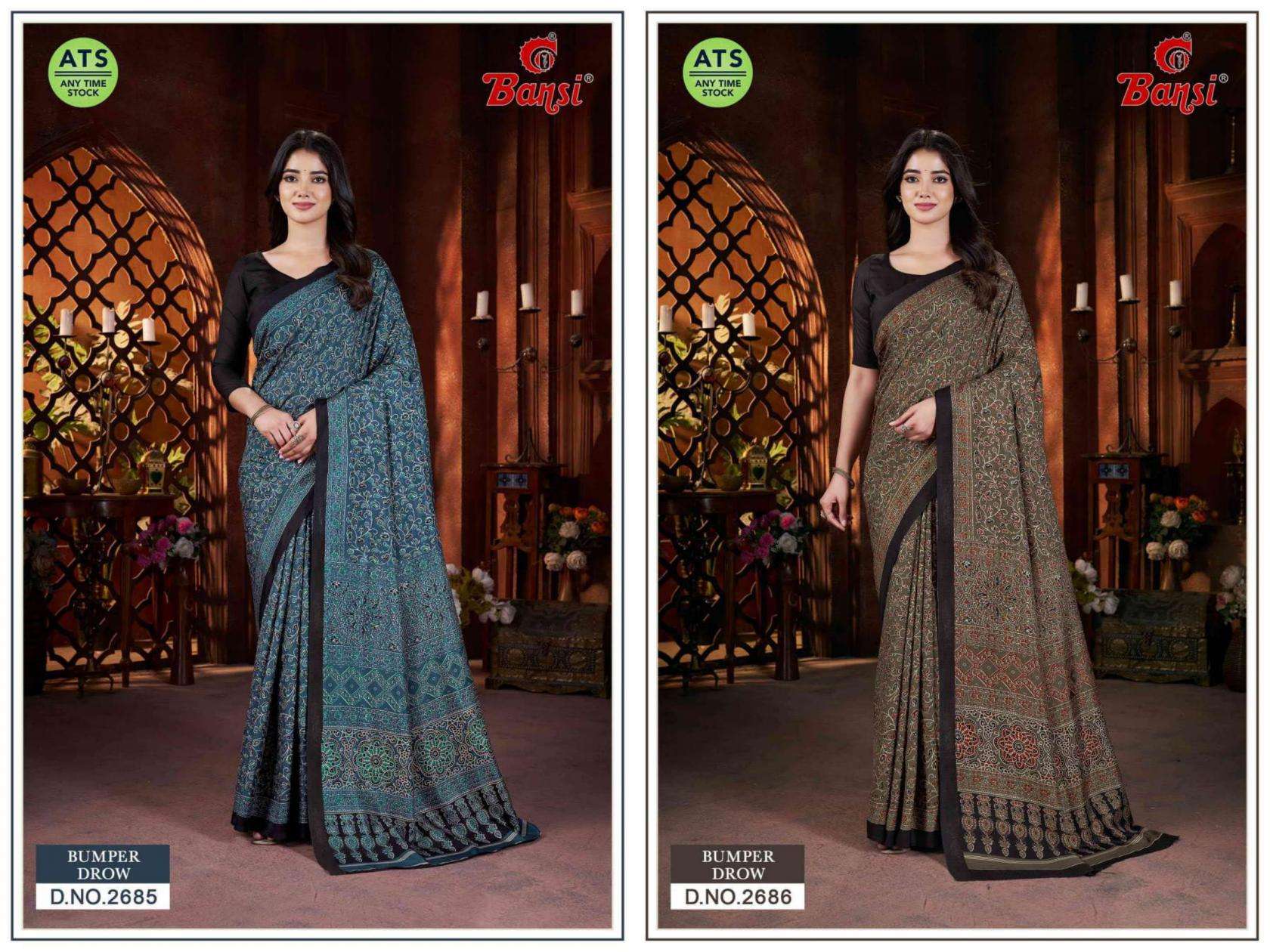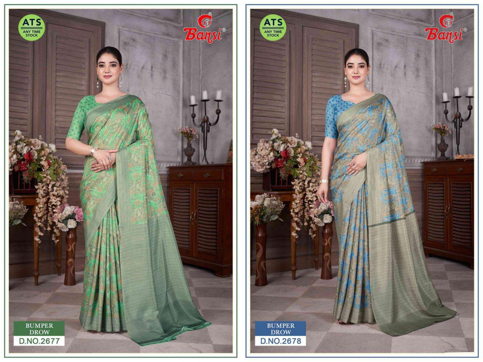 | Name: | Bansi Bumper Drow Series 2675 To 2690 Crackle Amazing Saree In Wholesale Surat |