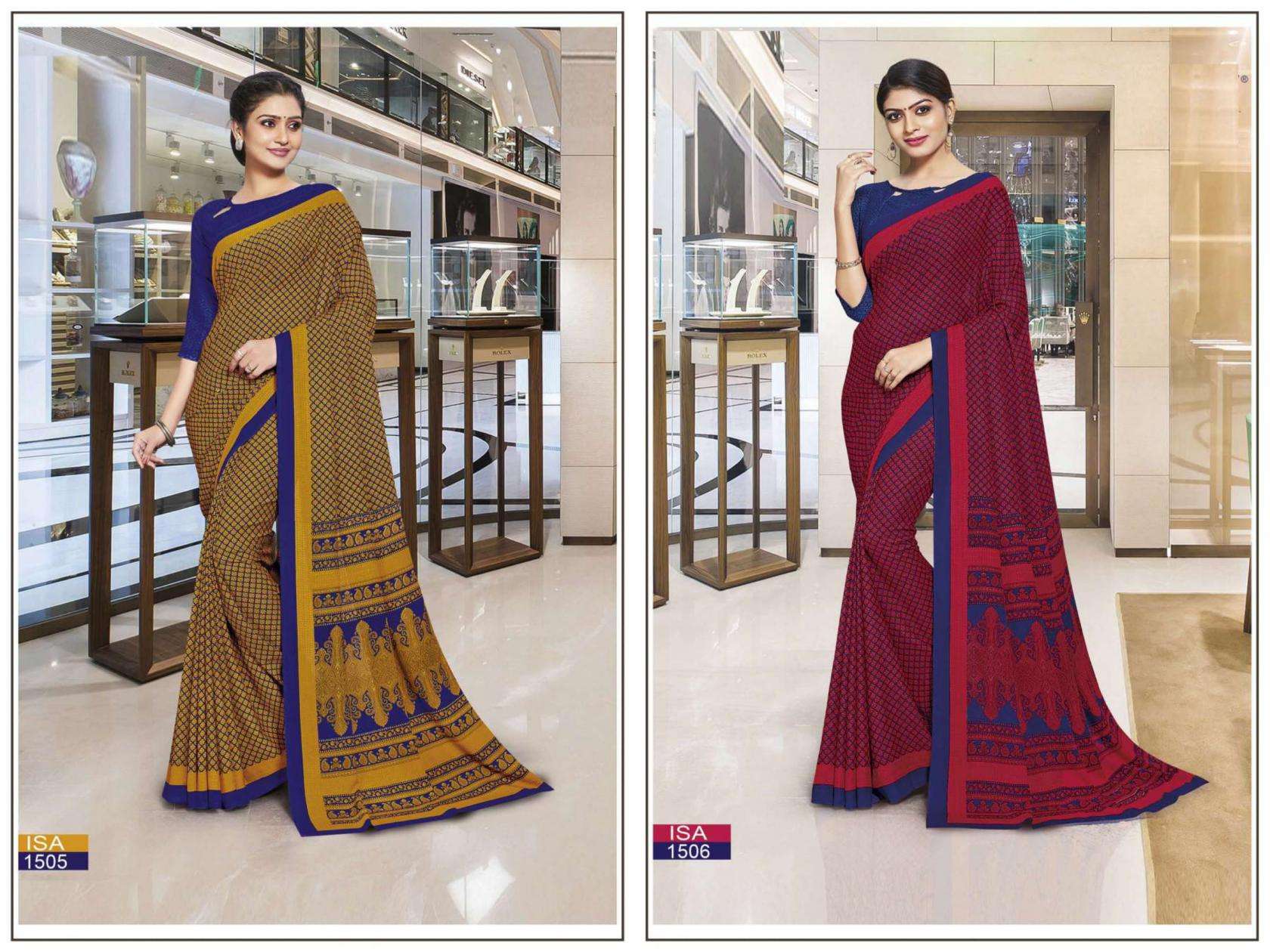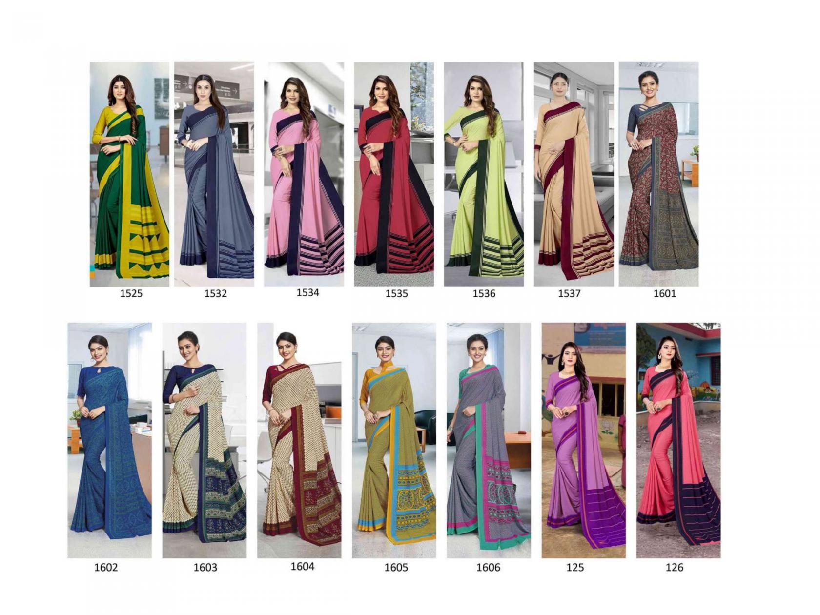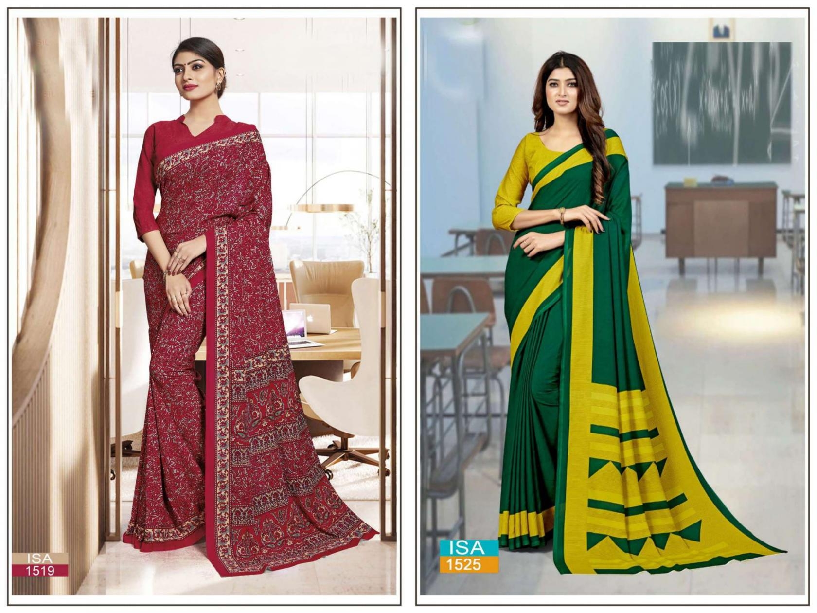 | Name: | Bansi Isa Series 1501 To 126 Hit Design Crape Uniform Sarees In Wholesale Surat |