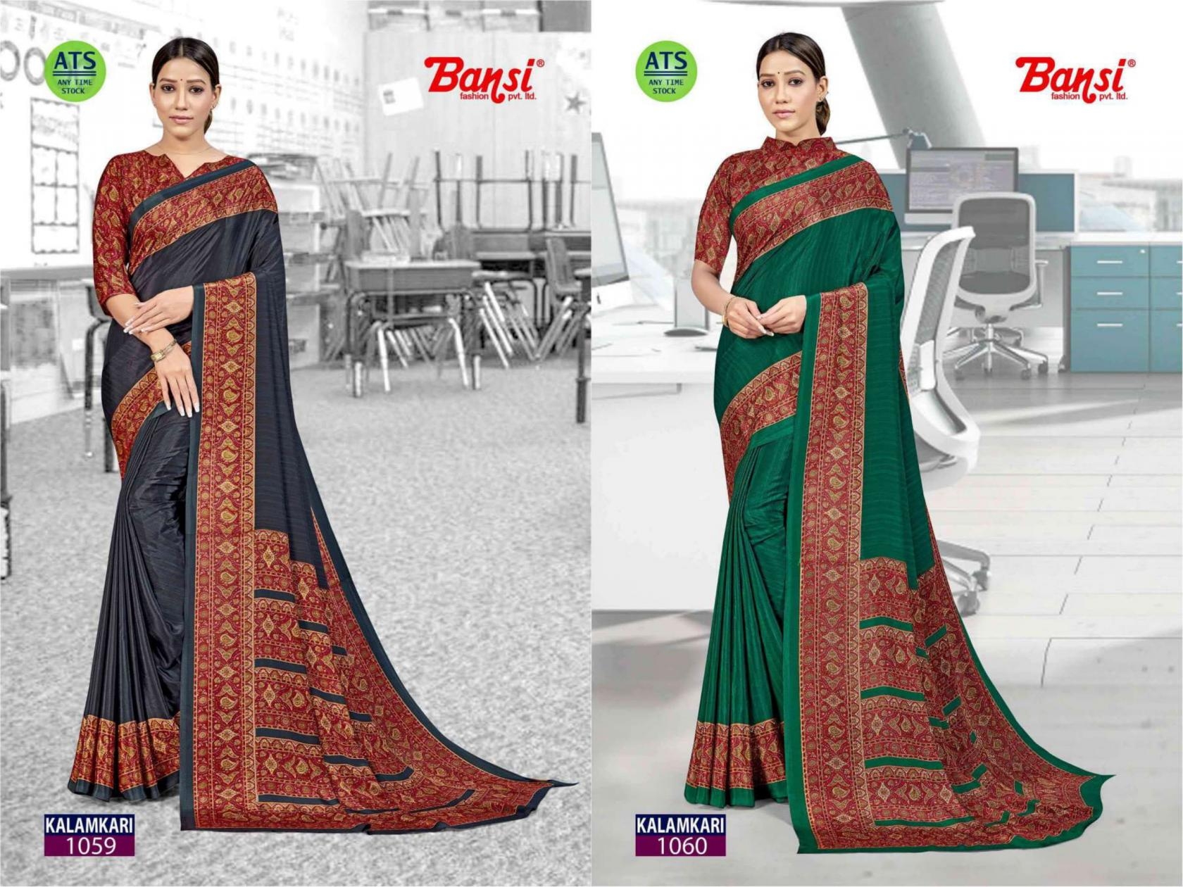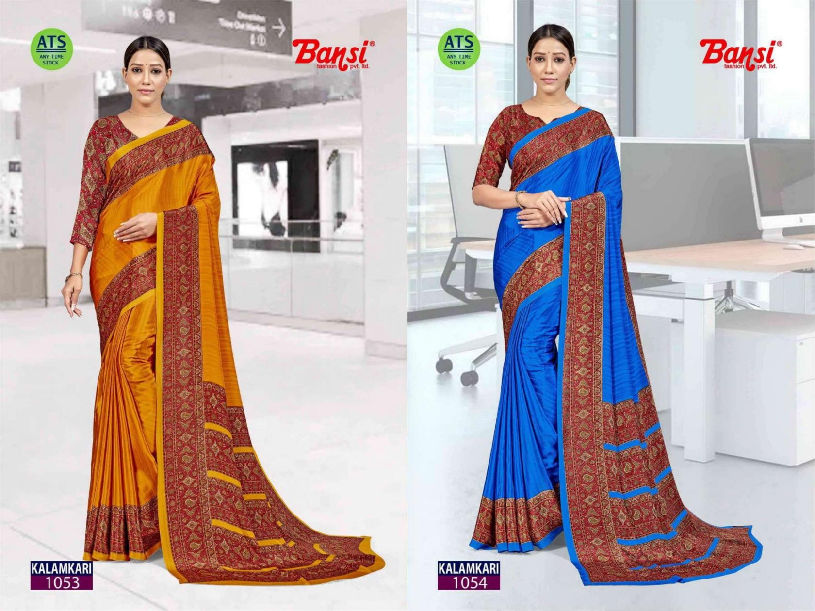 | Name: | Bansi Kalamkari Series 1051 To 1060 Crape Pretty Look Uniform Saree In Wholesale Surat |