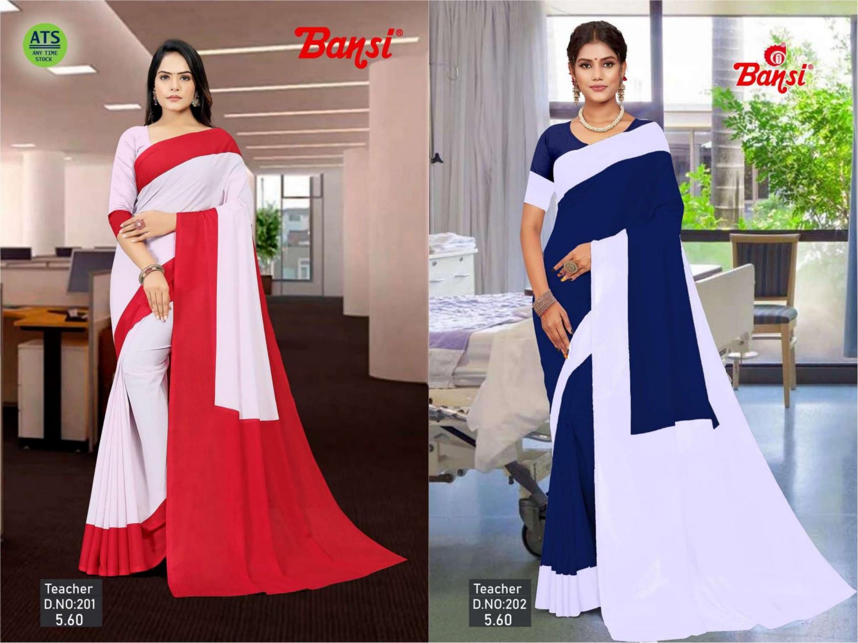 | Name: | Bansi Launch Teacher Series 201 To 205 Reniyal Pretty Uniform Saree In Wholesale Surat |