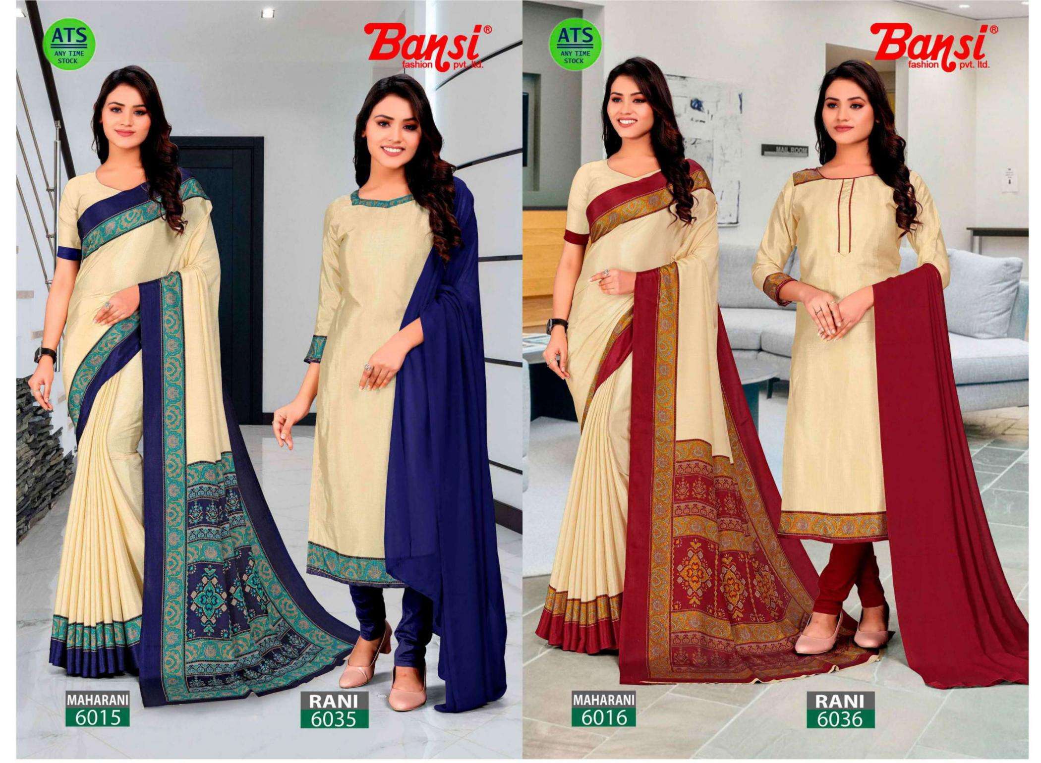 | Name: | Bansi Maharani & Rani Series 6001 To 6036 Turkey Saree With Classic Uniform Suits In Wholesale Surat | |