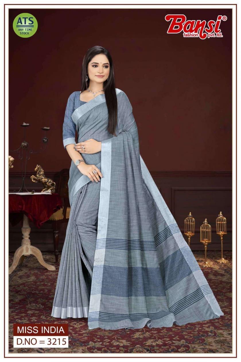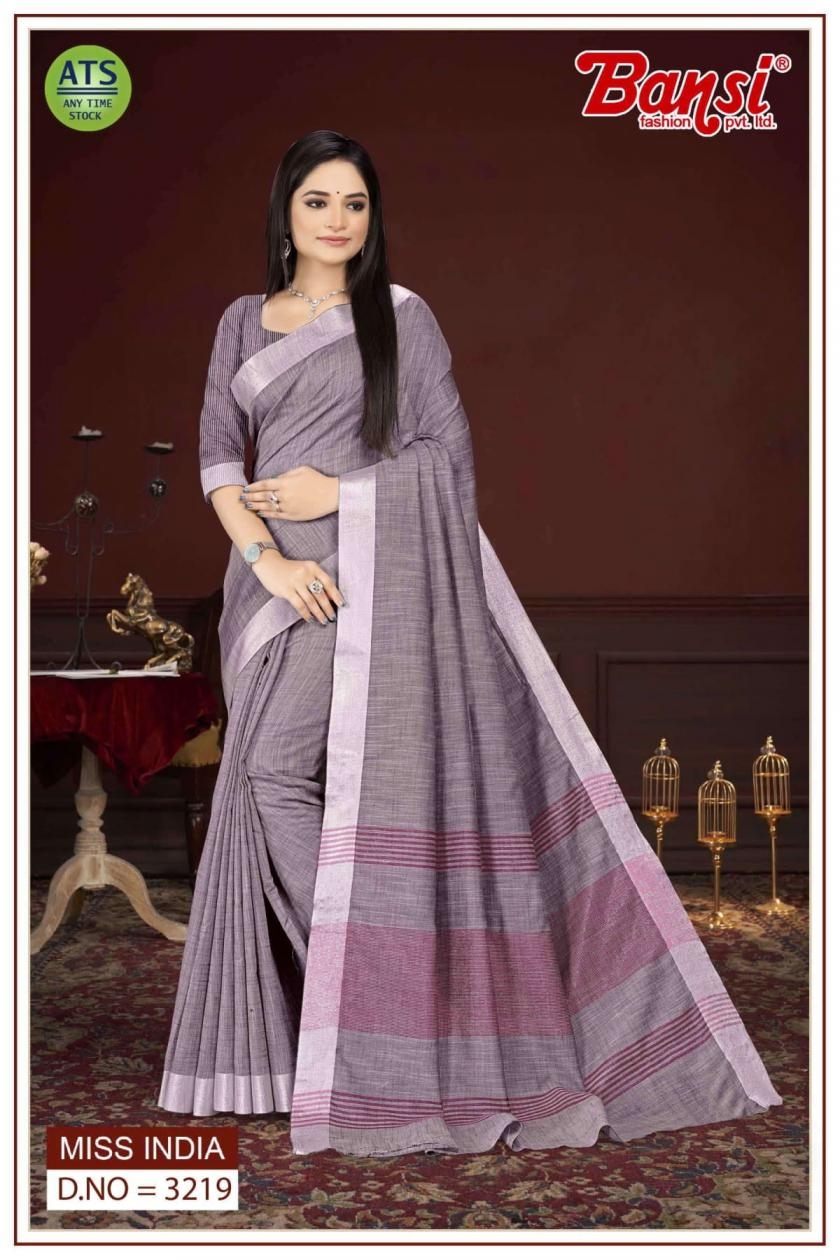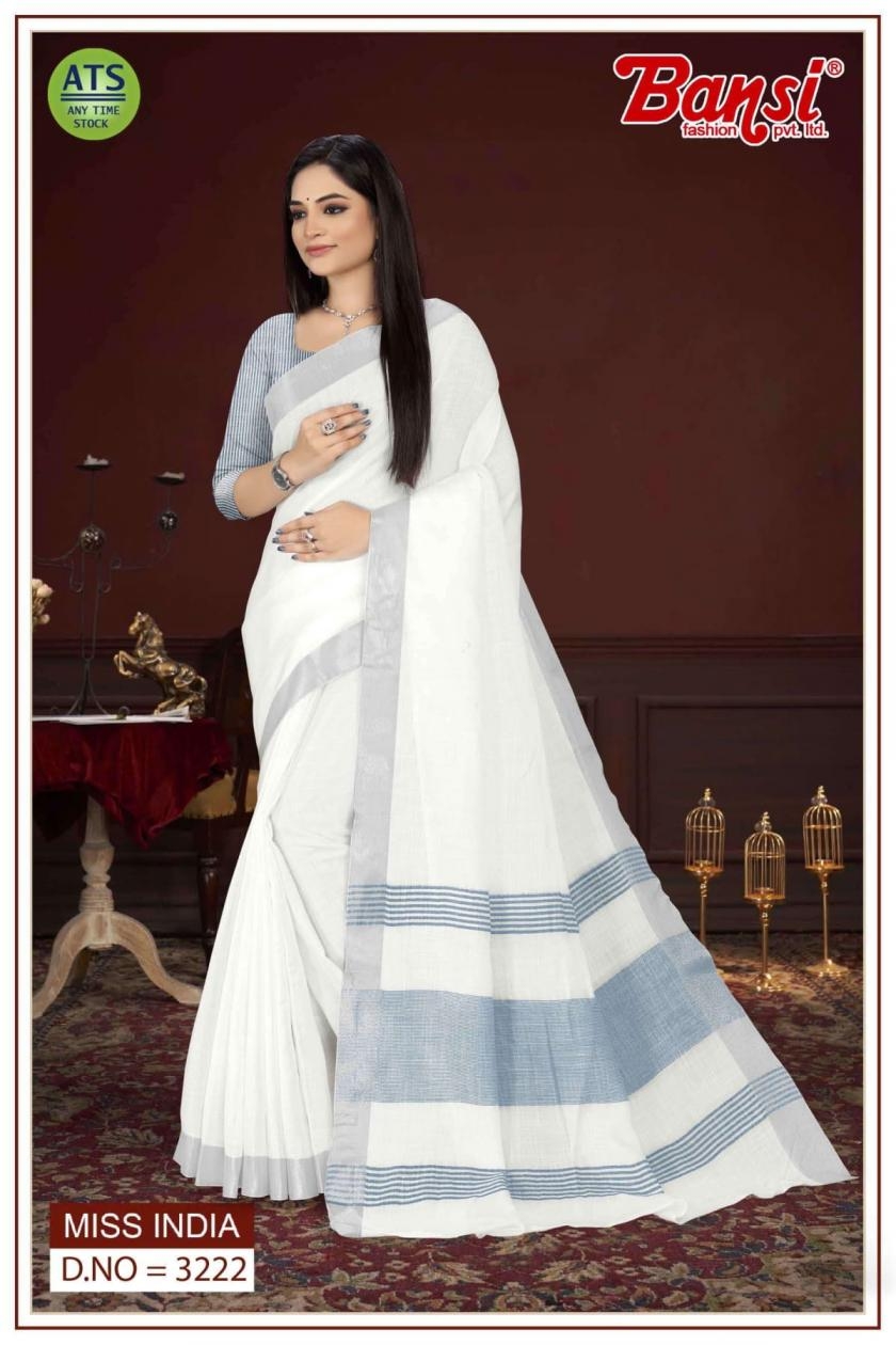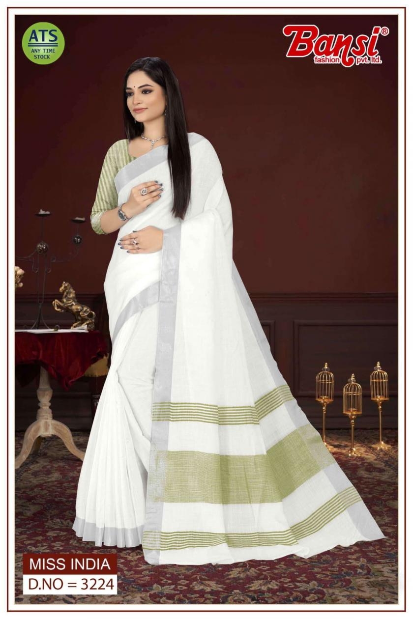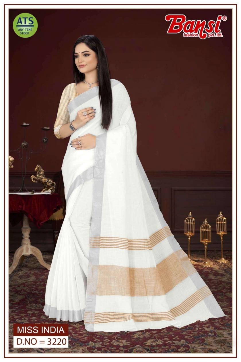 Name: | Bansi Miss India Series 3201 To 3226 Linen Cotton Jari Weaving Trendy Sarees In Wholesale Surat |