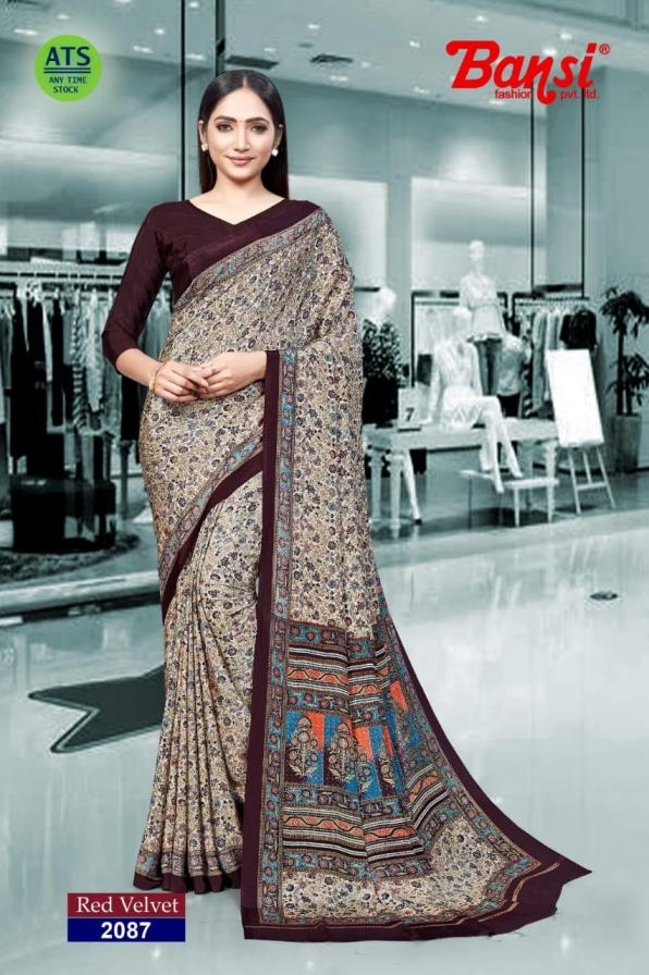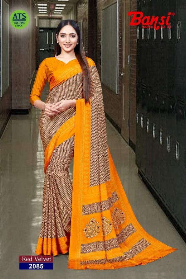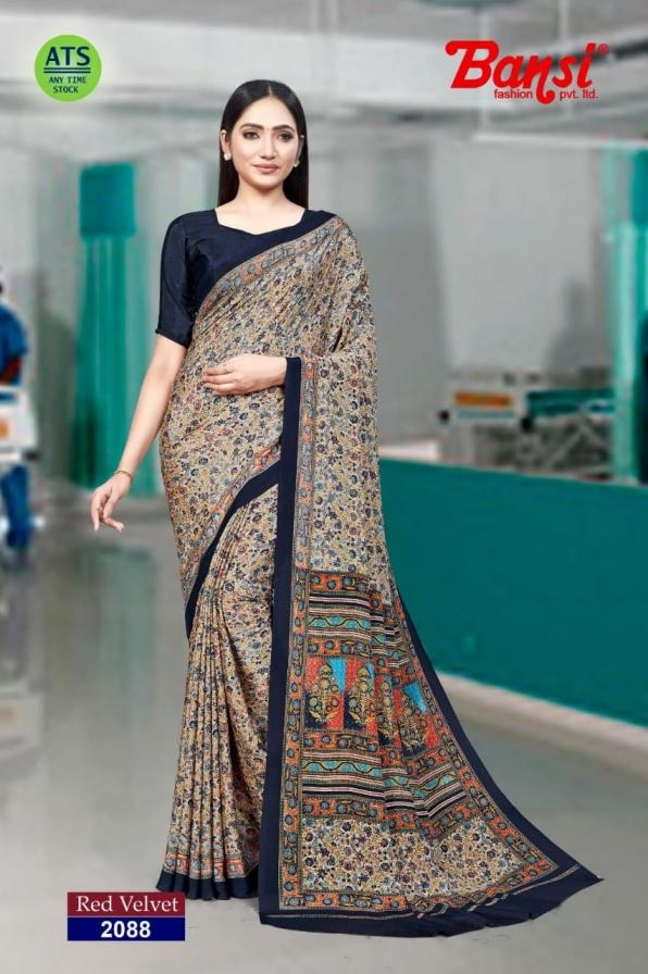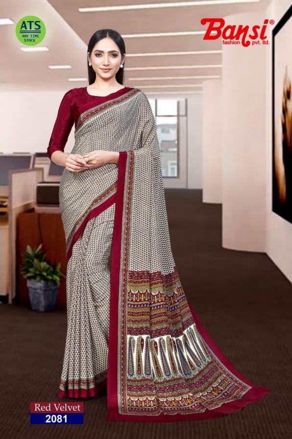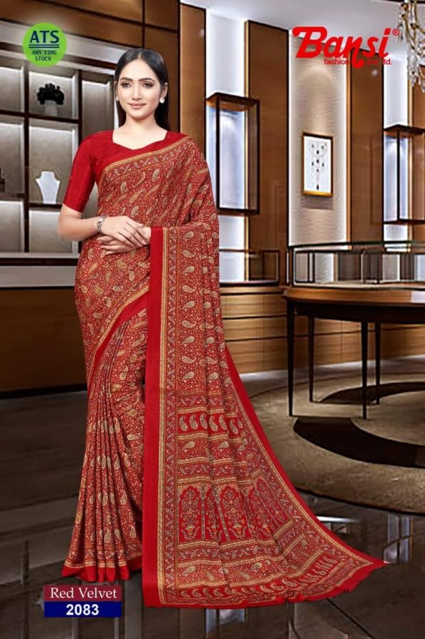| Name: | Bansi Red Velvet Crape Pretty Look Uniform Sarees Wholesale In Surat |