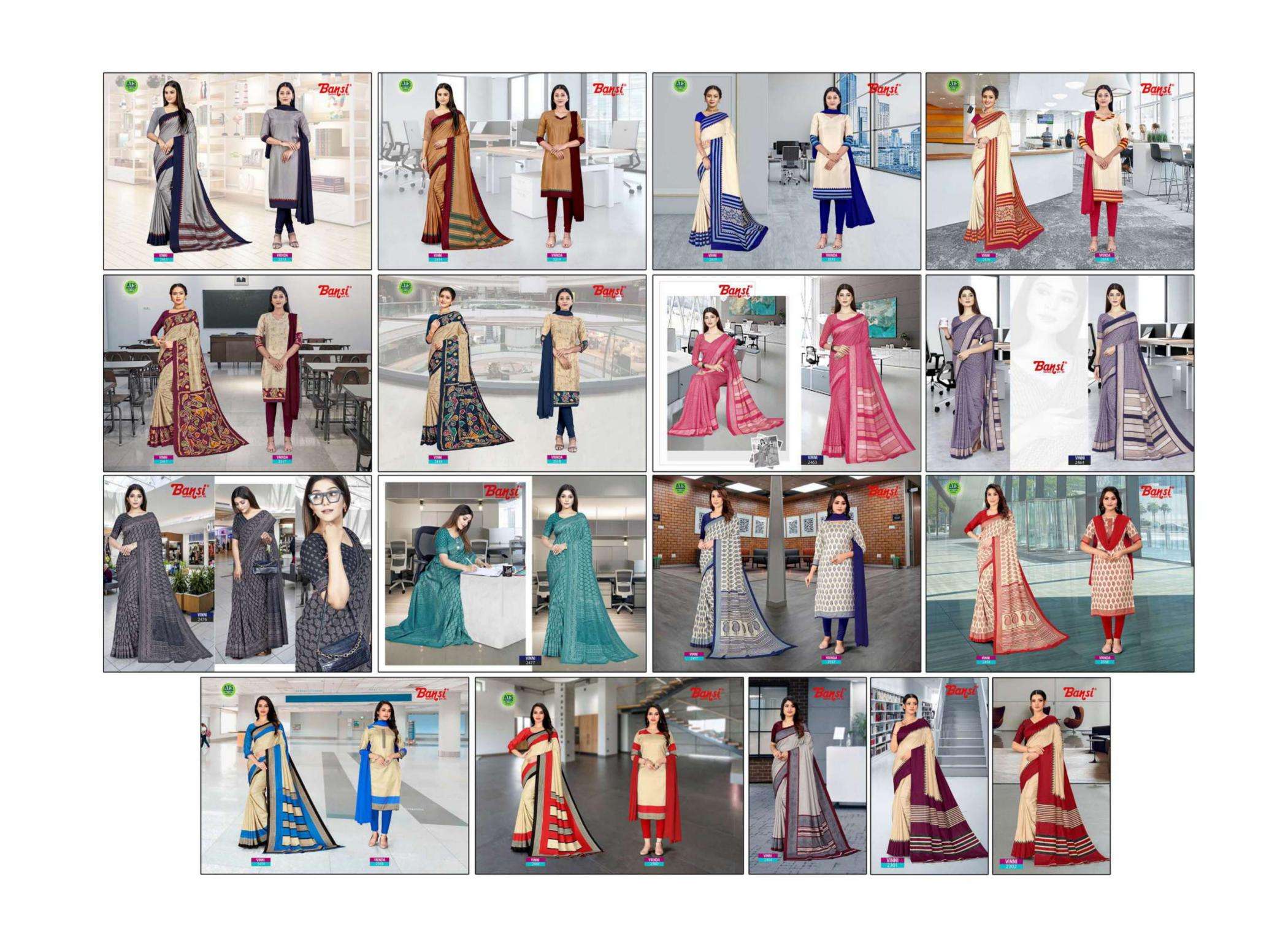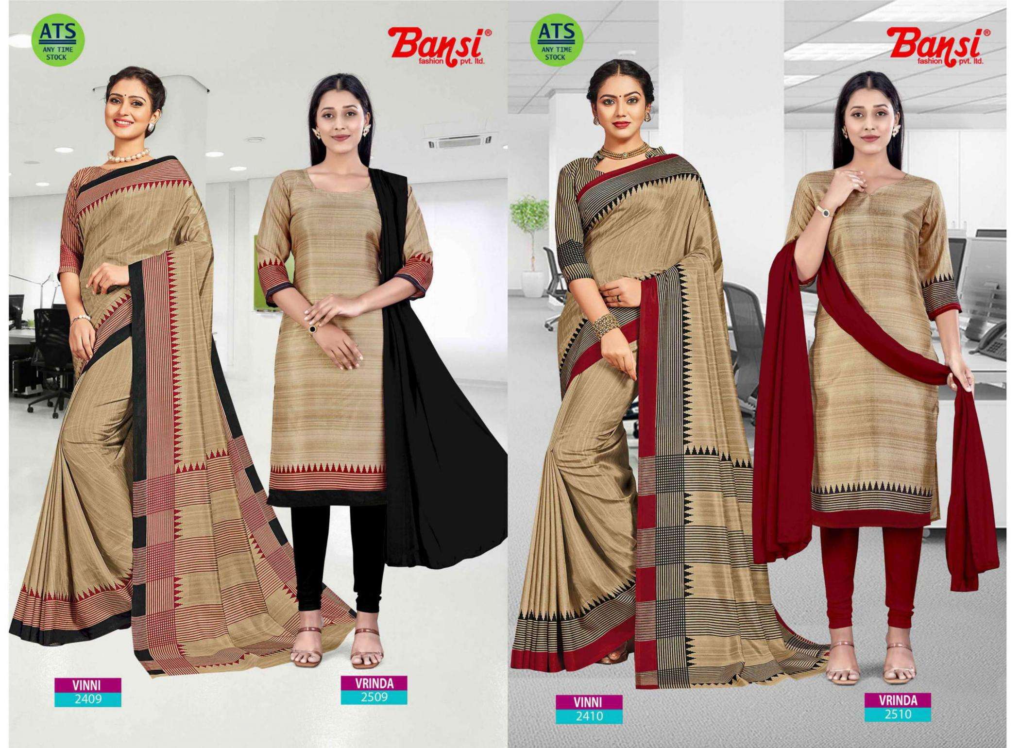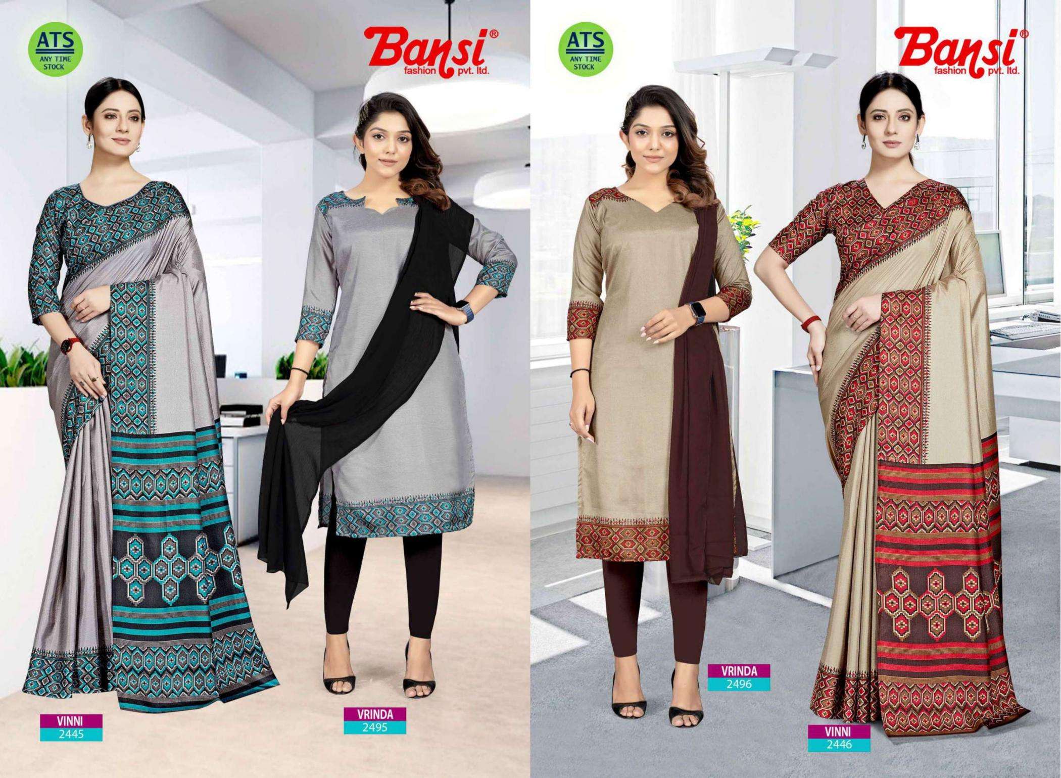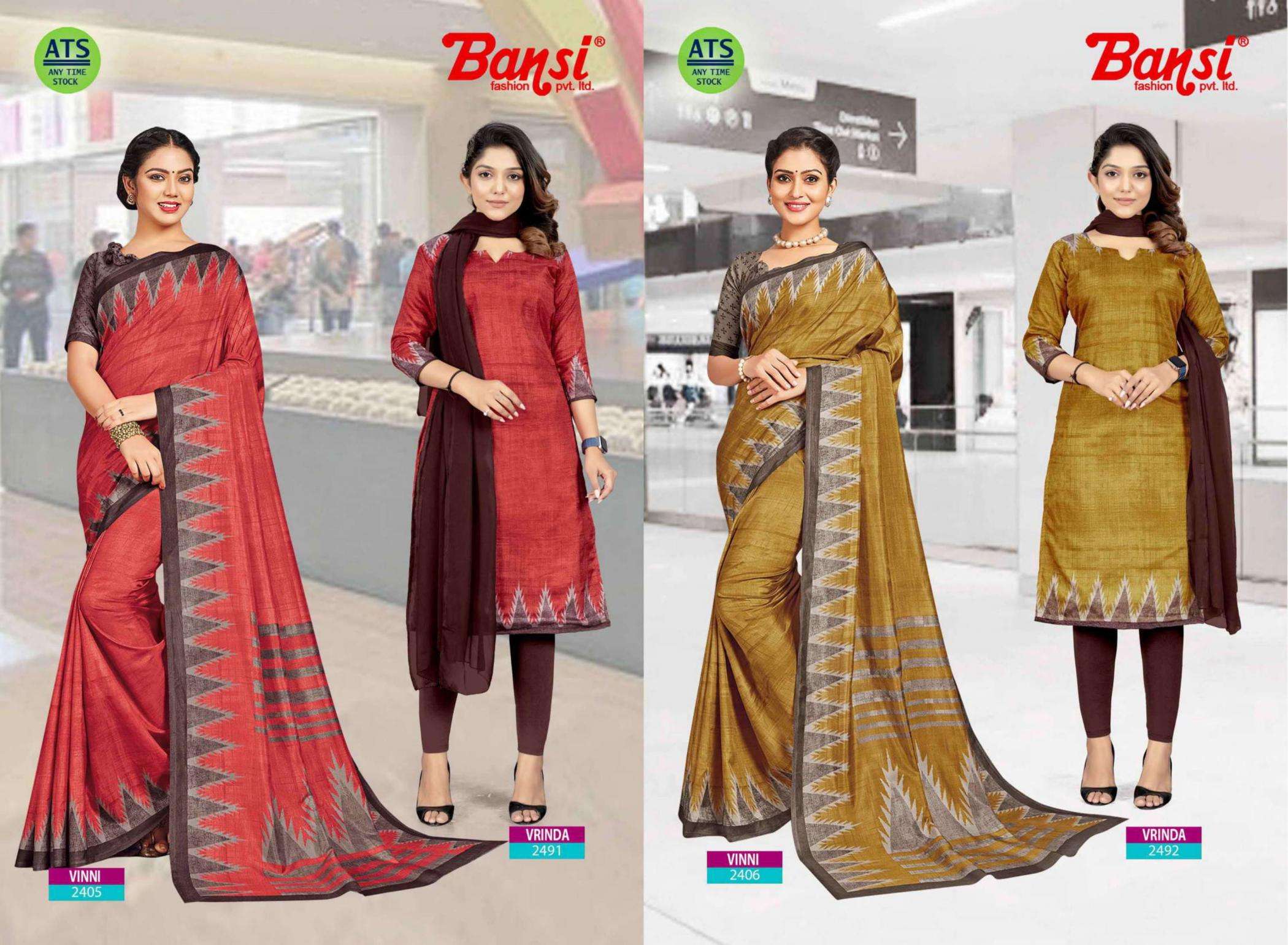 | Name: | Bansi Varinda & Vinni Series 2301 To 2560 Crackle Pretty Look Combo Set Uniform Saree & Suit In Wholesale Surat |