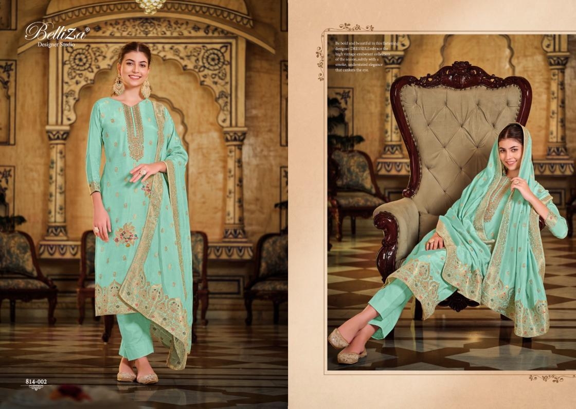 | Name: | Belliza Saanvi Series 814001-814006 Viscose Muslin Jeacquard Wholesale Suit | |
