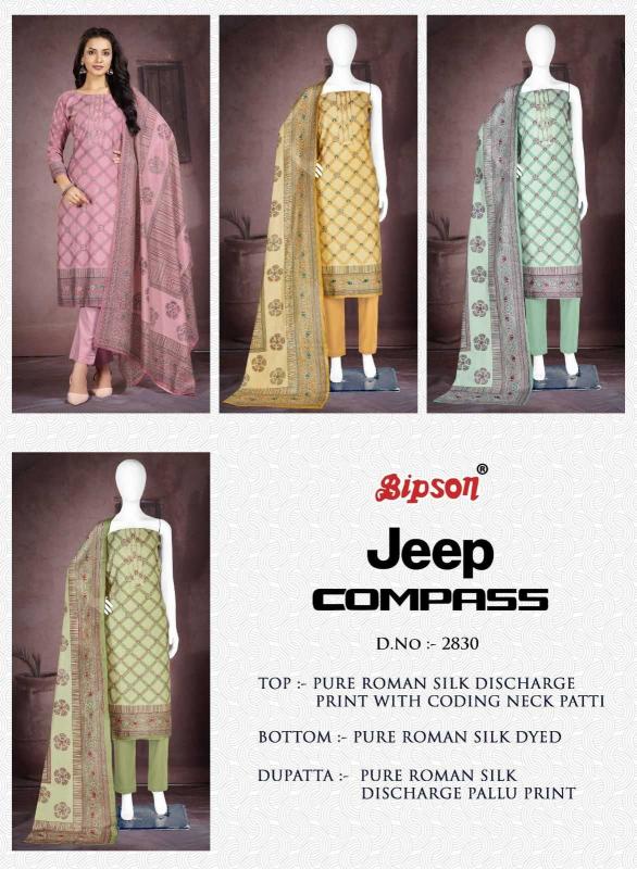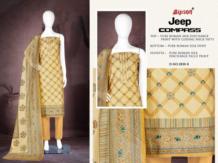 | Name: | Bipson Jeep Compass 2830 Pure Roman Silk Wholesale Salwar Kameez In Surat |